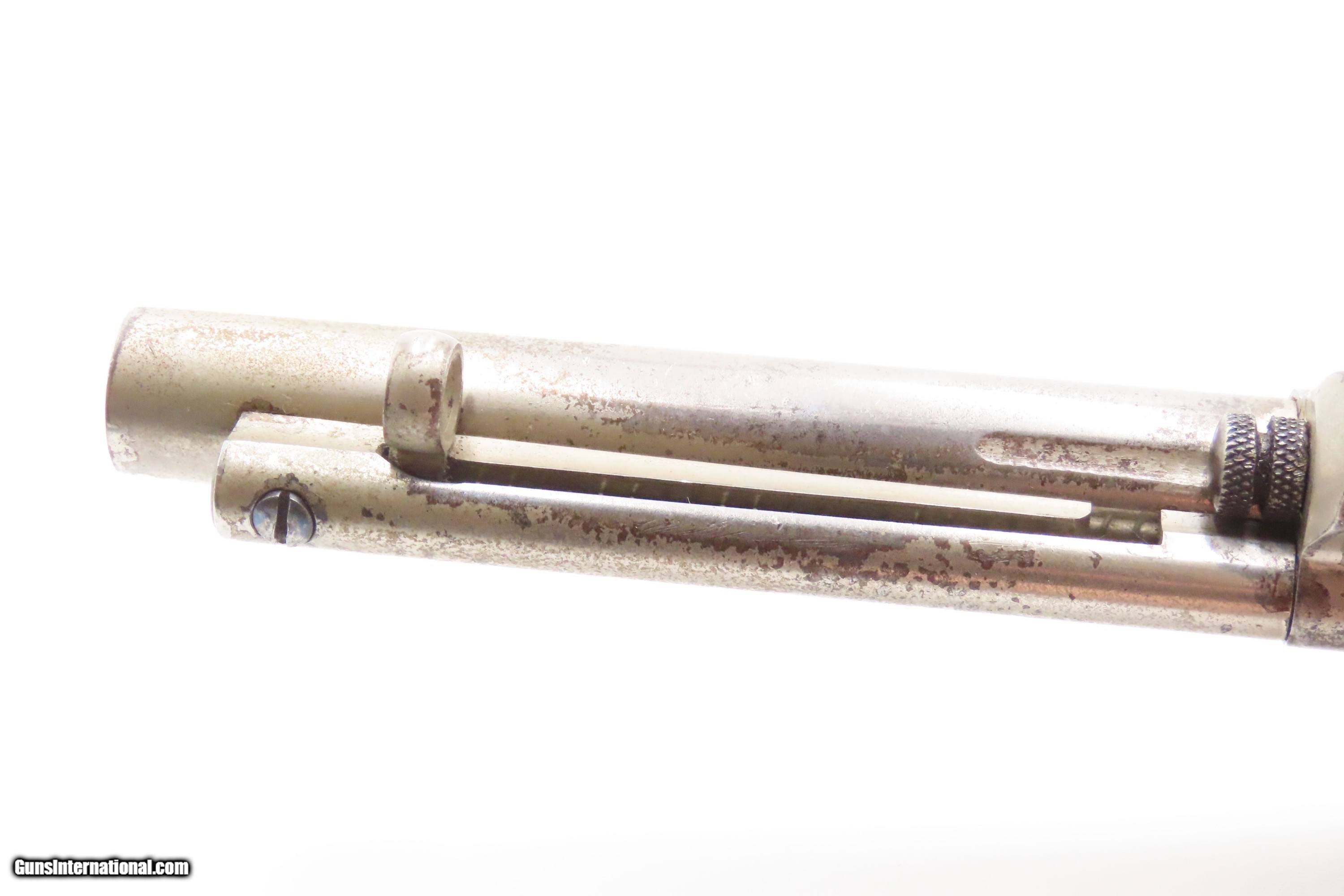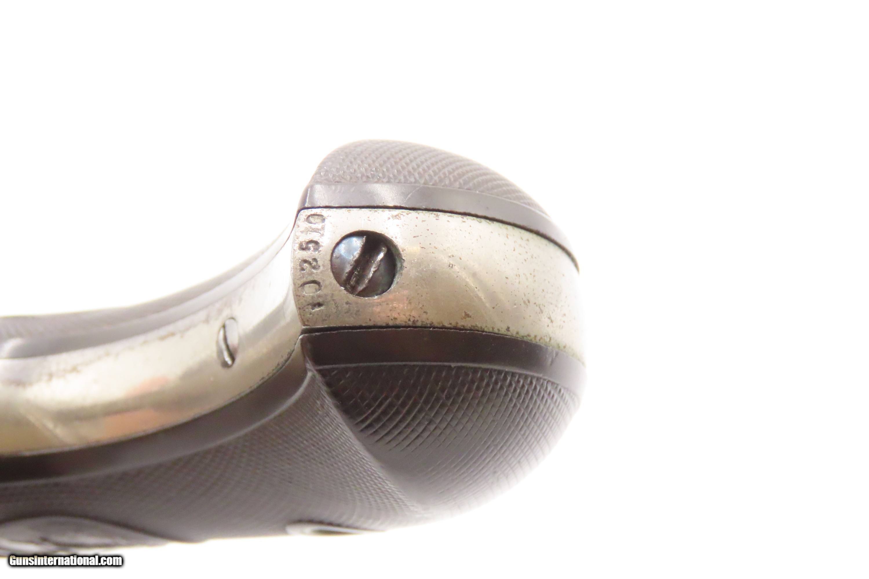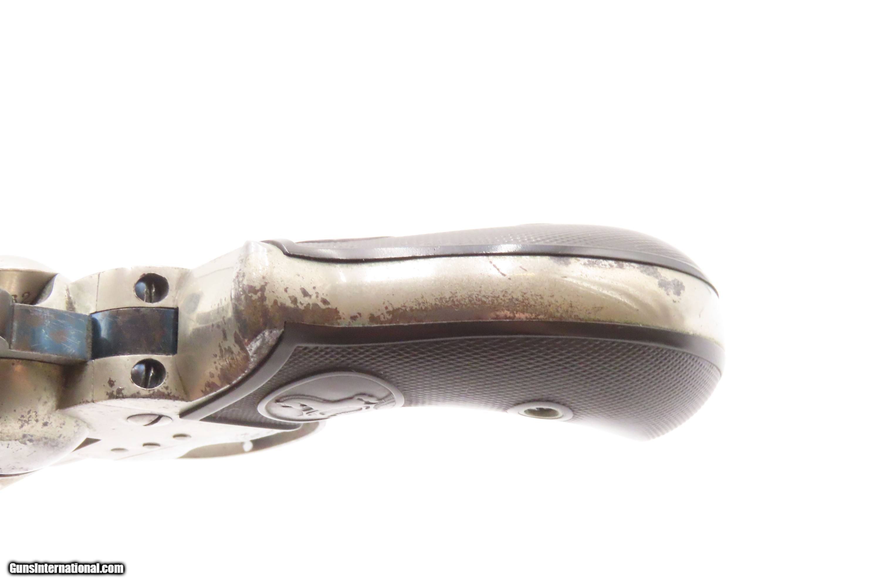 Description: 1896 Antique COLT M1877 “Lightning” DA Revolver DOC HOLLIDAY/BILLY the KID 1896 mfg. Double Action Chambered in .38 Long Colt Here we present an antique Colt Model 1877 Lightning Double Action Revolver, made in 1896 in Hartford, Connecticut. The Model 1877 was Colt’s first venture into double action revolvers. It was quite successful, selling 166,849 from 1877 through 1909. Nonetheless, there was some hesitation to move away from the single action mechanism, which had so proven itself. Famous adopters of the Lightning were William “Billy the Kid” Bonney and John Wesley Hardin, along with “Doc” Holliday. Doc’s weapon of choice early in his western career was an 1851 Colt Navy revolver. Later, Doc carried a nickel-plated .41 caliber Colt Thunderer or the .38 caliber Colt Lightning. The Model 1877 was designed in 1876 by William Mason and was offered in three different calibers with production beginning in January 1877, which led to the three unofficial names. The first production model was the “Lightning”, in .38 Long Colt caliber. Later that year, Colt came out with the .41 Long Colt caliber called the “Thunderer”. The .32 Long Colt caliber, called the “Rainmaker”, didn’t go into production until sometime in 1887. Benjamin Kittredge, the largest Colt Distributor in Cincinnati, Ohio, coined the nicknames for these guns as a marketing tool. He was also responsible for calling the Model 1873 Single Action Army the “Peacemaker”. None of the nicknames were ever used by the factory in any reference materials. The 1877 "Thunderer” in .41 caliber was the preferred weapon of Billy the Kid and was his weapon of choice when he was killed by Pat Garret in 1881. The overall condition is very good. Original nickel finish with blue accents. The action is strong in both double and single action with solid cylinder lock up. Good bore with strong rifling. Solid grips. Numbers match. Own the original! This is a legitimate antique and not a reproduction. Barrel is 4-1/2 inches. Caliber: .38 Long Colt Overall condition as seen in photos. Very Fast. Very Safe. FREE SHIPPING WORLDWIDE. Delivered directly to your door by express mail! Guaranteed AUTHENTIC & Includes CERTIFICATE OF AUTHENTICITY. ancestryguns $2400 #247246 SOLD Antique: Yes |
