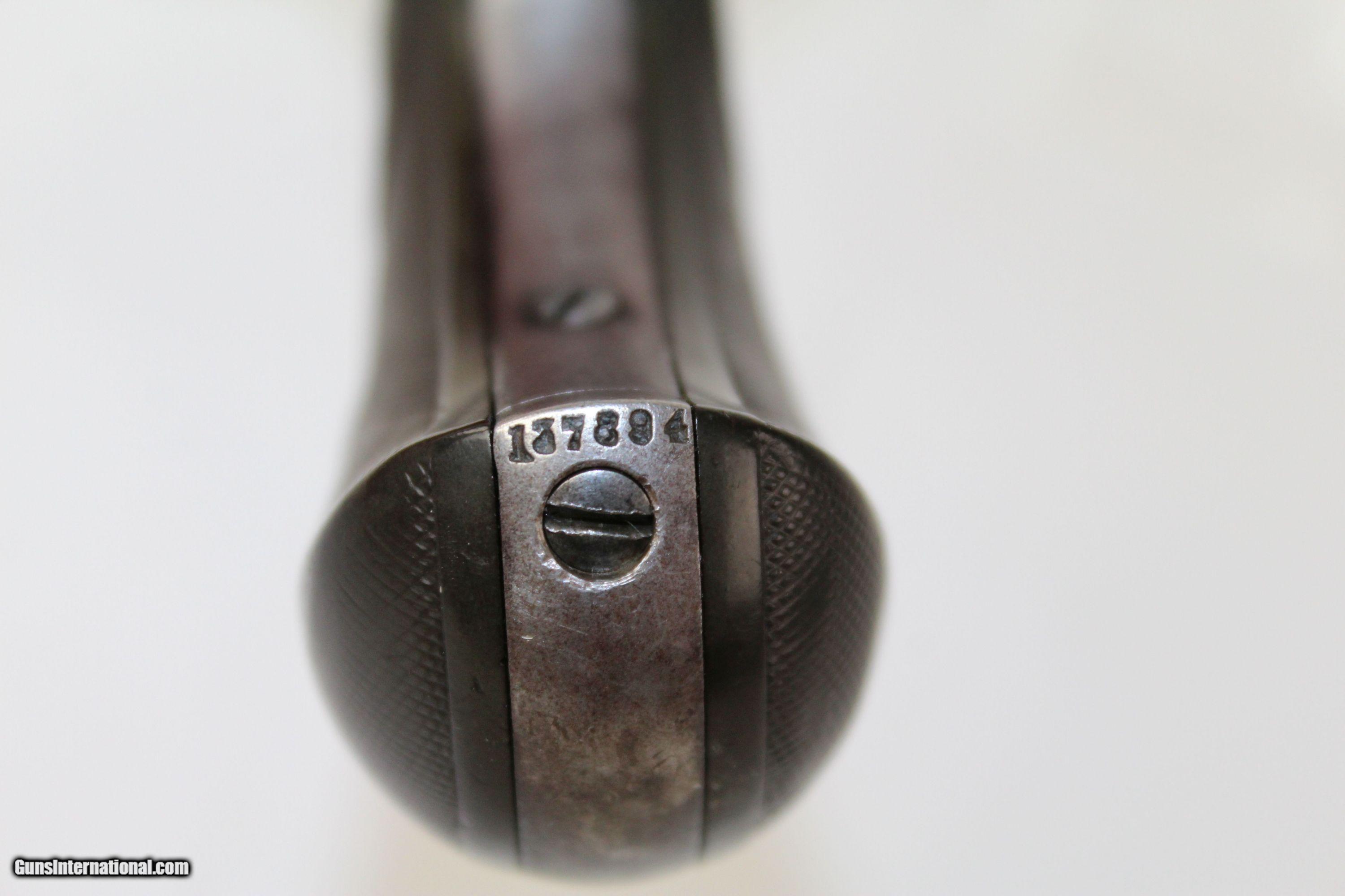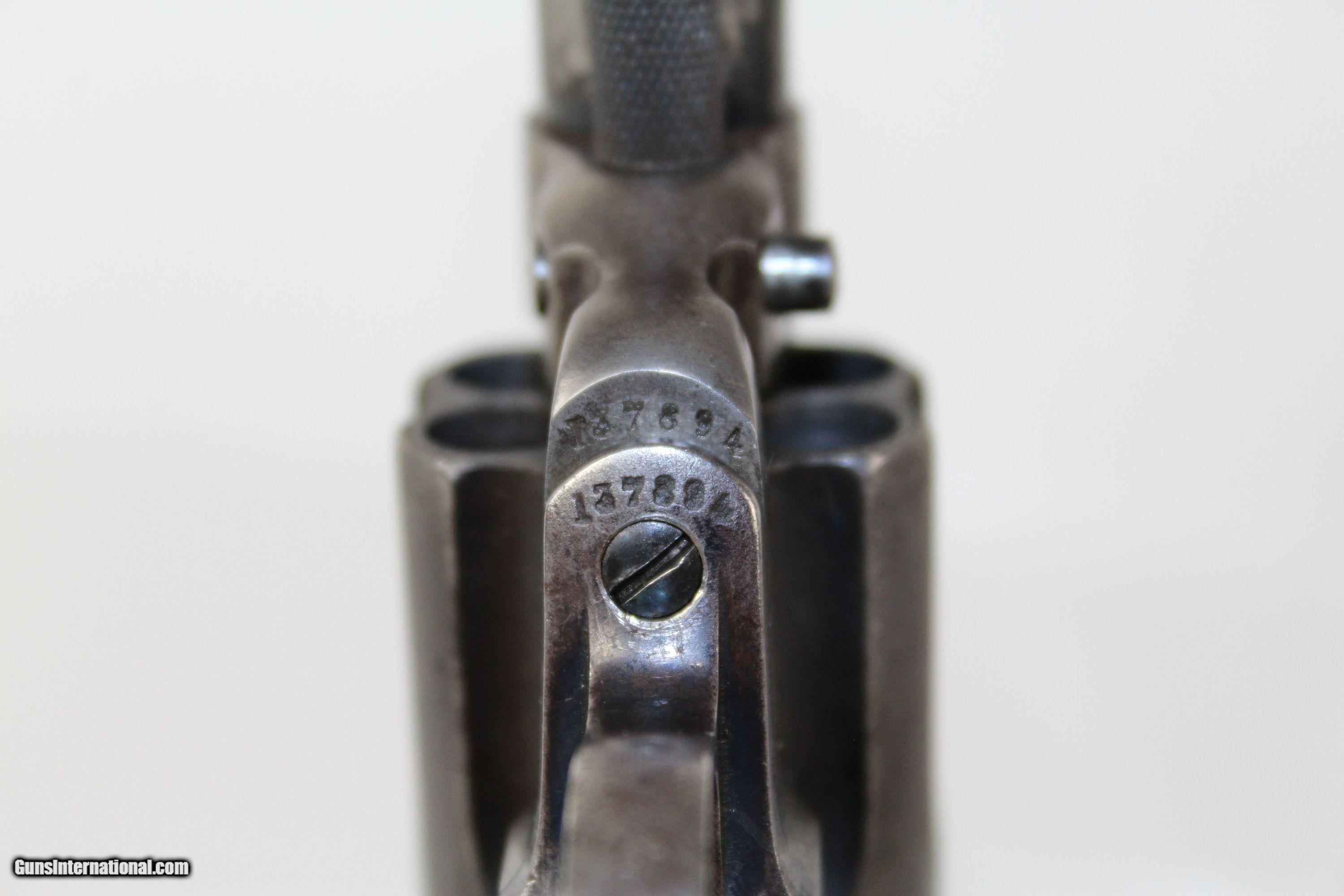 Description: 1902 COLT 1877 LIGHTNING Double Action Revolver First Colt Double Action Revolver in .38 Colt Here we present a Colt 1877 Lightning Double Action Revolver, made in 1902 in Hartford, Connecticut. The Model 1877 was Colt’s first venture into double action revolvers. It was quite successful, selling 166,849 from 1877 through 1909, primarily in .38 and .41 calibers. Nonetheless, there was some hesitation to move away from the single action mechanism, which had so proven itself. Famous adopters of the Colt double action revolvers were William “Billy the Kid” Bonney and John Wesley Hardin, two legendary names of the American West. The markings on this revolver include “COLT’S PT F.A. MFG. CO./HARTFORD, CT U.S.A.” on the top of the barrel. The left side of the frame has “PAT. SEPT 19,1871/PAT. SEPT. 5,1874/PAT. JAN. 19,1875”. The left side of the barrel has “COLT D. A. 38”. The hard rubber grips feature the rampant colt. The overall condition is very good. The original blue finish is about 15%. Markings are clear. Serial numbers match. The hard rubber grips are in great shape. The bore is clean and sharp. The action is excellent. This firearm is classified as a Curio & Relic. Barrel is 3-1/2 inches. Caliber: .38 Colt Overall condition as seen in photos. Very Fast. Very Safe. FREE SHIPPING. Will need to be sent to your local FFL or C&R licensee. This firearm is classified as a Curio & Relic. Guaranteed AUTHENTIC & Includes CERTIFICATE OF AUTHENTICITY. ancestryguns $1350 #6125 SOLD Curio/Relic: Yes |