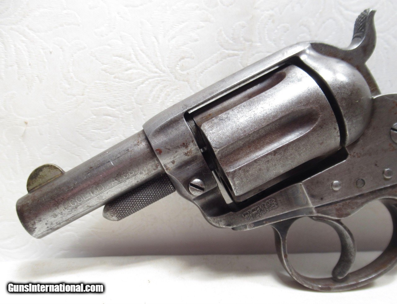 Description: Colt 1877 “Lightning” Model Revolver; Serial No. 33467; Made 1881; .38 Caliber; Scarce 2 ½” Barrel; 100% Legible Etch Panel; Gun Retains a Good Amount of Original Factory Metal Finish; Nice Original Colt Hard Rubber Grips; Perfect Screws; Full Front Sight; Perfect Action; Very Strong Bore with even chattering throughout – No Pitting; Nice Totally Original 143 Year-Old Colt Model 1877 Revolver; See All Photos for Condition; No Texts; Call (254)541-5765 or Email Only; PERSONAL PROPERTY of Harold Wieser; NOTICE: We Do Not Do Any Consignments - All Items Listed are Owned by Us - NO SALES to New Jersey or New York City - Antiques Only to Massachusetts and California; Price: $1,675 + $45 S&H Via USPS PRIORITY MAIL; Payment Address: Harold Wieser - 1466 U.S. Hwy 77 - Rosebud, TX 76570; SEND PAYMENTS VIA USPS PRIORITY MAIL; BEWARE of SCAMS!!! – DO NOT SEND MONEY or CORRESPONDENTS ELECTRONICALLY UNLESS YOU HAVE SPOKEN to HAROLD WIESER FIRST! 254-541-5765 SOLD Antique: Yes Manufacturer: Colt Model: 1877 Lightning Serial Number: 33467 |