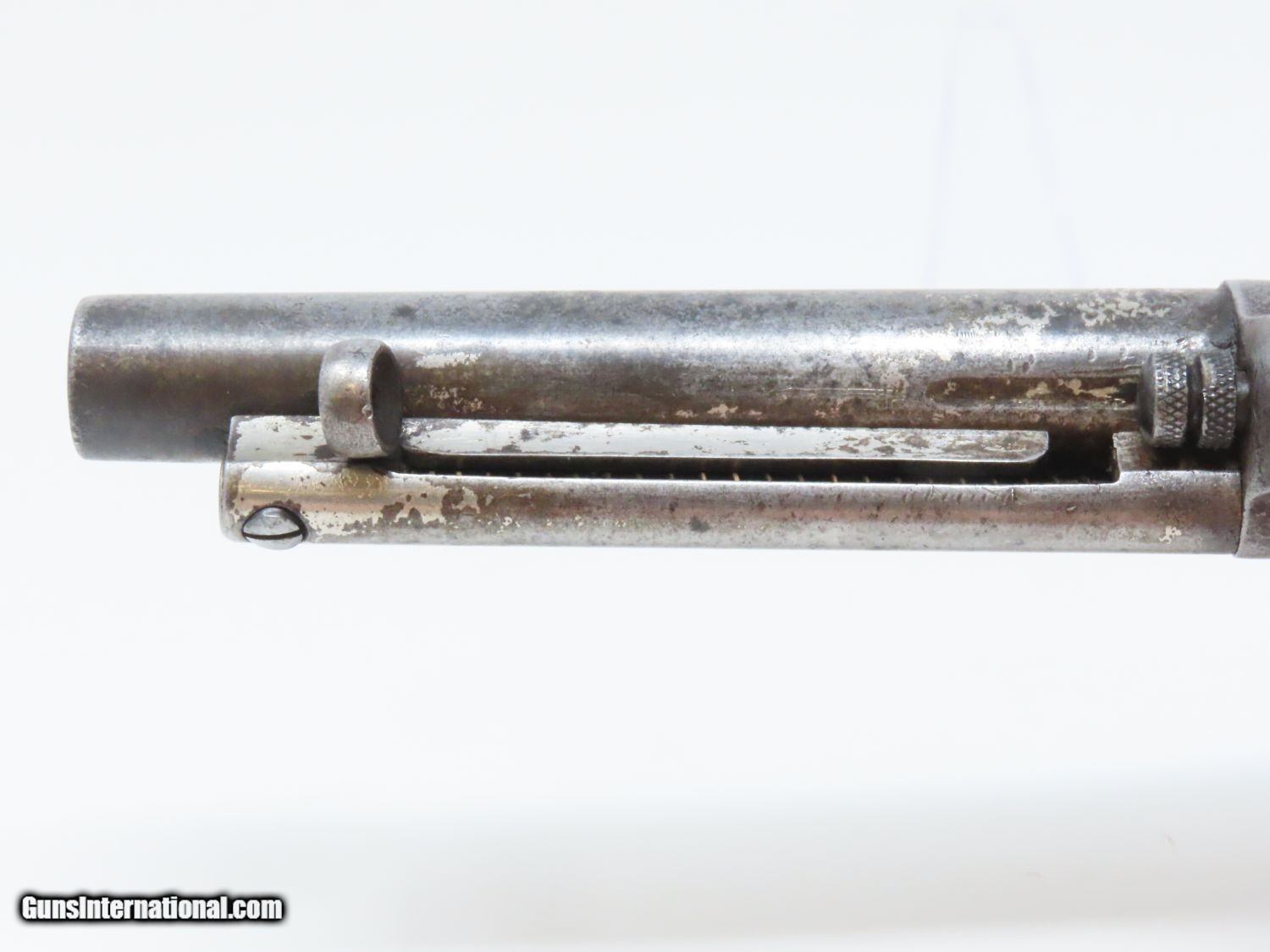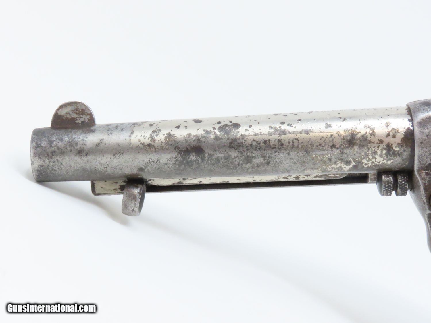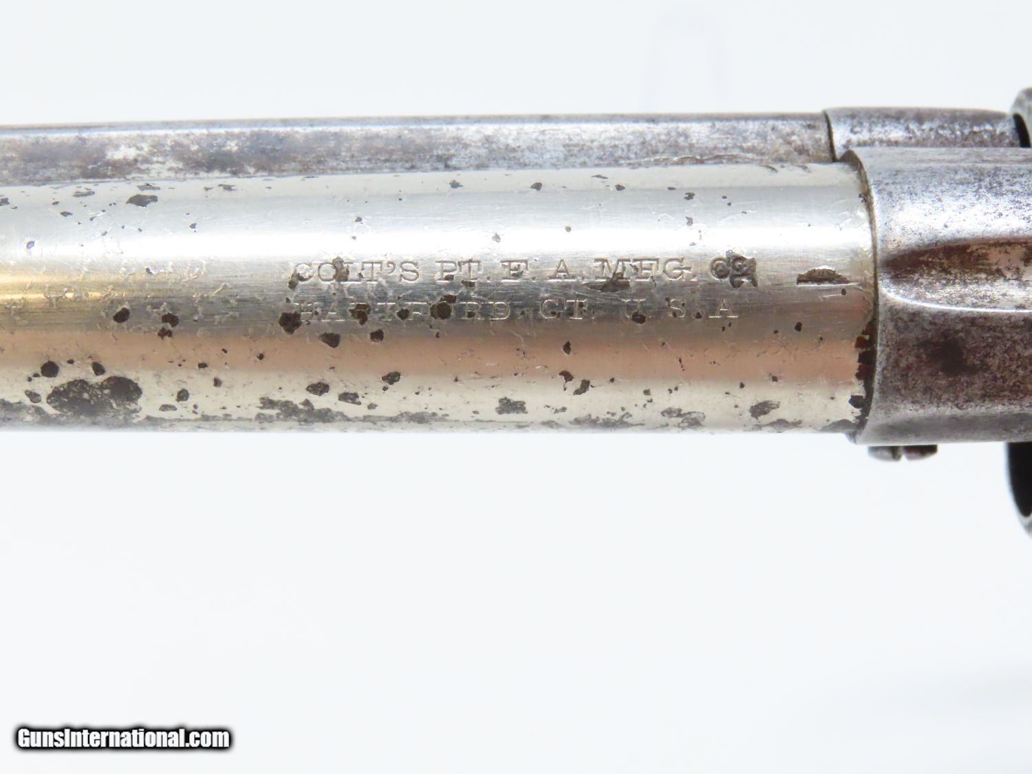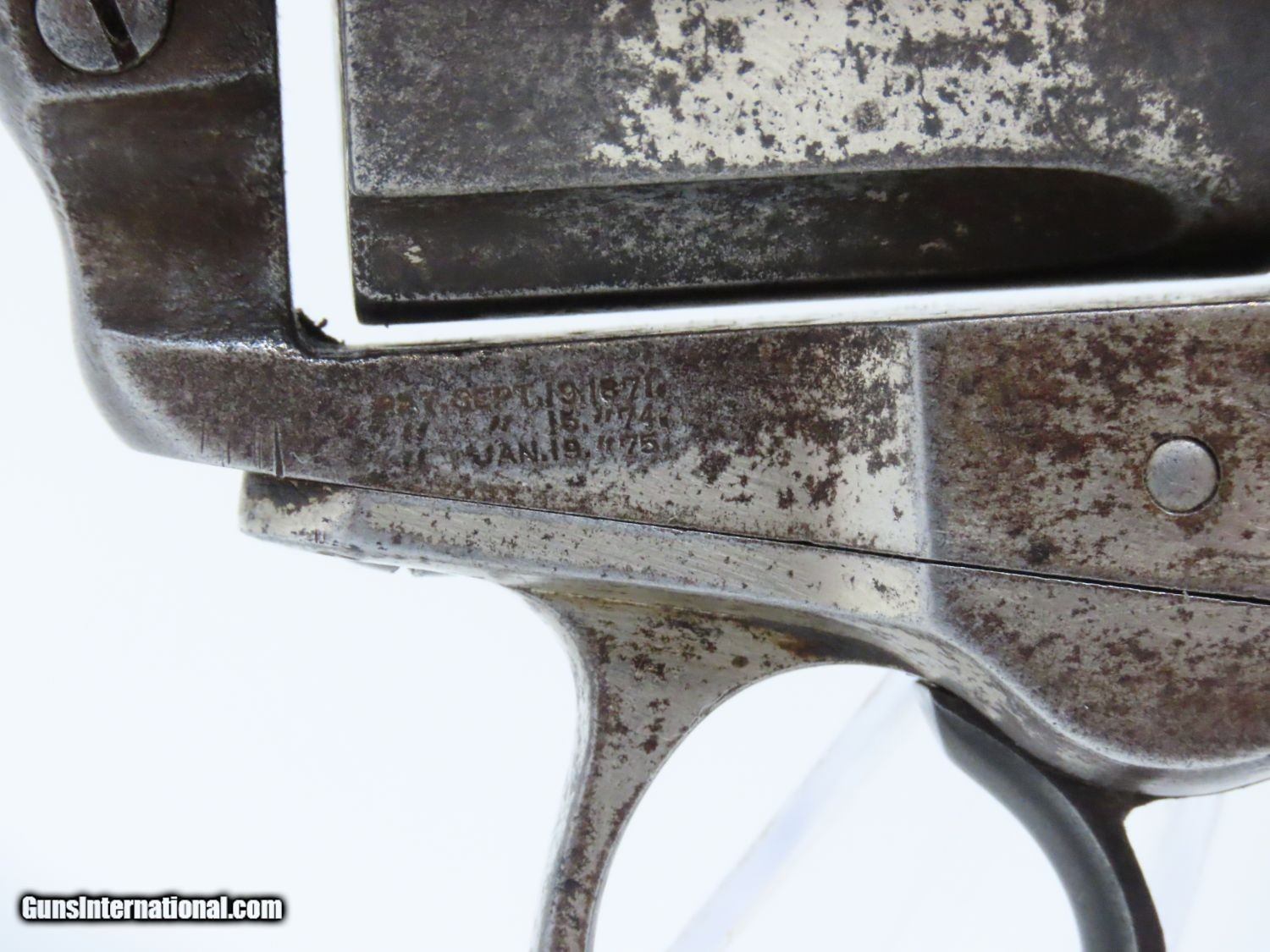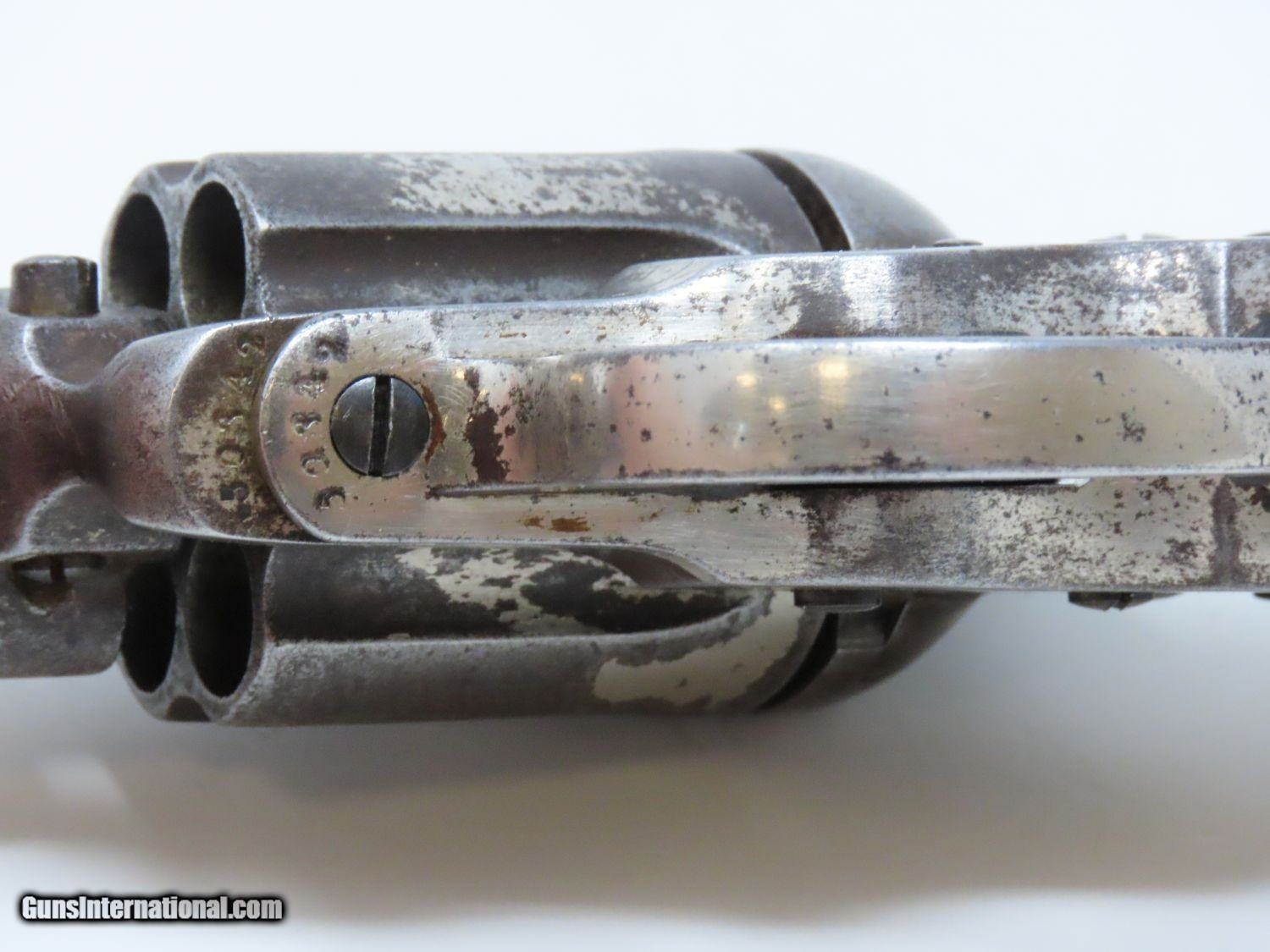 Description: Antique COLT Model 1877 “Lightning” .38 Caliber Double Action Revolver ETCHED PANEL Double Action .38 Colt Made in 1884 Here we present an antique Etched Panel Colt 1877 Lightning Double Action Revolver, made in 1884 in Hartford, Connecticut. The Model 1877 was Colt’s first venture into double action revolvers. It was quite successful, selling 166,849 from 1877 through 1909. Nonetheless, there was some hesitation to move away from the single action mechanism, which had so proven itself. Famous adopters of the Model 1877 were William “Billy the Kid” Bonney and John Wesley Hardin, along with “Doc” Holliday. Doc’s weapon of choice early in his western career was an 1851 Colt Navy revolver. Later, Doc carried a nickel-plated .41 caliber Colt Thunderer or the .38 caliber Colt Lightning. The Model 1877 was offered in three calibers, which lent them three unofficial names: the "Lightning", the "Thunderer", and the "Rainmaker". Neither "Lightning" nor "Thunderer" were Colt designations, nor used by the factory in any reference materials. Both terms were coined by Benjamin Kittredge, one of Colt's major distributors. The principal difference between the models was the cartridge in which they were chambered. The "Lightning" being chambered in .38 Long Colt and the "Thunderer" in .41 Long Colt. Both models had a six-round ammunition capacity. An earlier model in .32 Colt known as the "Rainmaker" was offered in 1877. The overall condition is good. Worn nickel finish. The action is strong. The bore is in good shape with good rifling. The right grip is chipped at the bottom. “COLT DA 38” is etched on the left side of the barrel. A great choice for the Wild West enthusiast! Own the original! This is a legitimate antique and not a reproduction. Barrel is 4-1/2 inches. Caliber: .38 Colt Overall condition as seen in photos. Very Fast. Very Safe. FREE SHIPPING WORLDWIDE. Delivered directly to your door by express mail! Guaranteed AUTHENTIC & Includes CERTIFICATE OF AUTHENTICITY. ancestryguns $1300 #20207 SOLD Antique: Yes |