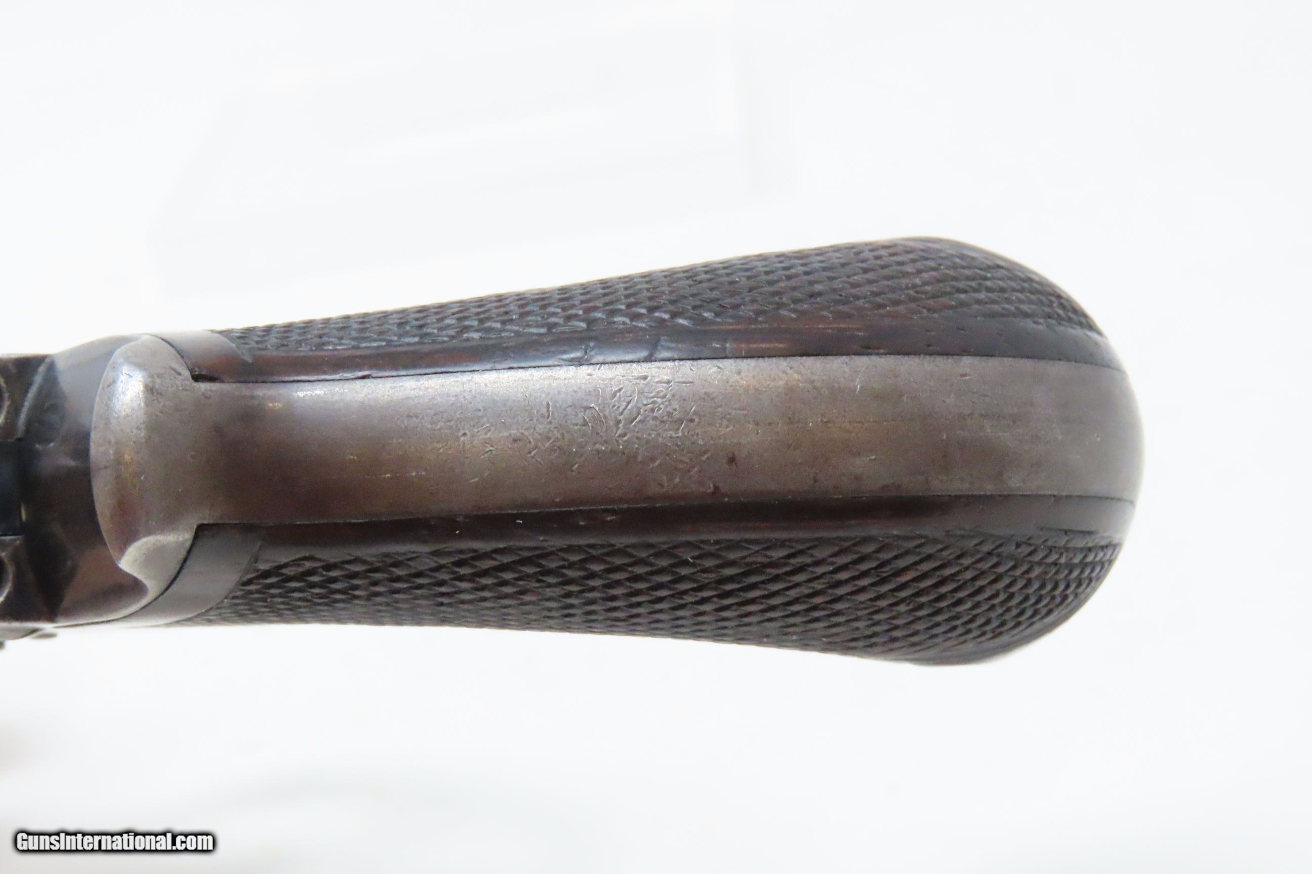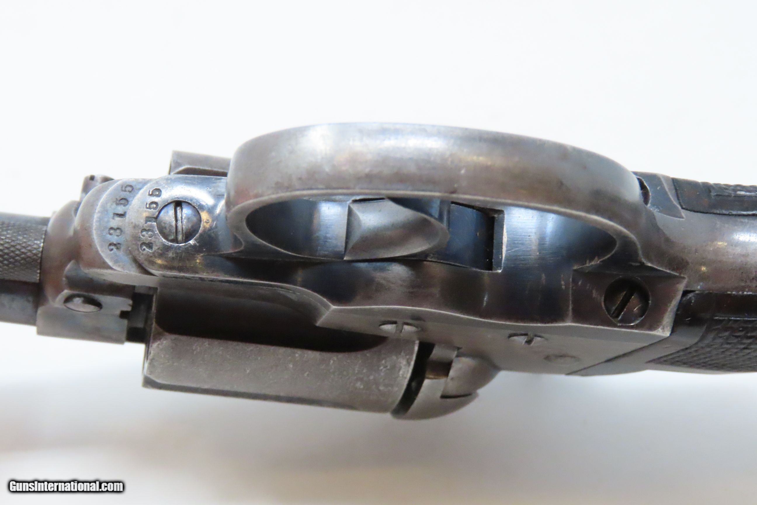 Description: c1880 COLT Model 1877 Lightning .38 Revolver HOLLIDAY HARDIN BILLY Antique Colt’s First Double Action Revolver! Here we present an antique Etched Panel Colt Model 1877 Lightning Double Action Revolver, made in 1880 in Hartford, Connecticut. The Model 1877 was Colt’s first venture into double action revolvers. It was quite successful, selling 166,849 from 1877 through 1909. Nonetheless, there was some hesitation to move away from the single action mechanism, which had so proven itself. Famous adopters of the Lightning were William “Billy the Kid” Bonney and John Wesley Hardin, along with “Doc” Holliday. Doc’s weapon of choice early in his western career was an 1851 Colt Navy revolver. Later, Doc carried a nickel-plated .41 caliber Colt Thunderer or the .38 caliber Colt Lightning. The Model 1877 was designed in 1876 by William Mason and was offered in three different calibers with production beginning in January 1877, which led to the three unofficial names. The first production model was the “Lightning”, in .38 Long Colt caliber. Later that year, Colt came out with the .41 Long Colt caliber called the “Thunderer”. The .32 Long Colt caliber, called the “Rainmaker”, didn’t go into production until sometime in 1887. Benjamin Kittredge, the largest Colt Distributor in Cincinnati, Ohio, coined the nicknames for these guns as a marketing tool. He was also responsible for calling the Model 1873 Single Action Army the “Peacemaker”. None of the nicknames were ever used by the factory in any reference materials. The 1877 "Thunderer” in .41 caliber was the preferred weapon of Billy the Kid and was his weapon of choice when he was killed by Pat Garret in 1881. The overall condition is near fine. Original blue and case colored finish. Excellent, tight action. The bore is bright and nicely rifled. The original checkered rosewood grip (an early feature along with the etched barrel panel) is in great shape. Numbers match. Good condition homemade case. Own the original! This is a legitimate antique and not a reproduction. Barrel is 2-1/2 inches. Caliber: .38 Colt Overall condition as seen in photos. Very Fast. Very Safe. FREE SHIPPING WORLDWIDE. Delivered directly to your door by express mail! Guaranteed AUTHENTIC & Includes CERTIFICATE OF AUTHENTICITY. ancestryguns $3100 #228345 SOLD Antique: Yes |