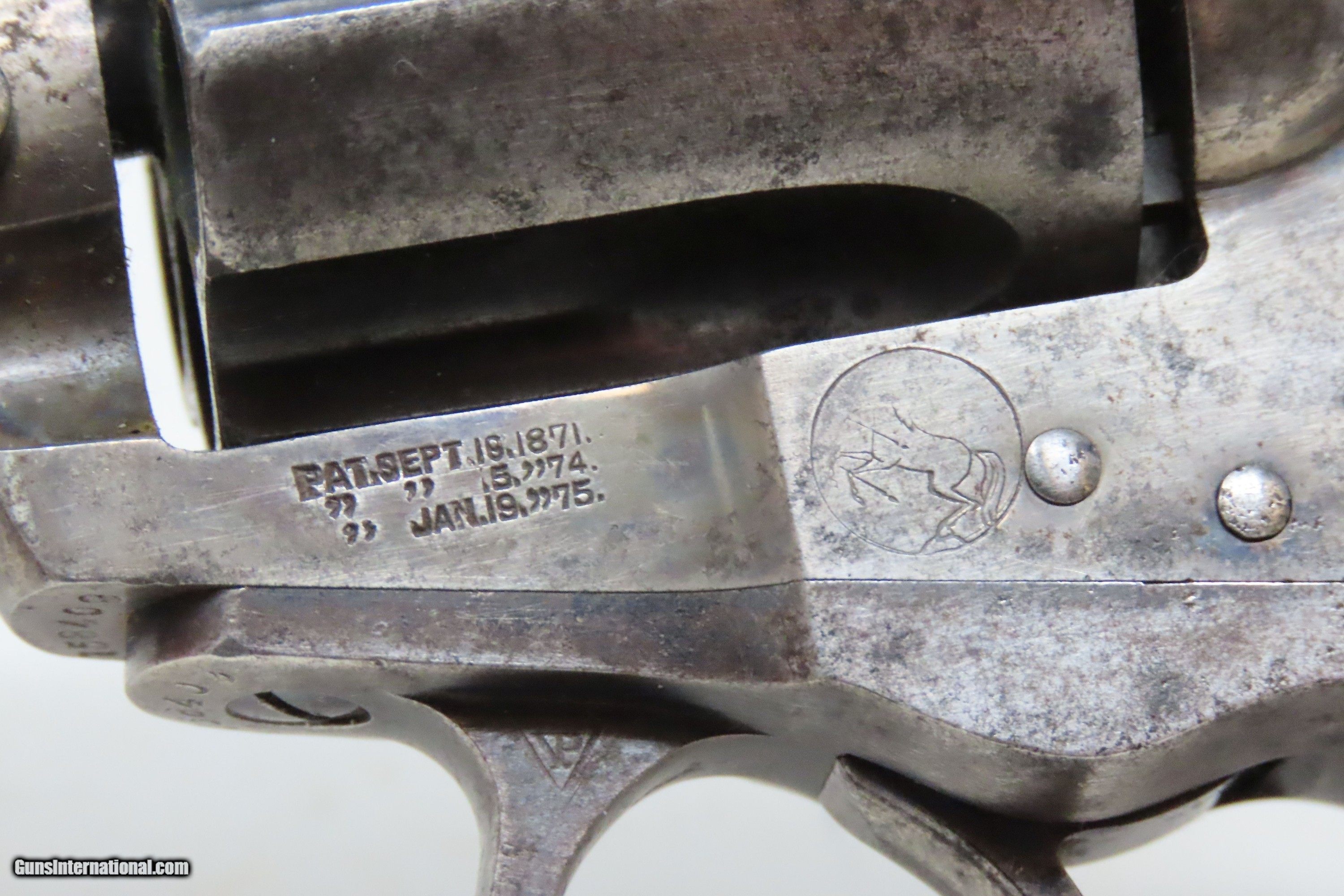 Description: c1905 mfr COLT Model 1877 Lightning .38 REVOLVER C&R “W.F. & Co. S.F. Cal.” Classic Double Action Revolver Made in 1905 Here we present a C&R Colt Model 1877 Lightning Double Action Revolver, made in 1905 in Hartford, Connecticut. The Model 1877 was Colt’s first venture into double action revolvers. It was quite successful, selling 166,849 from 1877 through 1909. Nonetheless, there was some hesitation to move away from the single action mechanism, which had proven itself. Famous adopters of the Lightning were William “Billy the Kid” Bonney and John Wesley Hardin, along with “Doc” Holliday. Doc’s weapon of choice early in his western career was an 1851 Colt Navy revolver. Later, Doc carried both a nickel-plated .41 caliber Colt Thunderer and the .38 caliber Colt Lightning. The Model 1877 was designed in 1876 by William Mason and was offered in three different calibers with production beginning in January 1877, which led to the three unofficial names. The first production model was the “Lightning”, in .38 Long Colt caliber. Later that year, Colt came out with the .41 Long Colt caliber called the “Thunderer”. The .32 Long Colt caliber, called the “Rainmaker”, didn’t go into production until sometime in 1887. Benjamin Kittredge, the largest Colt Distributor in Cincinnati, Ohio, coined the nicknames for these guns as a marketing tool. He was also responsible for calling the Model 1873 Single Action Army the “Peacemaker”. None of the nicknames were ever used by the factory in any reference materials. The 1877 "Thunderer” in .41 caliber was the preferred weapon of Billy the Kid and was his weapon of choice when he was killed by Pat Garret in 1881. The overall condition is good+. Strong traces of original finish with a gray patina pervading. The action is excellent in both double and single action. The bore is in great shape, shiny bright with strong rifling. The rampant Colt trademark grips show use and remain solid. Numbers match. There is a “W.F. & Co. S.F. Cal.” marking engraved on the back of the grip frame. This firearm is classified as a Curio & Relic. Barrel is 4-1/2 inches. Caliber: .38 Long Colt Overall condition as seen in photos. Very Fast. Very Safe. FREE SHIPPING. Will need to be sent to your local FFL or C&R licensee. This firearm is classified as a Curio & Relic. Guaranteed AUTHENTIC & Includes CERTIFICATE OF AUTHENTICITY. ancestryguns $2000 #240491 SOLD Curio/Relic: Yes |