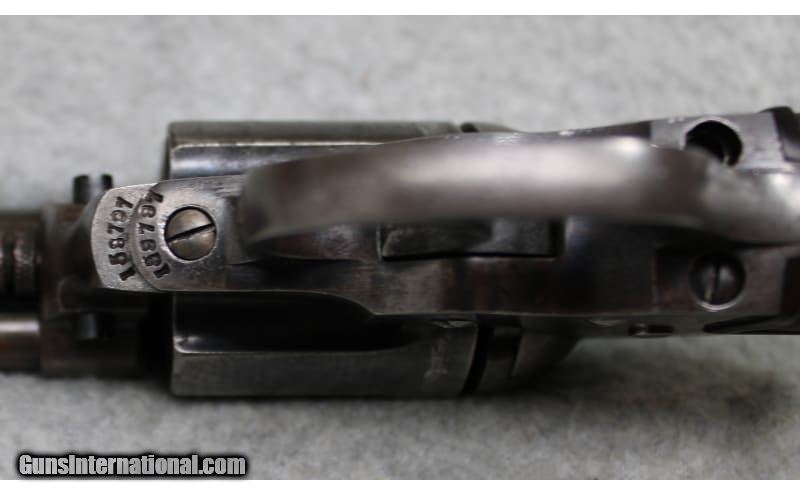 Description: Colt Model 1877 "Lightning" double/single-action revolver chambered in .38 Colt (.38 Long Colt). The serial number (159797) dates the firearm to 1906. .38 Long Colt SOLD Curio/Relic: Yes Metal Condition: "Good with Handling Marks, Finish Wear, and Scratches Wood Condition: Good with Handling Marks and Wear Bore Condition: Clear with Light Frosting Barrels: 4.5 inch Triggers: DA/SA Butt Pad: Hard Rubber Weight: 2 lbs 0 oz Item Location: Fort Worth, TX |
