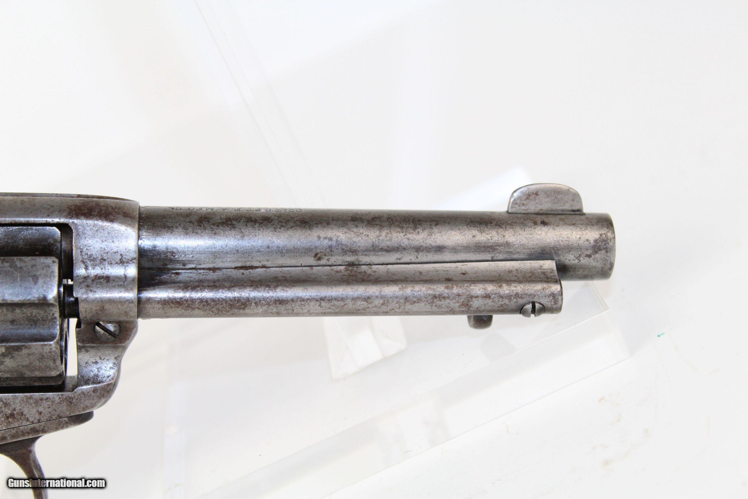 Description: Colt 1877 “LIGHTNING” Double Action Revolver in .38 C&R Made in 1901 Here we present a Colt 1877 Lightning Double Action Revolver, made in 1901 in Hartford, Connecticut. The Model 1877 was Colt’s first venture into double action revolvers. It was quite successful, selling 166,849 from 1877 through 1909, primarily in .38 and .41 calibers. Nonetheless, there was some hesitation to move away from the single action mechanism, which had so proven itself. Famous adopters of the Lightning were William “Billy the Kid” Bonney and John Wesley Hardin, two legendary names of the American West. The left side of the barrel is marked “COLT. D. A. 38”. The left side of the frame, underneath the cylinder is marked “PAT.SEPT.10.1871/ PAT.SEPT.15.1874/ PAT.JAN.19.1875” The top of the barrel is marked “COLT’S PT. F.A. MFG. CO./HARTFORD, CT U.S.A.”. The overall condition is very good. The metal surfaces have a light, smooth patina. The markings are clear and legible. The serial numbers match. The hard rubber grips are in good shape. The bore is clear and bright with strong rifling. The action on this revolver is excellent, strong and crisp. This firearm is classified as a Curio & Relic. Barrel is 4-½ inches. Caliber: .38 Colt Overall condition as seen in photos. Very Fast. Very Safe. FREE SHIPPING. Will need to be sent to your local FFL or C&R licensee. This firearm is classified as a Curio & Relic. Guaranteed AUTHENTIC & Includes CERTIFICATE OF AUTHENTICITY. ancestryguns $1050 #6374 SOLD Curio/Relic: Yes |