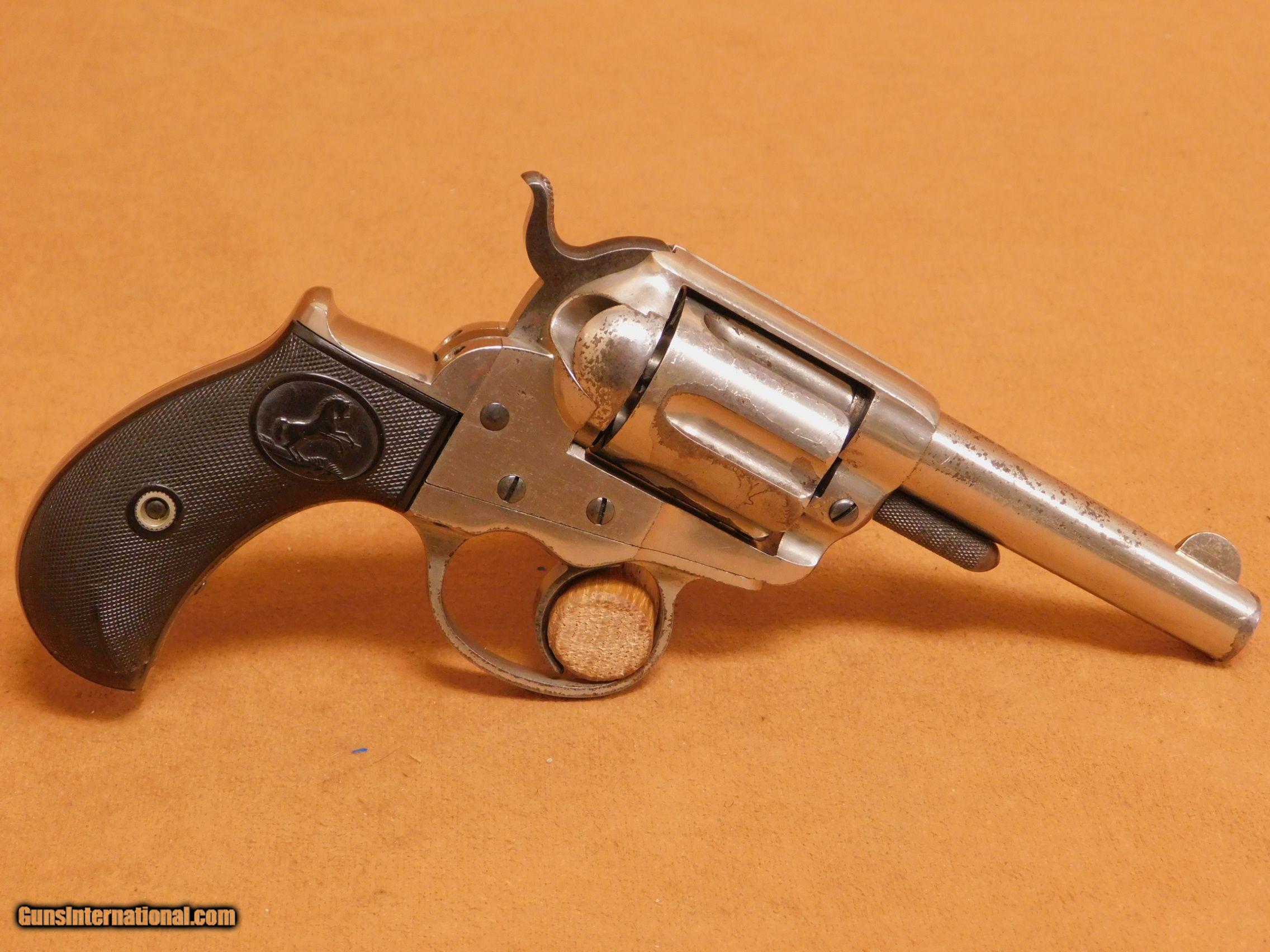 Description: This is a nice Colt 1877 Lightning Store Keeper's model .38 caliber revolver. It was made in 1879 and has 80% original nickel .38 caliber. It has a very good etched panel. Strong bore, mechanically sound. The grips have old repairs at the toe on both panels. A strong nitre blue is present on all screws. All items are also available for sale in our brick & mortar store and are subject to prior sale. Think long, think wrong. We are always buying unique and collectible single firearms and collections. Please give us a call at 859-278-8370 to discuss what you have available. We also offer free appraisals and guarantee TOP DOLLAR PAID for your unique and collectible firearms. Payment On firearms, we typically only accept credit cards or money orders/cashier's checks.