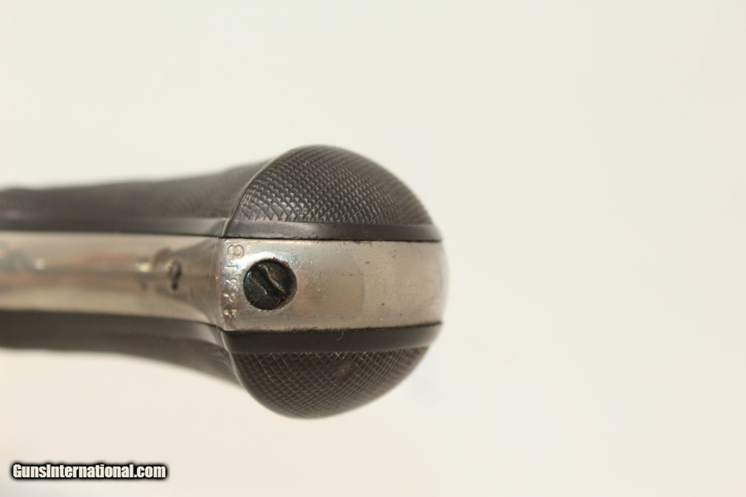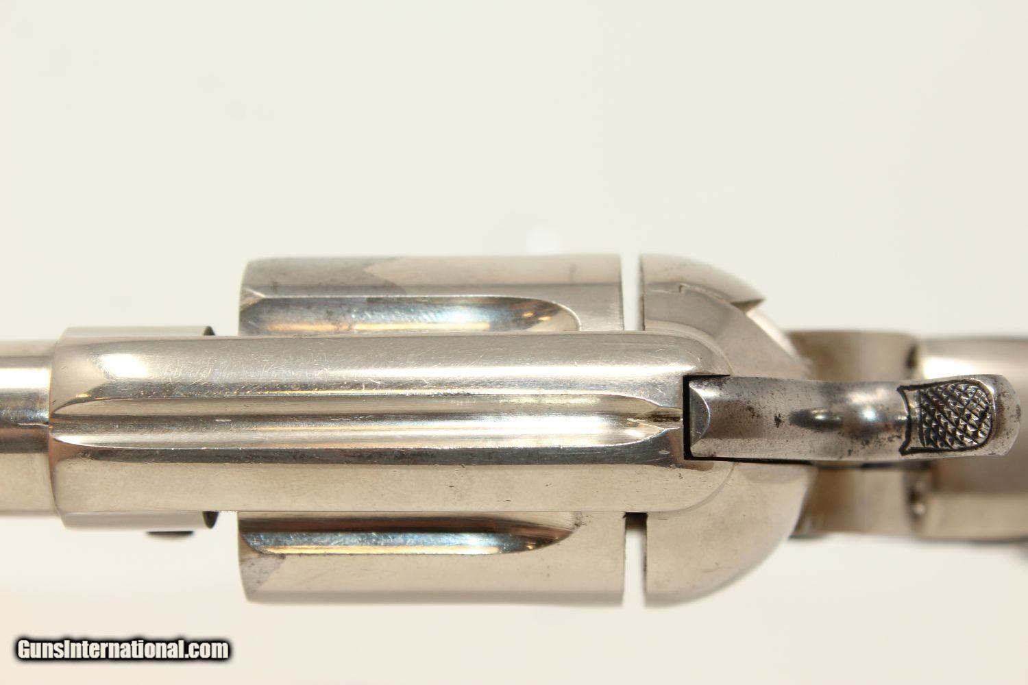 Description: EARLY Antique COLT 1877 “Lightning” .38 Revolver CASED Etched Panel Double Action .38 Colt Made in 1880 Here we present an antique Colt 1877 Lightning Double Action Revolver in .38 Colt, made in 1880 in Hartford, Connecticut. The Model 1877 was Colt’s first venture into double action revolvers. It was quite successful, selling 166,849 from 1877 through 1909. Nonetheless, there was some hesitation to move away from the single action mechanism, which had so proven itself. Famous adopters of the Lightning were William “Billy the Kid” Bonney and John Wesley Hardin, along with “Doc” Holliday. Doc’s weapon of choice early in his western career was an 1851 Colt Navy revolver. Later, Doc carried a nickel-plated .41 caliber Colt Thunderer or the .38 caliber Colt Lightning. The Model 1877 was offered in three calibers, which lent them three unofficial names: the "Lightning", the "Thunderer", and the "Rainmaker". Neither "Lightning" nor "Thunderer" were Colt designations, nor used by the factory in any reference materials. Both terms were coined by Benjamin Kittredge, one of Colt's major distributors. The principal difference between the models was the cartridge in which they were chambered. The "Lightning" being chambered in .38 Long Colt and the "Thunderer" in .41 Long Colt. Both models had a six-round ammunition capacity. An earlier model in .32 Colt known as the "Rainmaker" was offered in 1877. This one comes in a hobbyist oak case ready to accessorize with some ammunition. It is acid etched on the left side of the barrel with “COLT DA .38”, an earlier and somewhat delicate feature which would be replaced later with stampings. The overall condition is very fine. 99% of the original nickel finish is present. The nitre blue on the back of the hammer and trigger is 97%. The markings are clear. The numbers match. The trademarked hard rubber grips are in great shape. The bore is bright with sharp rifling. The action is excellent in both double and single action. This one is in phenomenal condition and would be the crown jewel in many a collection! Own the original! This is a legitimate antique and not a reproduction. Barrel is 3-1/2 inches. Caliber: .38 Colt Overall condition as seen in photos. Very Fast. Very Safe. FREE SHIPPING WORLDWIDE. Delivered directly to your door by express mail! Guaranteed AUTHENTIC & Includes CERTIFICATE OF AUTHENTICITY. ancestryguns $3350 #190780 SOLD Antique: Yes |