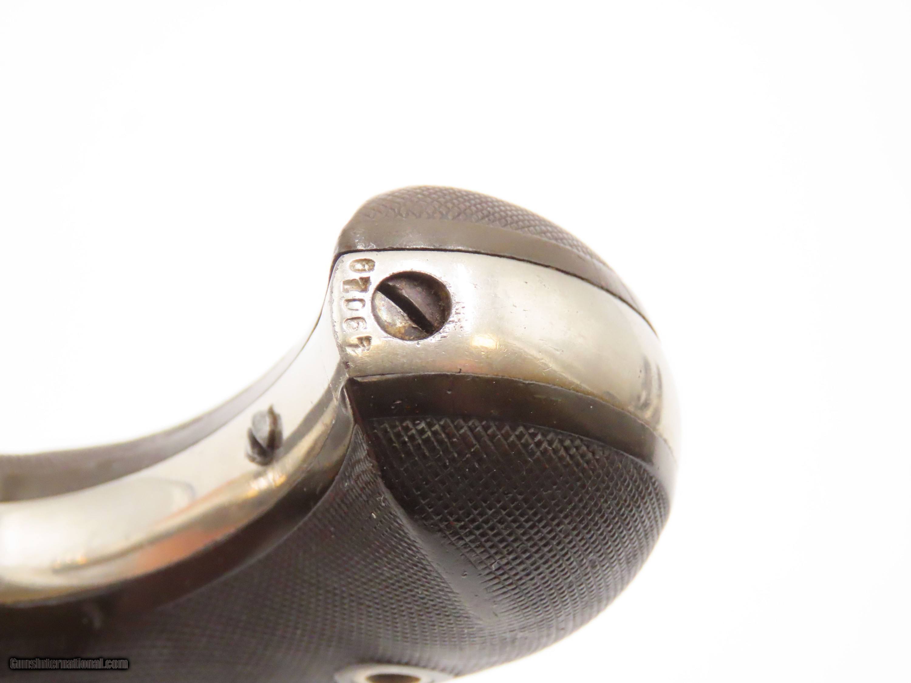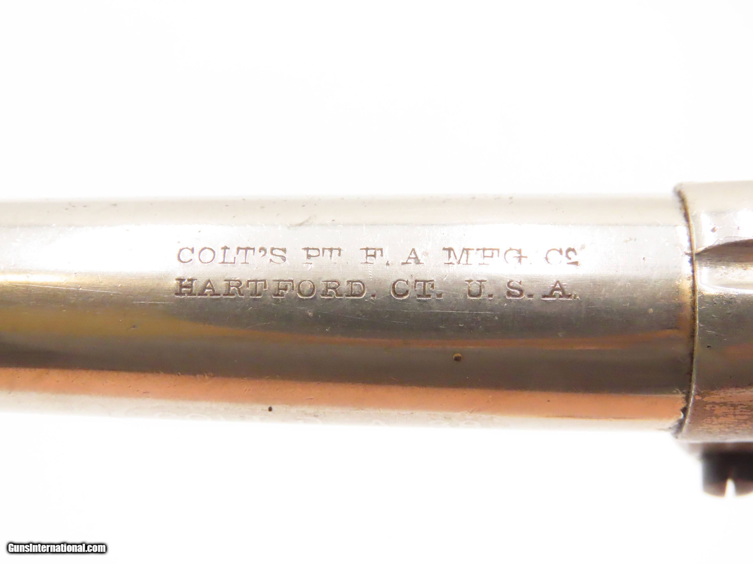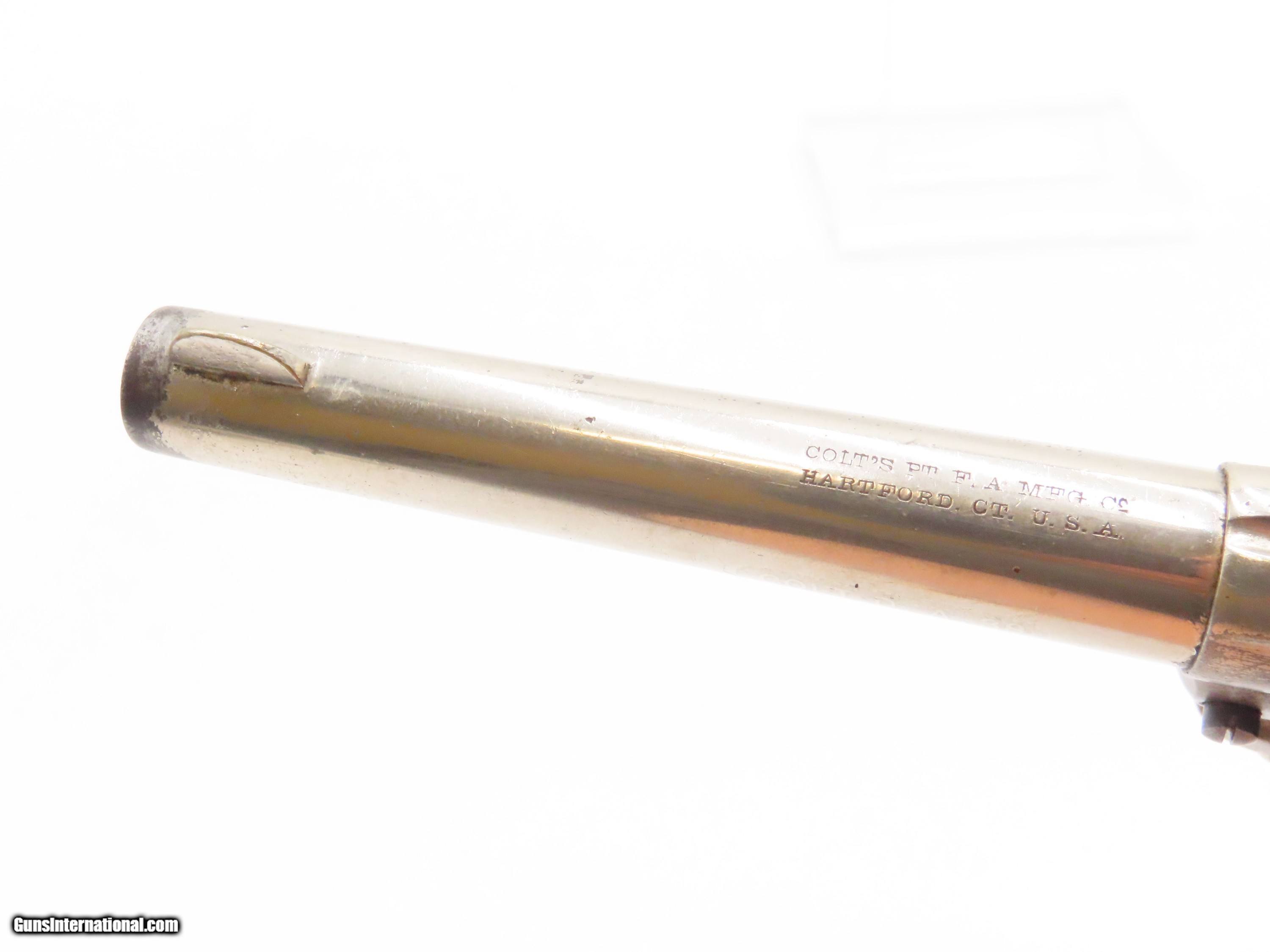 Description: FINE Antique COLT M1877 “Lightning” .38 Double Action ETCHED PANEL Revolver BILLY the KID’S Revolver of Choice in .38 Colt Here we present a very nice antique Etched Panel Colt 1877 Lightning Double Action Revolver, made in 1884 in Hartford, Connecticut. The Model 1877 was Colt’s first venture into double action revolvers. It was quite successful, selling 166,849 from 1877 through 1909. Nonetheless, there was some hesitation to move away from the single action mechanism, which had so proven itself. Famous adopters of the Lightning were William “Billy the Kid” Bonney and John Wesley Hardin, along with “Doc” Holliday. Doc’s weapon of choice early in his western career was an 1851 Colt Navy revolver. Later, Doc carried a nickel-plated .41 caliber Colt Thunderer or the .38 caliber Colt Lightning. The Model 1877 was designed in 1876 by William Mason and was offered in three different calibers with production beginning in January 1877, which led to the three unofficial names. The first production model was the “Lightning”, in .38 Long Colt caliber. Later that year, Colt came out with the .41 Long Colt caliber called the “Thunderer”. The .32 Long Colt caliber, called the “Rainmaker”, didn’t go into production until sometime in 1887. Benjamin Kittredge, the largest Colt Distributor in Cincinnati, Ohio, coined the nicknames for these guns as a marketing tool. He was also responsible for calling the Model 1873 Single Action Army the “Peacemaker”. None of the nicknames were ever used by the factory in any reference materials. The 1877 "Thunderer” in .41 caliber was the preferred weapon of Billy the Kid and was his weapon of choice when he was killed by Pat Garret in 1881. The overall condition is fine. Original nickel finish with minimal flaking. Excellent, tight action. The bore is dim with strong rifling. Both grips are good and only contain an average amount of handling. Markings are sharp. Numbers match. Etchings on the left side of the barrel are intact! Own the original! This is a legitimate antique and not a reproduction. Barrel is 4-1/2 inches. Caliber: .38 Long Colt Overall condition as seen in photos. Very Fast. Very Safe. FREE SHIPPING WORLDWIDE. Delivered directly to your door by express mail! Guaranteed AUTHENTIC & Includes CERTIFICATE OF AUTHENTICITY. ancestryguns $2150 #250181 SOLD Antique: Yes |