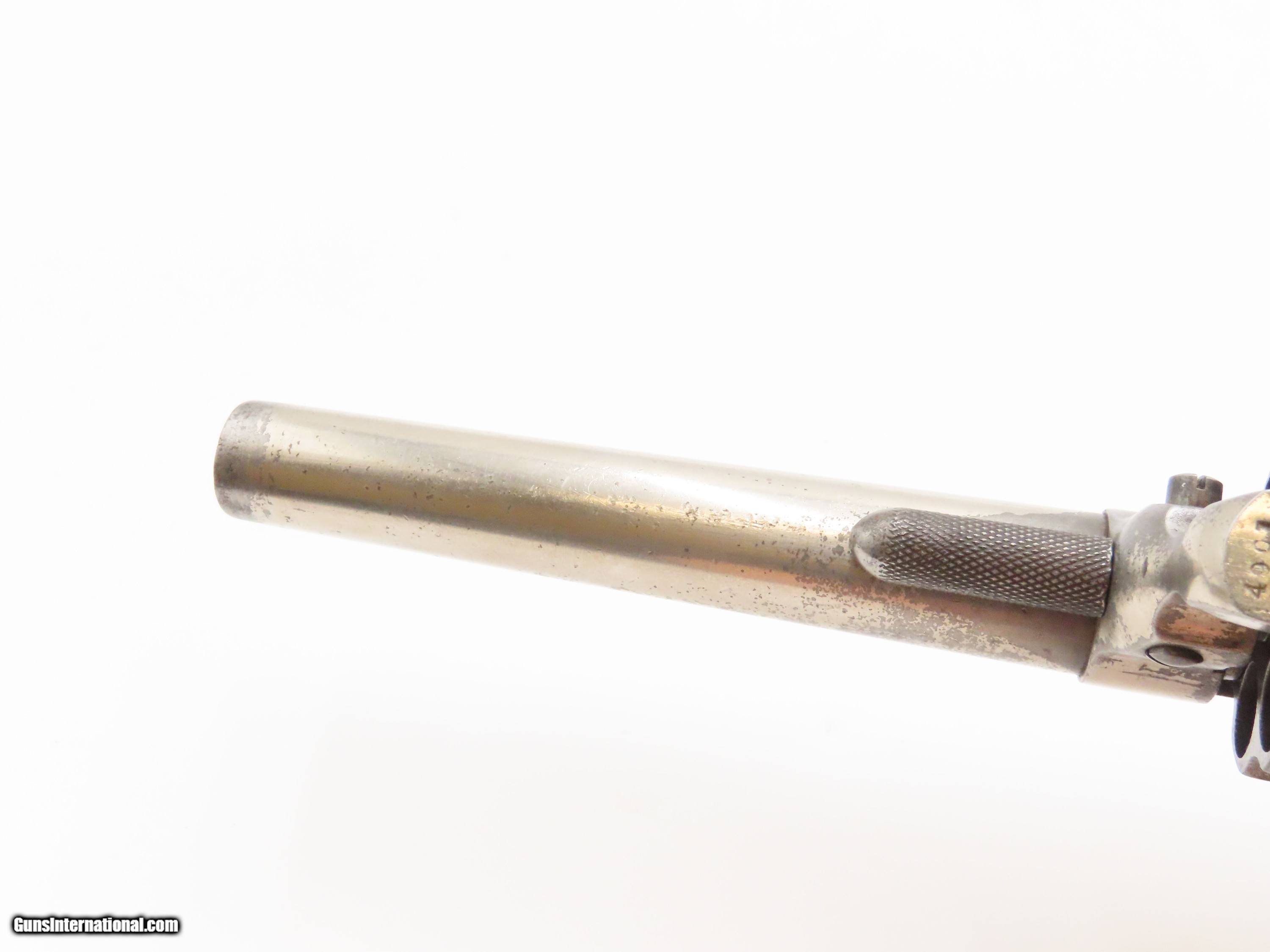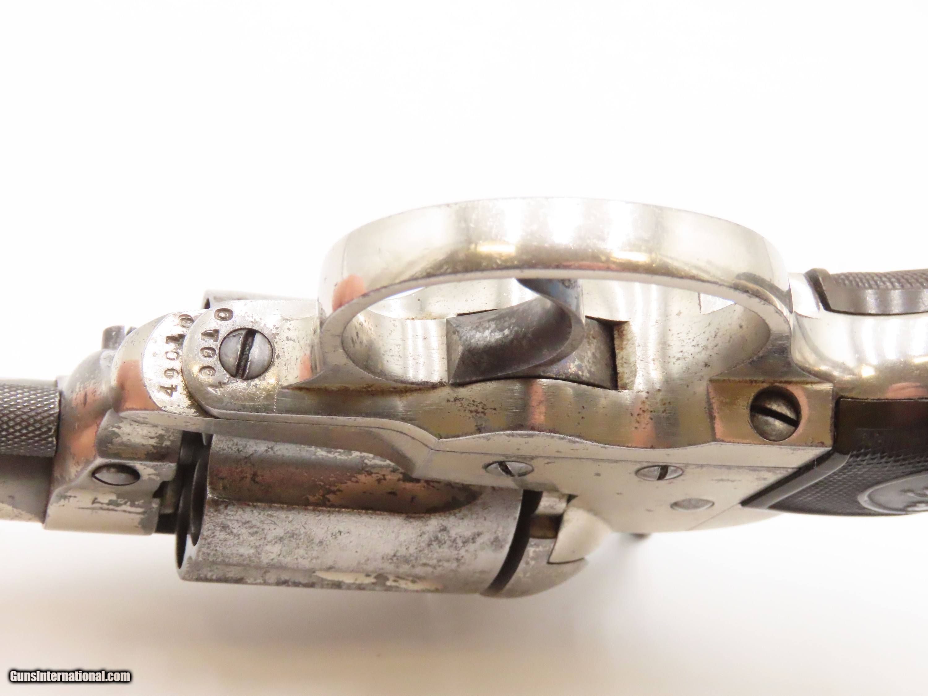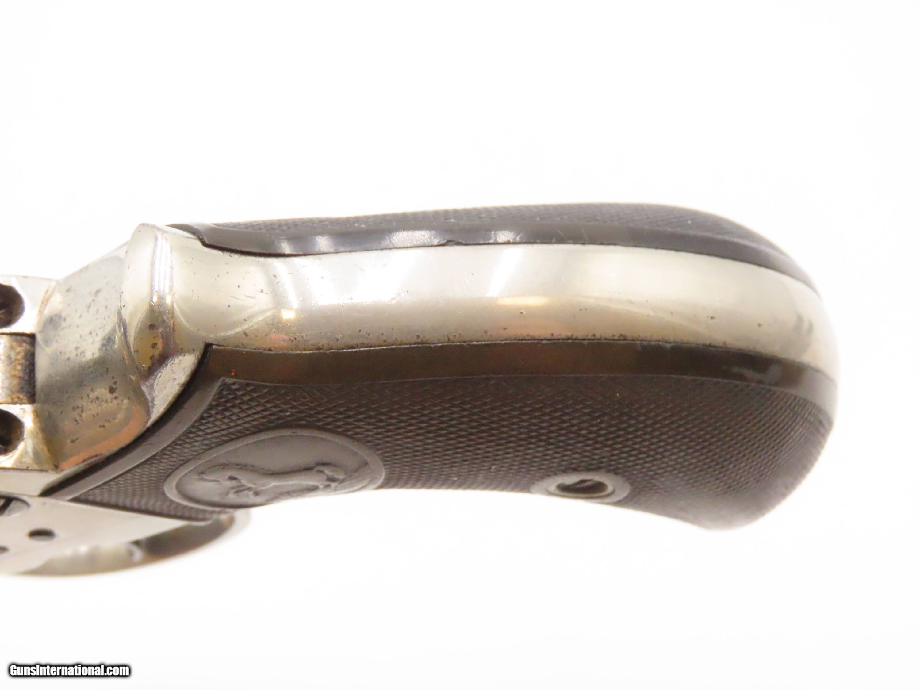Description: FINE Antique COLT M1877 “Lightning” .38 Double Action ETCHED PANEL Revolver BILLY the KID’S Revolver of Choice in .38 Colt Here we present a very nice antique Etched Panel Colt 1877 Lightning Double Action Revolver, made in 1884 in Hartford, Connecticut. The Model 1877 was Colt’s first venture into double action revolvers. It was quite successful, selling 166,849 from 1877 through 1909. Nonetheless, there was some hesitation to move away from the single action mechanism, which had so proven itself. Famous adopters of the Lightning were William “Billy the Kid” Bonney and John Wesley Hardin, along with “Doc” Holliday. Doc’s weapon of choice early in his western career was an 1851 Colt Navy revolver. Later, Doc carried a nickel-plated .41 caliber Colt Thunderer or the .38 caliber Colt Lightning. The Model 1877 was designed in 1876 by William Mason and was offered in three different calibers with production beginning in January 1877, which led to the three unofficial names. The first production model was the “Lightning”, in .38 Long Colt caliber. Later that year, Colt came out with the .41 Long Colt caliber called the “Thunderer”. The .32 Long Colt caliber, called the “Rainmaker”, didn’t go into production until sometime in 1887. Benjamin Kittredge, the largest Colt Distributor in Cincinnati, Ohio, coined the nicknames for these guns as a marketing tool. He was also responsible for calling the Model 1873 Single Action Army the “Peacemaker”. None of the nicknames were ever used by the factory in any reference materials. The 1877 "Thunderer” in .41 caliber was the preferred weapon of Billy the Kid and was his weapon of choice when he was killed by Pat Garret in 1881. The overall condition is fine. Original nickel finish with minimal flaking. Excellent, tight action. The bore is dim with strong rifling. Both grips are good and only contain an average amount of handling. Markings are sharp. Numbers match. Etchings on the left side of the barrel are intact! Own the original! This is a legitimate antique and not a reproduction. Barrel is 4-1/2 inches. Caliber: .38 Long Colt Overall condition as seen in photos. Very Fast. Very Safe. FREE SHIPPING WORLDWIDE. Delivered directly to your door by express mail! Guaranteed AUTHENTIC & Includes CERTIFICATE OF AUTHENTICITY. ancestryguns $2150 #250181 SOLD Antique: Yes |