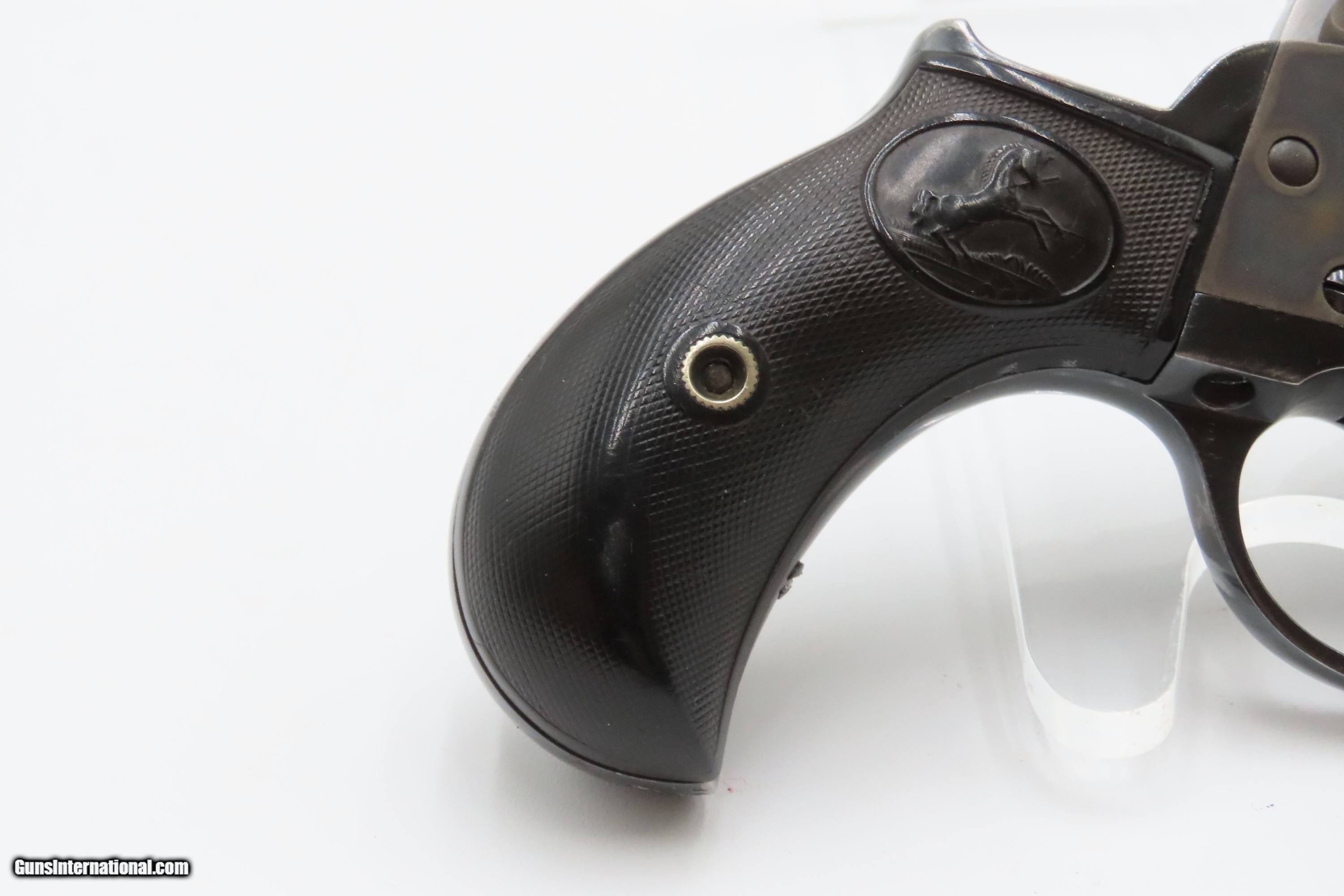 Description: NICE Antique COLT M1877 “Lightning” DA Revolver DOC HOLLIDAY/BILLY the KID 1895 mfg. Double Action Chambered in .38 Long Colt Here we present an antique Colt Model 1877 Lightning Double Action Revolver, made in 1895 in Hartford, Connecticut. The Model 1877 was Colt’s first venture into double action revolvers. It was quite successful, selling 166,849 from 1877 through 1909. Nonetheless, there was some hesitation to move away from the single action mechanism, which had so proven itself. Famous adopters of the Lightning were William “Billy the Kid” Bonney and John Wesley Hardin, along with “Doc” Holliday. Doc’s weapon of choice early in his western career was an 1851 Colt Navy revolver. Later, Doc carried a nickel-plated .41 caliber Colt Thunderer or the .38 caliber Colt Lightning. The Model 1877 was designed in 1876 by William Mason and was offered in three different calibers with production beginning in January 1877, which led to the three unofficial names. The first production model was the “Lightning”, in .38 Long Colt caliber. Later that year, Colt came out with the .41 Long Colt caliber called the “Thunderer”. The .32 Long Colt caliber, called the “Rainmaker”, didn’t go into production until sometime in 1887. Benjamin Kittredge, the largest Colt Distributor in Cincinnati, Ohio, coined the nicknames for these guns as a marketing tool. He was also responsible for calling the Model 1873 Single Action Army the “Peacemaker”. None of the nicknames were ever used by the factory in any reference materials. The 1877 "Thunderer” in .41 caliber was the preferred weapon of Billy the Kid and was his weapon of choice when he was killed by Pat Garret in 1881. The overall condition is good. Beautifully refinished. Bright bore with strong rifling. Both grips are solid with average handling wear. The action does not fully function as the hammer does not hold at half or full cock positions. The cylinder does not lockup. Numbers match. Legible markings. Own the original! This is a legitimate antique and not a reproduction. Barrel is 4-1/2 inches. Caliber: .38 Long Colt Overall condition as seen in photos. Very Fast. Very Safe. FREE SHIPPING WORLDWIDE. Delivered directly to your door by express mail! Guaranteed AUTHENTIC & Includes CERTIFICATE OF AUTHENTICITY. ancestryguns $1700 #250168 SOLD Antique: Yes |