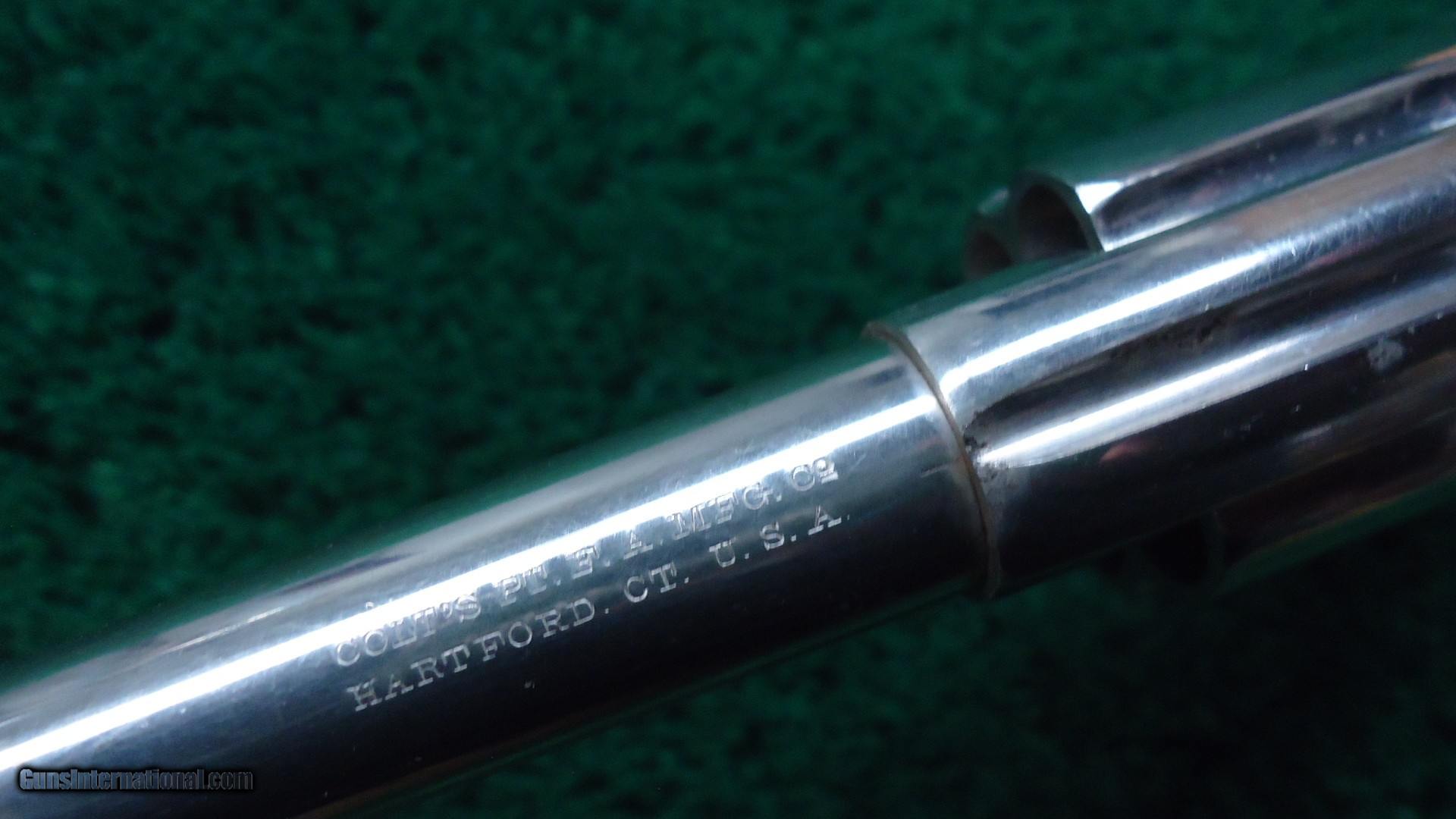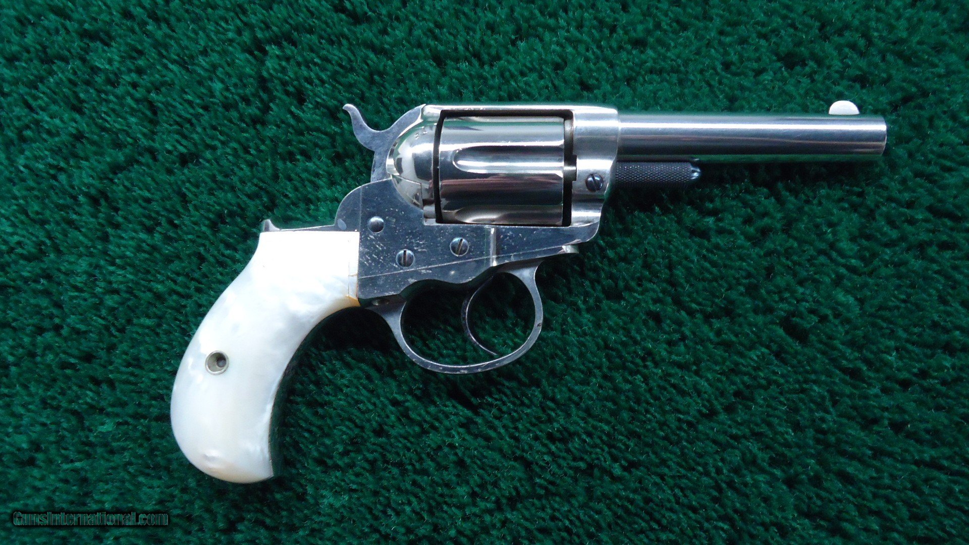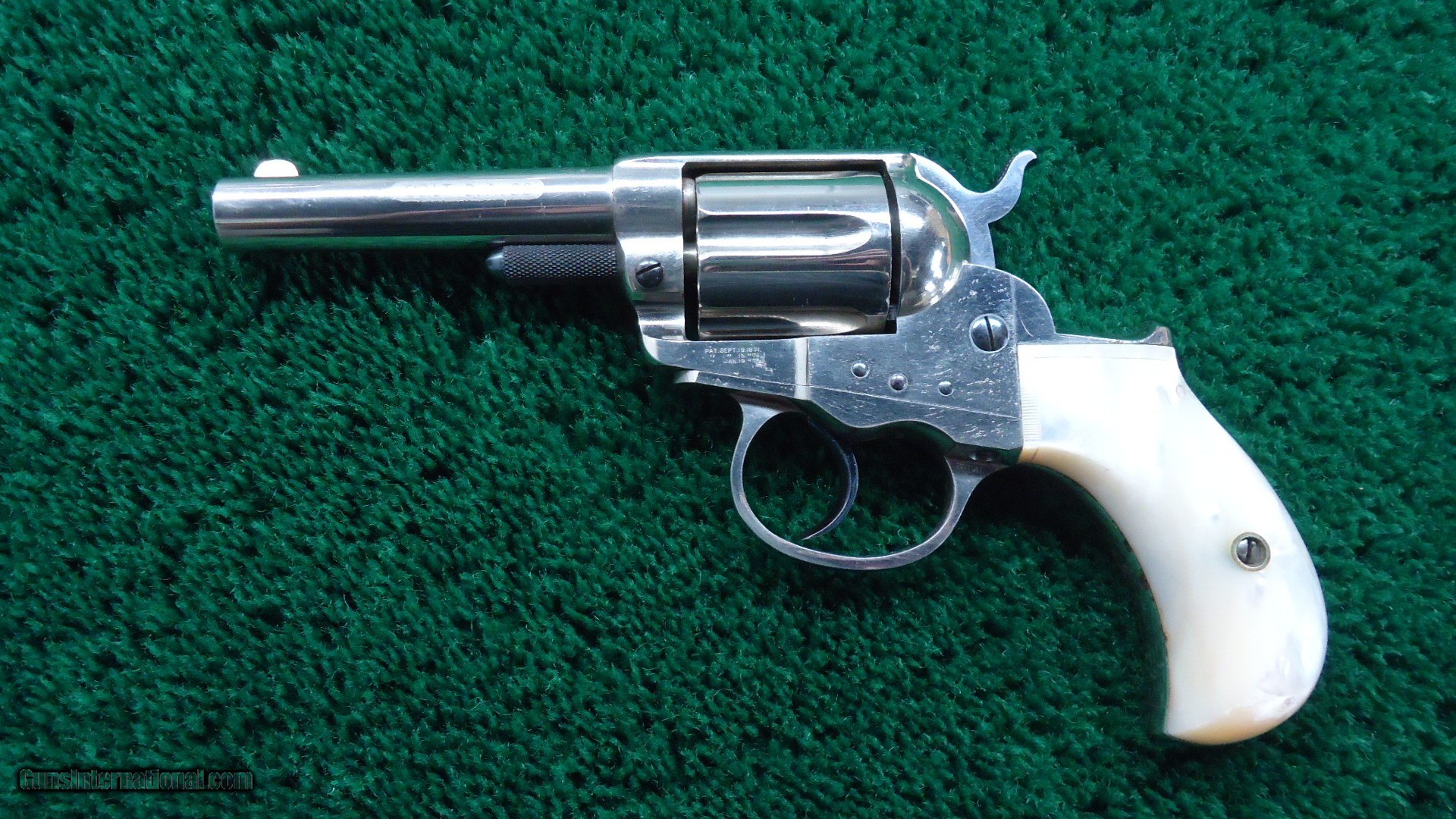Description: Serial number 106 first year production Model 1877 Colt DA revolver with 3-1/2 inch round barrel chambered in caliber 38 Colt. Features carved Mother of Pearl grips and full nickel plating. Most all the original nickel finish is intact as well as the Colt fire blue on the hammer, trigger and screws. COLT D.A.38 etched panel on the barrel. Fitted in a deluxe compartment-ed case. The corners are brass and there is a name plaque on the top that says " E.W. Freeman Presented by his friends Tuesday Feb. 27,1877". The case is in fine condition. Showing some wear on the inside. The outside is beautiful. This is a nice little 6 shot double action Colt. Comes with a Box of 38 caliber ammo. A real time capsule from 1877! This would be a good one to investigate for some more history on the gun. Leroy Merz Antique Firearms specializes in antique and vintage Winchesters and other fine American firearms. Since 1965 Mr. Merz has taken part in the world of firearms and has been a contributor to many well known reference books. We have hundreds of additional guns in every price range at our home online. Search for Merz Antiques in google. SOLD Antique: Yes Handgun Caliber: .38 Long Colt |