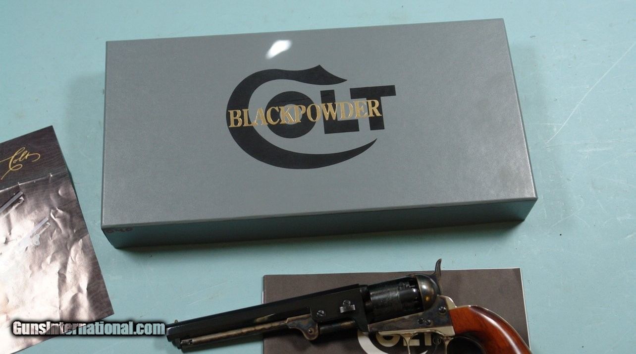 Description: 32559-COLT SIGNATURE SERIES BLACK POWDER 1851 NAVY PERCUSSION REVOLVER W/ORIGINAL BOX AND MANUAL. 7 ½” barrel. Six-shot, .36 caliber percussion. Beautiful Colt factory production. Naval engagement cylinder scene. New and unfired in original box with Instructions Manual. Also has the original outer shipping carton. Beautiful blue and case colors. $1050. SOLD Handgun Caliber: .36 |