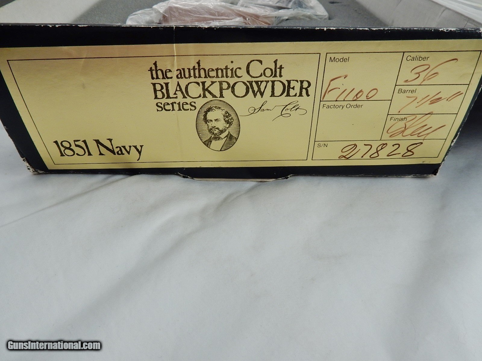 Description: This is a Colt 1851 36 caliber with a 7 1/2 inch barrel. This gun is 100% new in the box. Serial # is 27xxx. Buyer pays 30.00 shipping and must provide a copy of DL to prove 21 years of age. Thank you. SOLD |