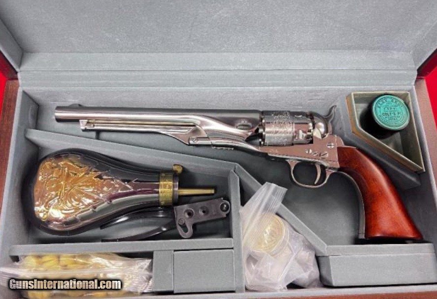 Description: Colt Blackpowder Series 1860 Army nickel finish, unfired in Colt display box, all Colt genuine accessories, bullet mold, powder flask includes all plain Kraft shipping containers SOLD |