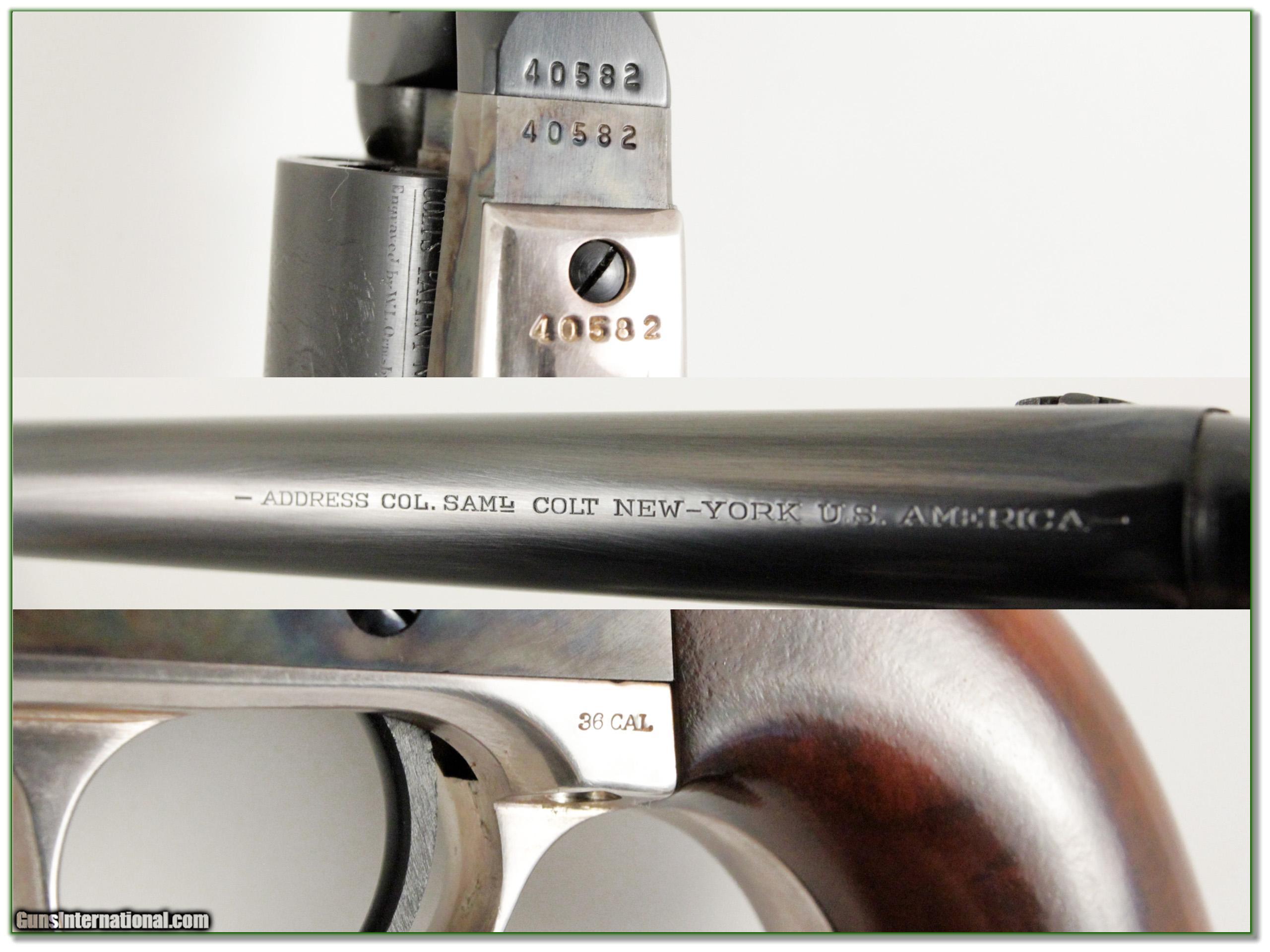 Description: Collectors, this is a new, unfired, and perfect Colt 1861 Navy. It comes as seen in original box and includes all factory papers still on the inside of the box top. It will make a nice addition to your collection and DOES NOT have to ship to a gun dealer. I am selling this one on consignment and as such, lay-a-way can’t be used. It does of course have the standard 3-day inspection. Shipping and insurance is $35. Please email me with any questions or larger pictures. (Consign your quality firearms with Shooting Investments for only 10%! Let me know if you have any you would like to sell!) 17-0528 Payment: Payment is by Money Order, Cashiers Check or Personal Check. I can now also accept MasterCard and Visa with a 3% convenience fee. PayPal can be used for some items but never firearms. Please let us know if you would like to pay via PayPal. Shipping: The shipping charge will be listed in each description. It is $35 for most guns. Some heavy guns or those insured for over $2000 will be higher. Shipments to Alaska and Hawaii are higher because air shipment is required. Most firearms are shipped within 5 days of receipt of payment. We prefer shipping at the beginning of the week to avoid firearms in transit over weekends. We package all shipments carefully and insure them for the full purchase price, rounded up to the next $100. In the unlikely event that damage occurs, it is important that you save all packaging material for the claims process. Optics are shipped Priority Mail and most other non-firearm shipments are shipped First Class. Returns: Our return policy is simple. If for any reason you are not pleased with your purchase, you may return your item for a refund. The only exception is ammunition, it cannot be returned. It is important to us that you are happy. Guns cannot be fired or dissembled before returning them and must be returned in the same condition as received. Notification of a return must occur with-in 3 days of receipt at your dealer. Shipping, convenience and dealer fees are not refundable and are the responsibility of the buyer. Lay-a-way: If needed, we offer a 60 day lay-a-way option on most firearms. It is 1/3 now, 1/3 in 30 days and 1/3 in 60 days. Lay-a-way firearm sales are final. Consigning your firearms with Shooting Investments: We will help you get top dollar for your firearms. While most local guns shops charge 20% or more, our fee is only 10% with a minimum of $50. At your local gun shop it might take months to sell. Selling on-line provides instant access to thousands of interested buyers. You won’t find any other on-line dealer willing to sell your firearms for only 10% or listing every gun on 4 separate s. Selling through an House typically costs the seller 15% and the buyer an addition 15% (so 30%) and you have to wait several months to sell and longer to receive funds. If properly priced, we will sell your firearms in a week or two. Send us an email or give us a call and we’ll explain how easy it is for you to get top dollar. Trading: We collect guns and usually just trade for guns we want to add to our collections. We often sell guns for others wanting to purchase one of ours. We find this the most fair to both of us. Our Commission is only 10% and we hold the gun you want until yours sells. Please contact us if you want to sell one of yours to buy one of ours. Help for California Buyers: We are happy to ship to California. It is the buyer’s responsibility to make sure any item you buy is legal in your state. We are also happy to help with your purchase of a firearm from someone other than us. If you see a gun you would like to buy but the seller can’t or won’t ship to California we can help. You buy the gun and have it shipped to us. We’ll then ship it to your California dealer. The cost for this service is only $30 + shipping. Let me know if we can help! SOLD |