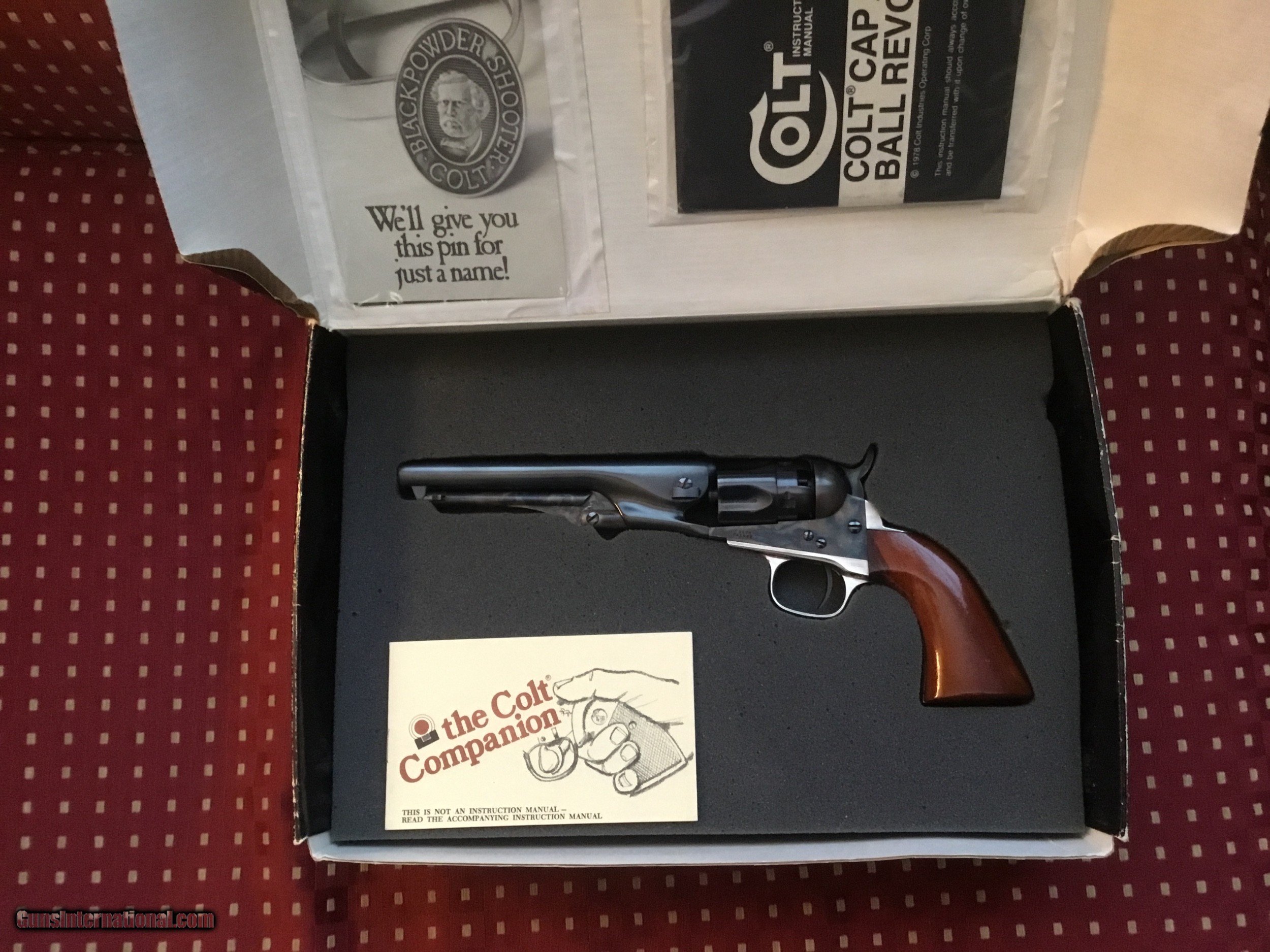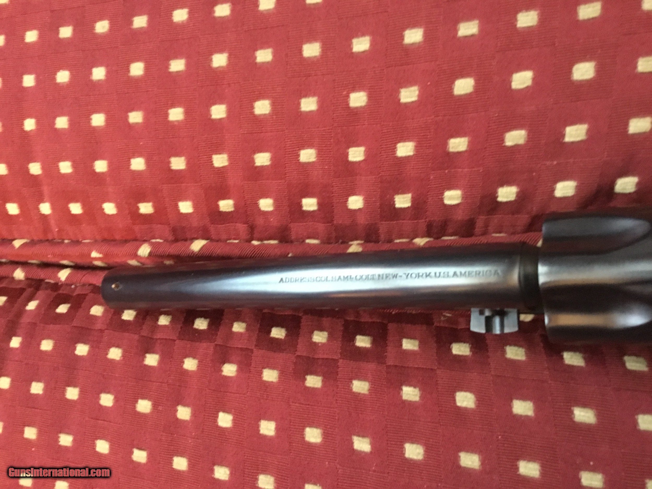 Description: Colt Pocket Police made in late seventies-early eighties. Cylinder has slight dragline, otherwise perfect, unfired. original box has tattered corners. SOLD |