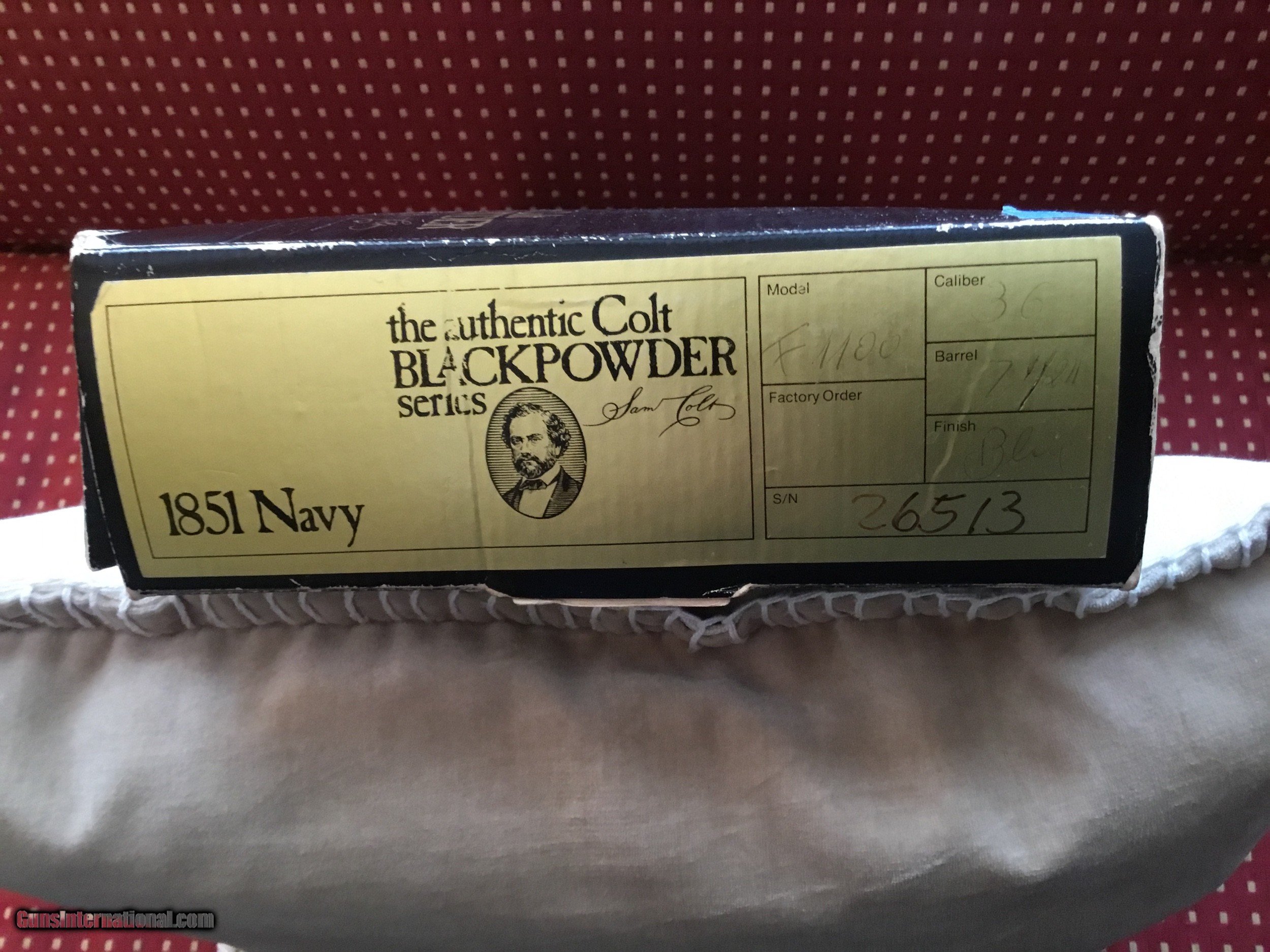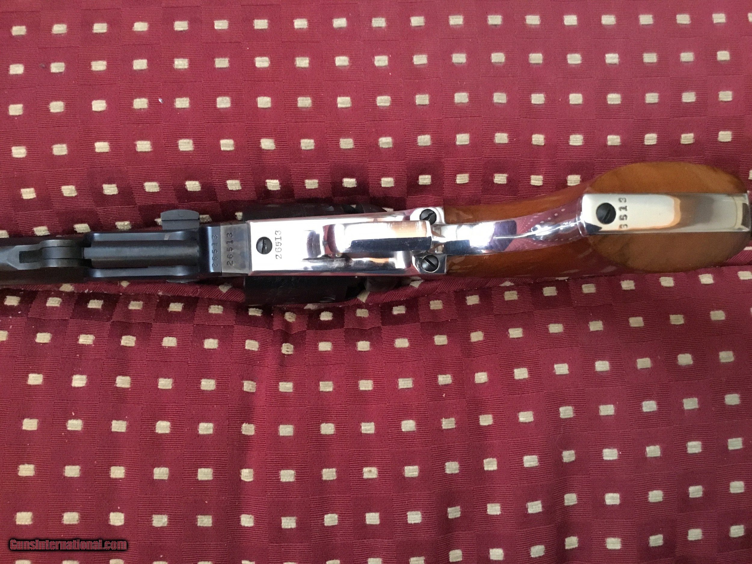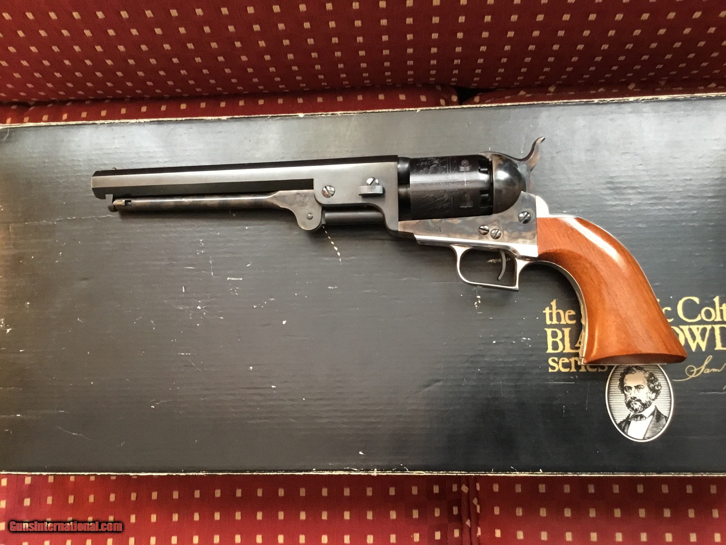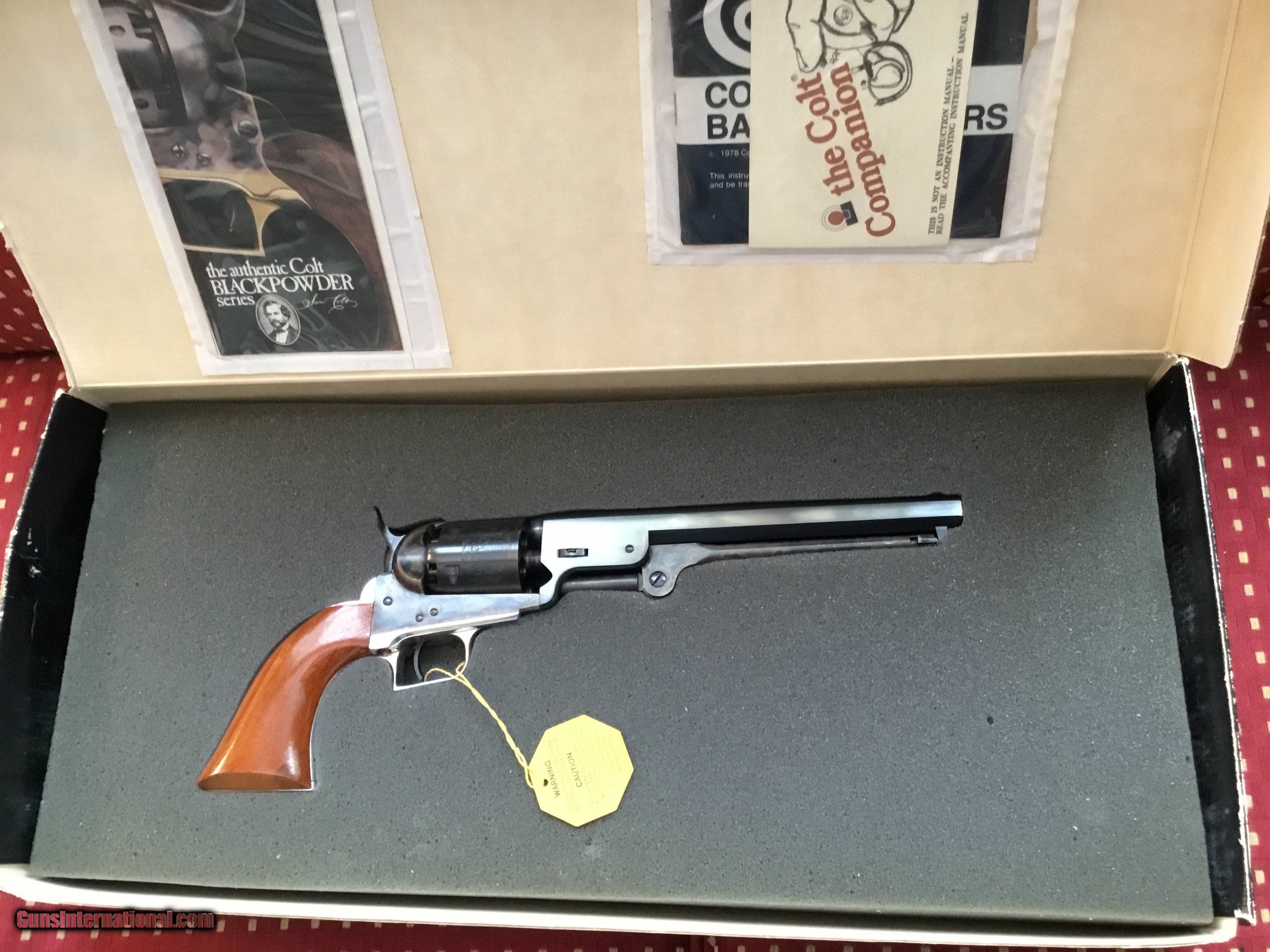 Description: "SALE PENDING" Colt 51 Navy "F" series, made in the late 70's of the 2nd generation. Cylinder has been turned, but unfired. Slight blemish on top of silver backstrap, probably would buff out. Otherwise, excellent condition. In the original box with unopened manual and paperwork. Shipping costs $35. SOLD |