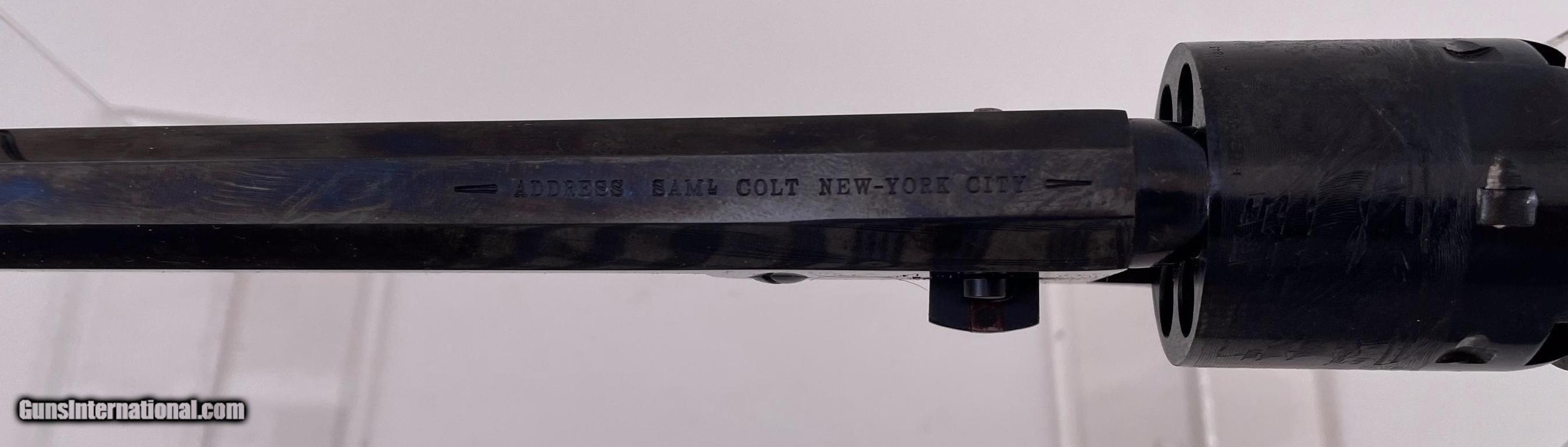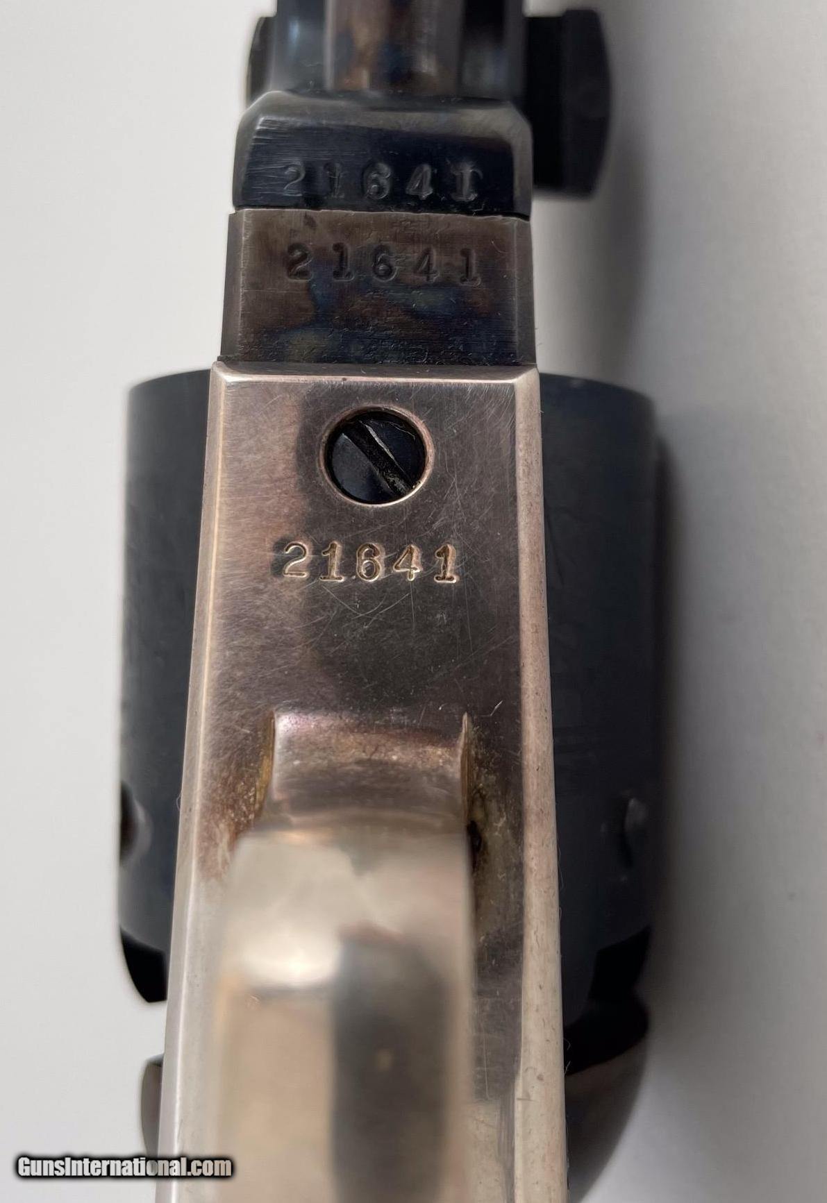 Description: See photos for condition. Near new A very small chip in heel of right grip SOLD Manufacturer: Colt Model: Navy Serial Number: 21641 Barrel Length: 7.5 Condition: Unfired |