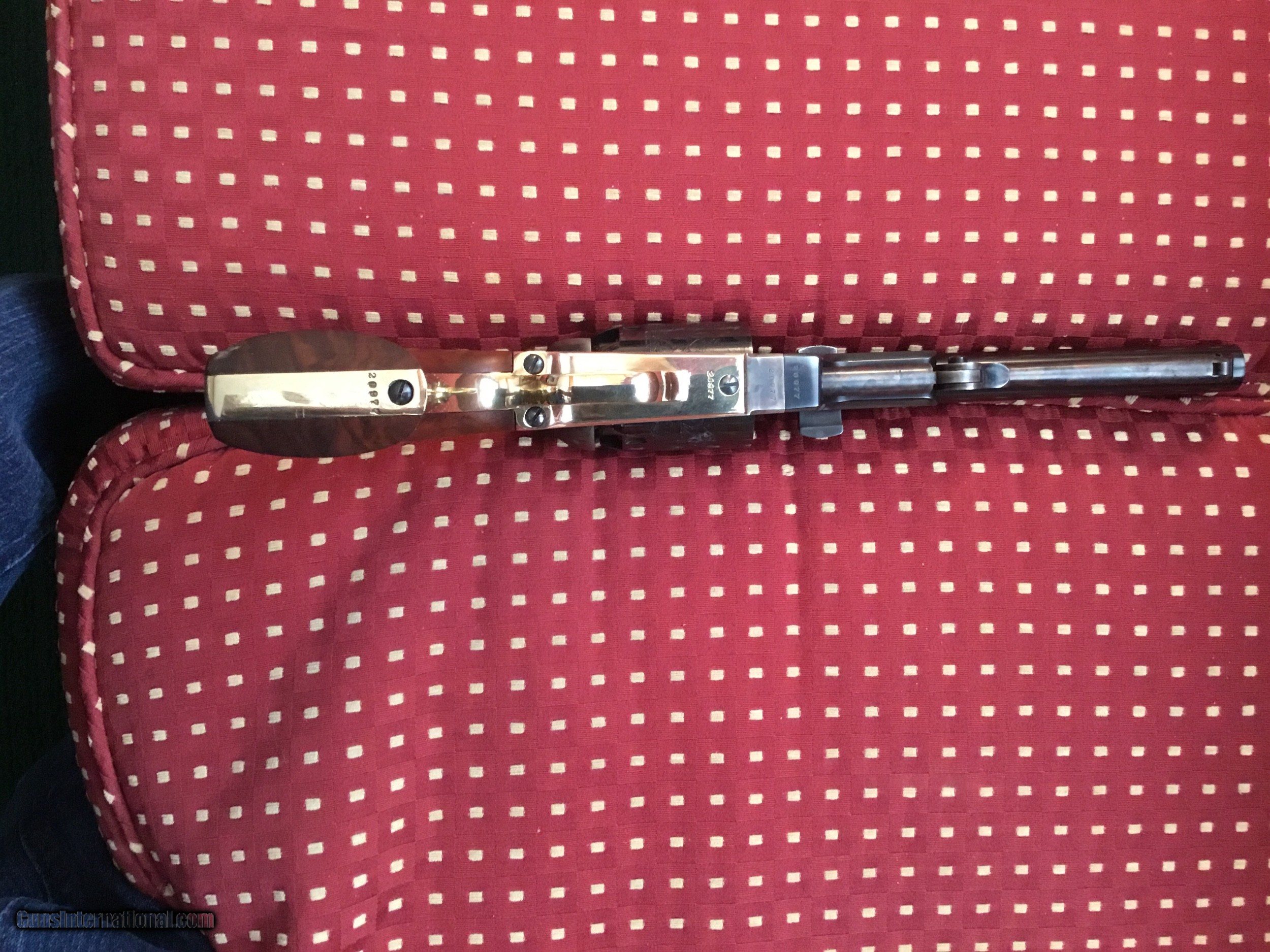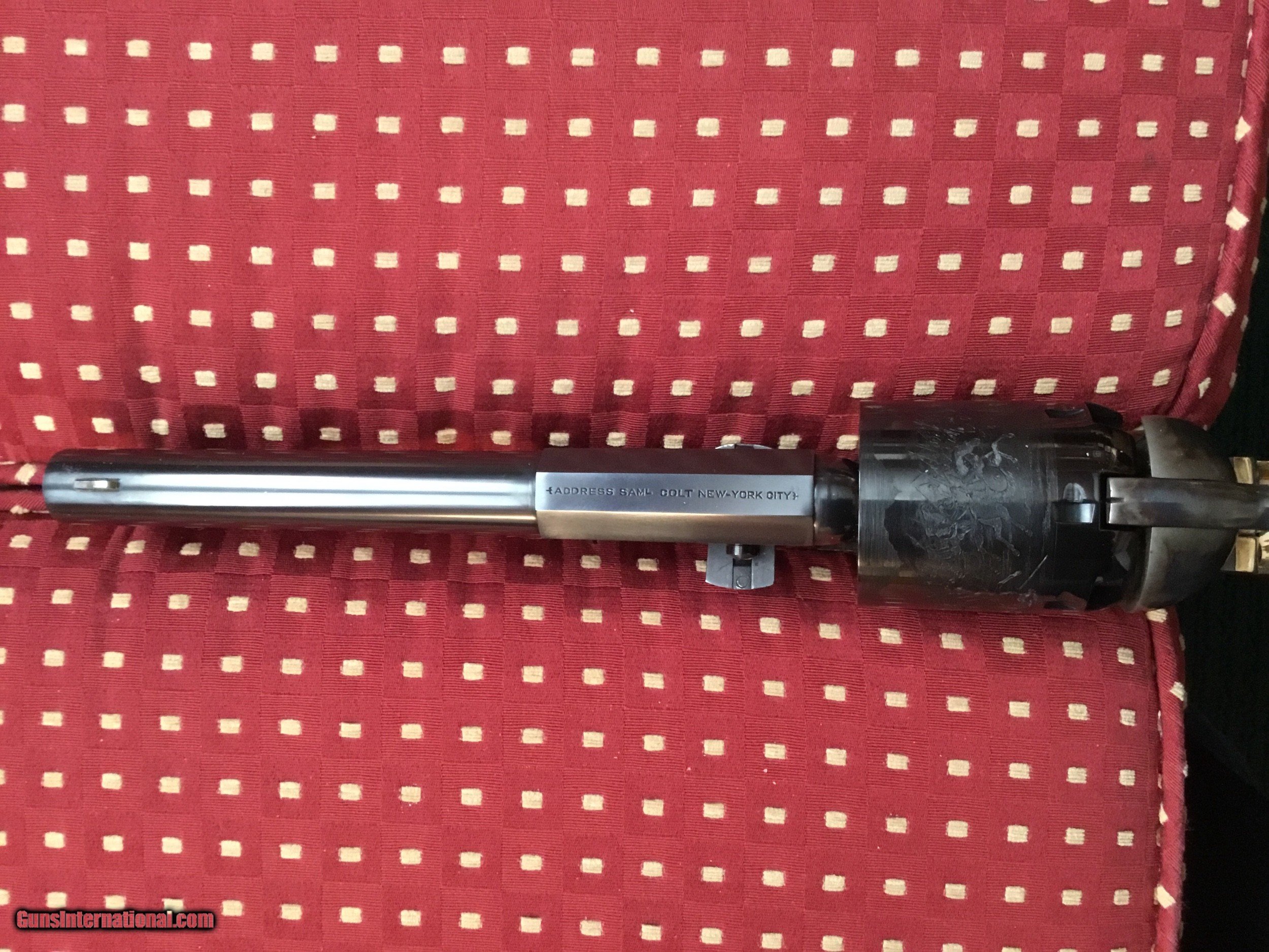 Description: Colt early “C” series (C-1770) 3rd Mdl Dragoon. These early (1974-1978) models have the more desirable bright bluing versus the later (1979-1982) version. Excellent, unfired and no cylinder drag line, in the original box with paper work. Must be 21 years or older by law to purchase. SOLD |