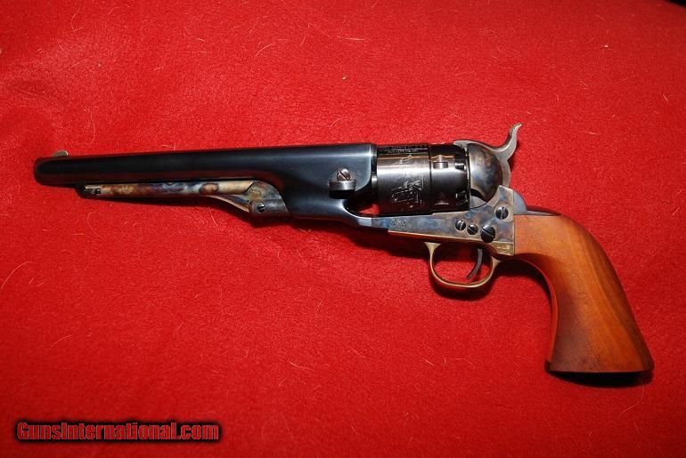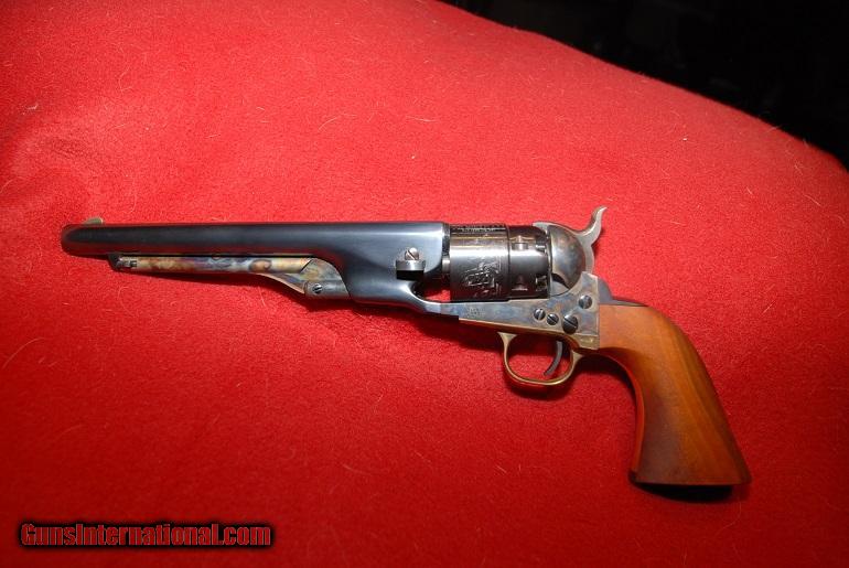 Description: SHIPPING INCLUDED, NO EXTRA CHARGE FOR CREDIT CARDS. We have here a new Colt Black Powder Series Model 1860 Army Percussion Revolver in .44 caliber. Revolver appears unfired with virtually no visible handling marks. Sorry but no box on this one. No FFL required. Shipping is direct to you. Personal and bank checks, money orders, credit cards, and PayPal are accepted. Electronic invoicing via email is used for credit cards and PayPal. SOLD |