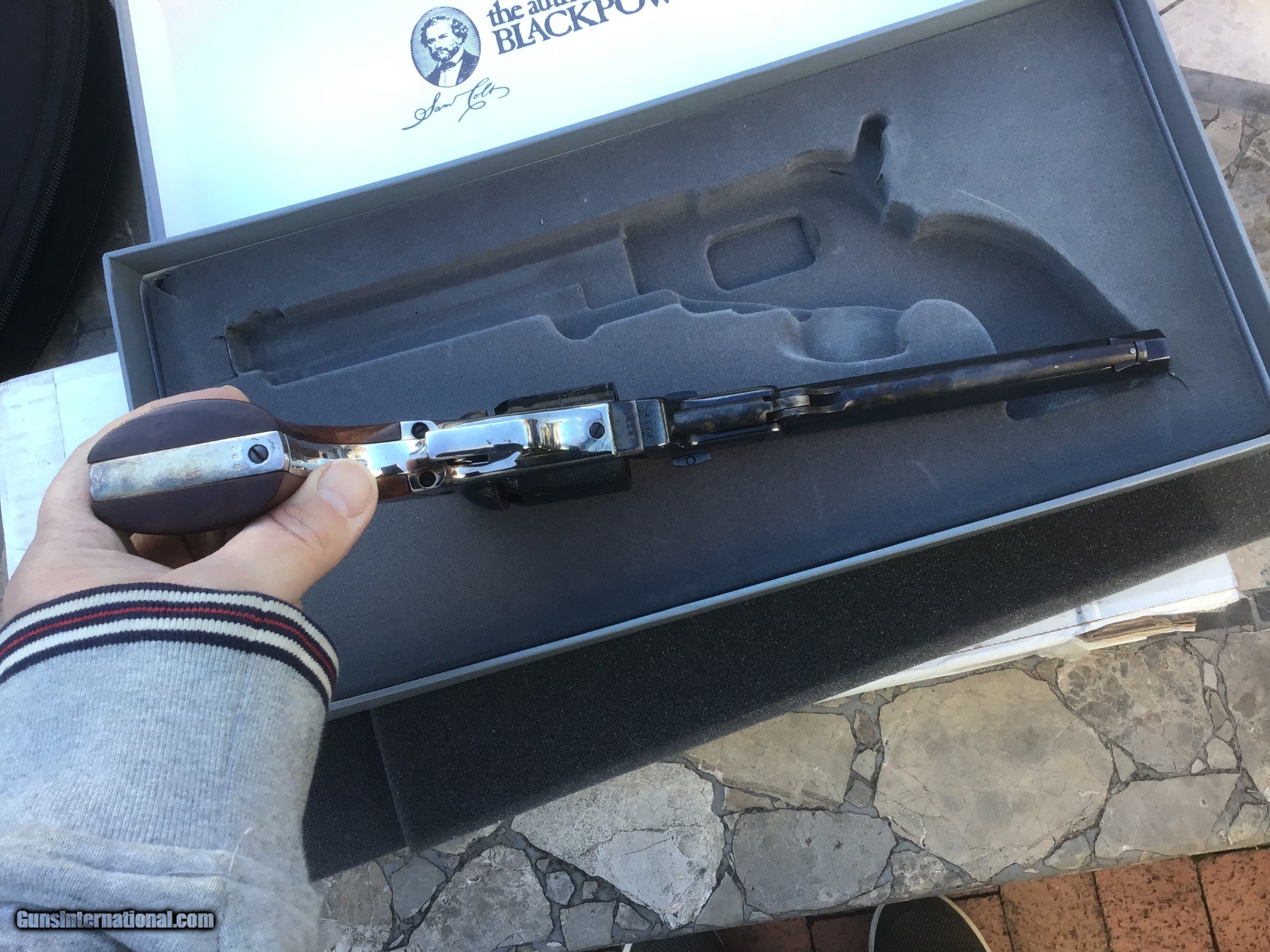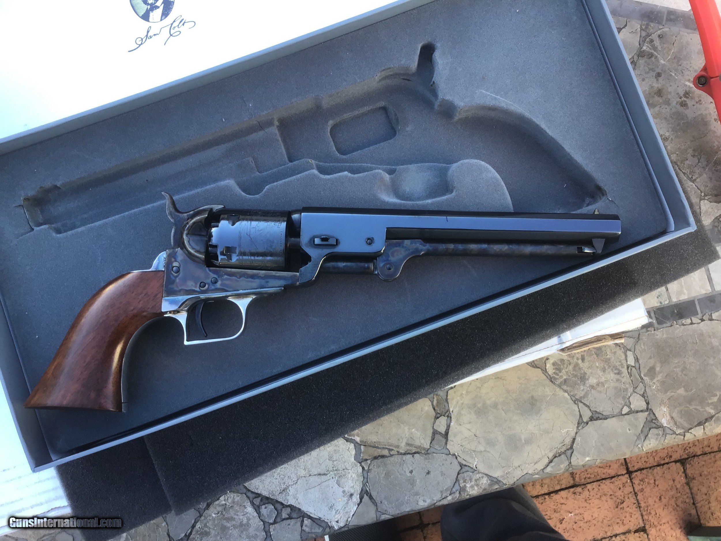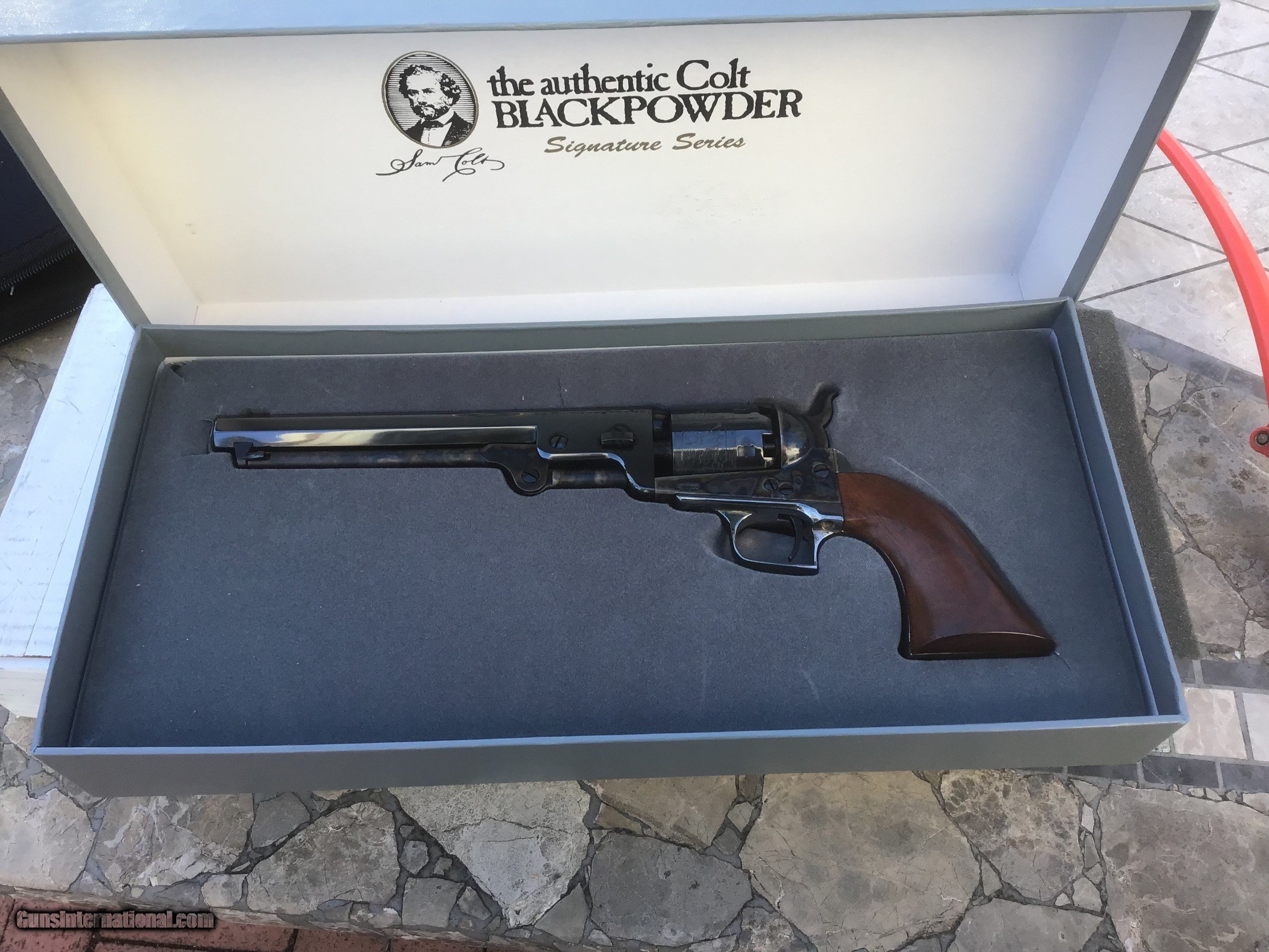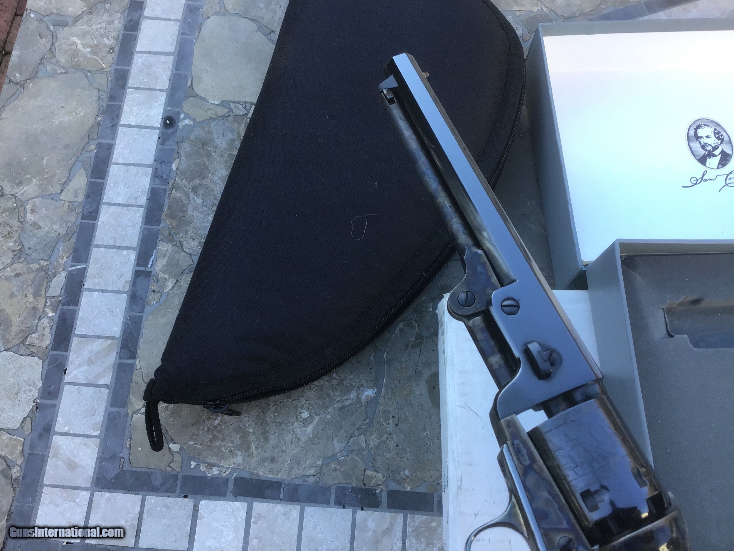 Description: Gun is on hold sale pending!!For Sale,,Colt blackpowder Signature series 3rd Gen,New in correct grey clam shell box,36 caliber,6 shot,7 1/2 barrel,silver plate back strap.beautifully made revolver.this is the pinnacle of modern blackpowder revolvers.sleek lines,great ergonomics,more than adequate stopping power for the time made this gun a no brainer for gunfighters like Wild Bill Hickok who carried a brace of them.the gun is new in box,unfired in 99.9% cond with no handling marks.except in cities and states where prohibited this gun can be shipped directly to your home.I accept U.S postal money orders as payment.serious inquires may call from 10am- 10pm,EST at 631-994-4188,ask for Joe.thank you! Please add $25.00 shipping,insurance. NO SALES TO CALIFORNIA or HI!!gun on hold sale pending!!! SOLD |