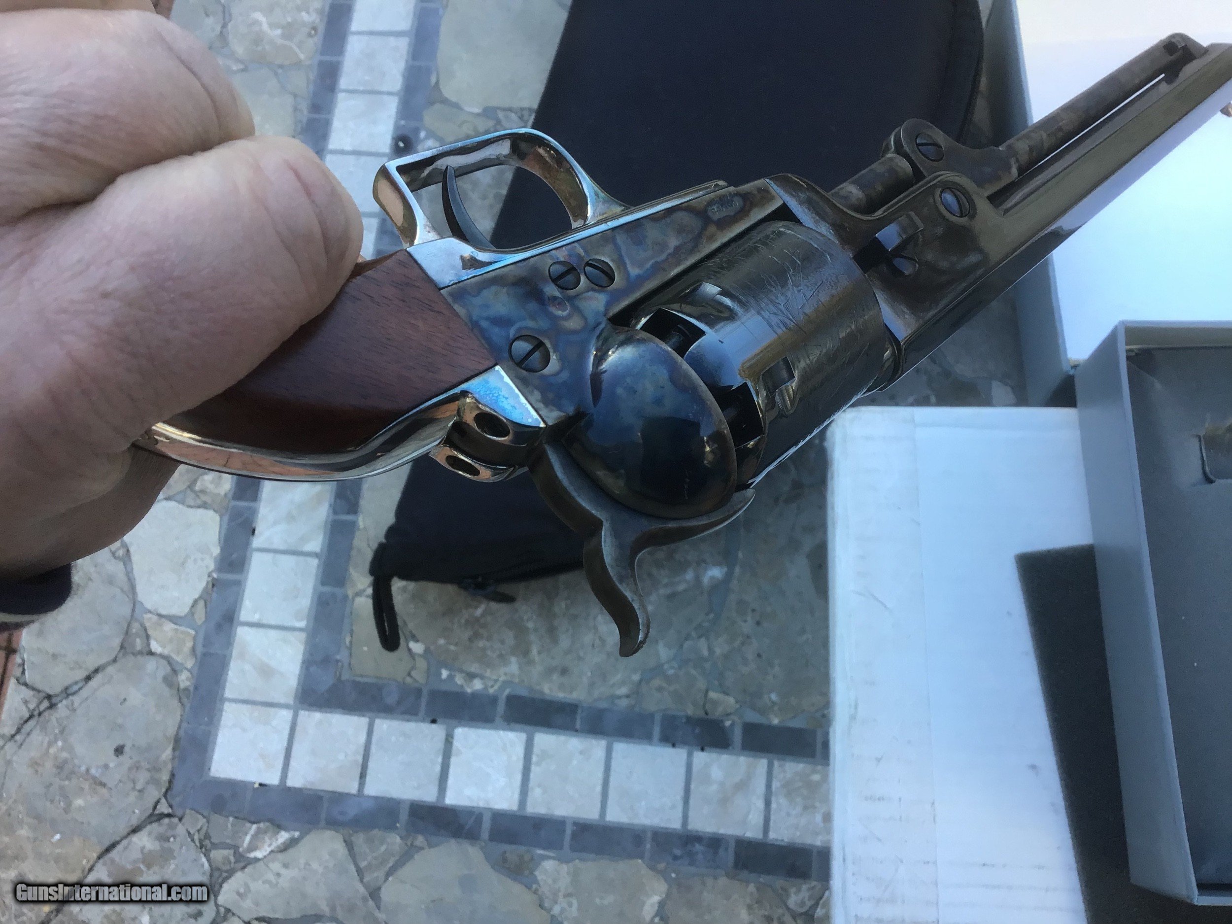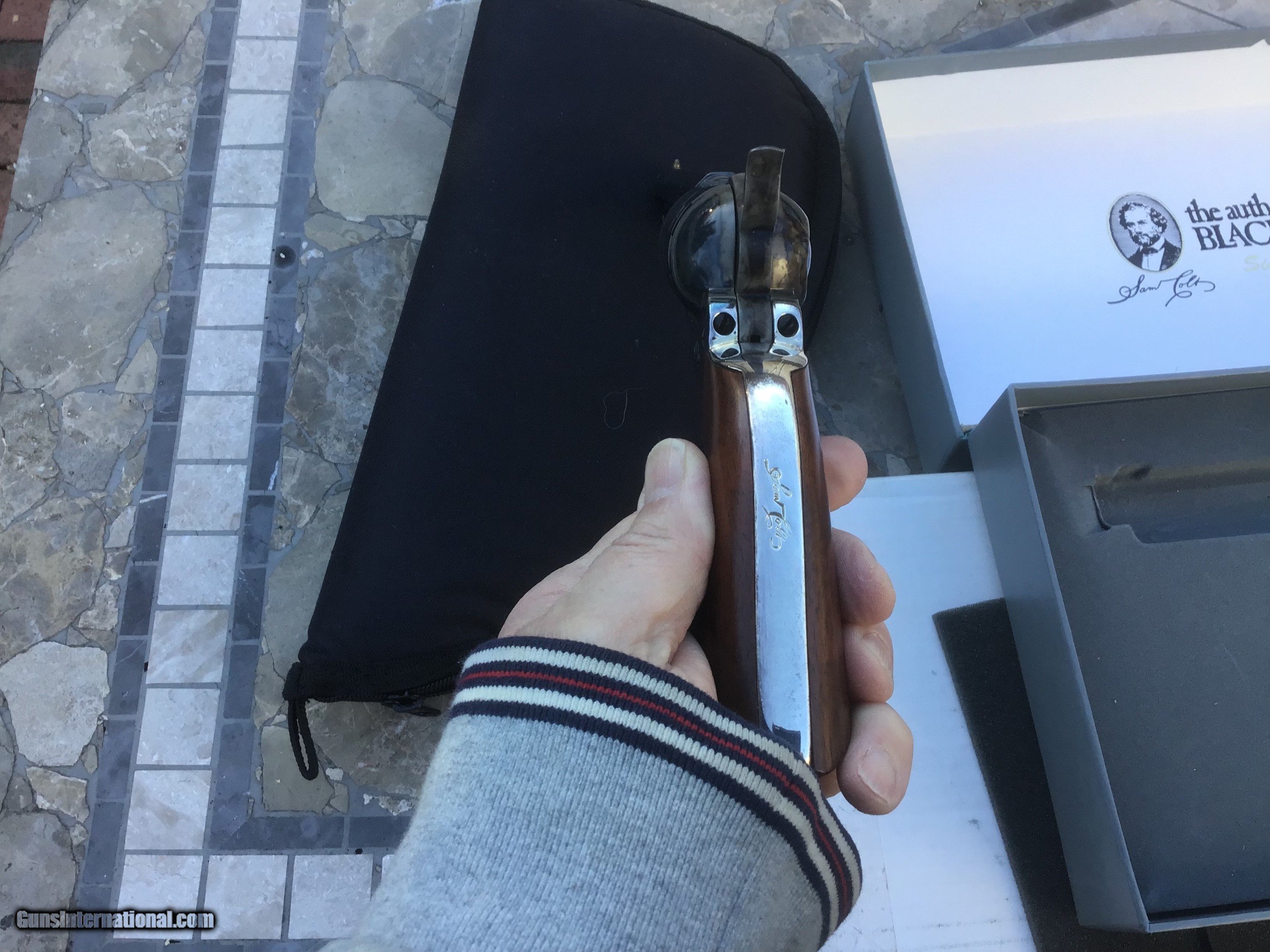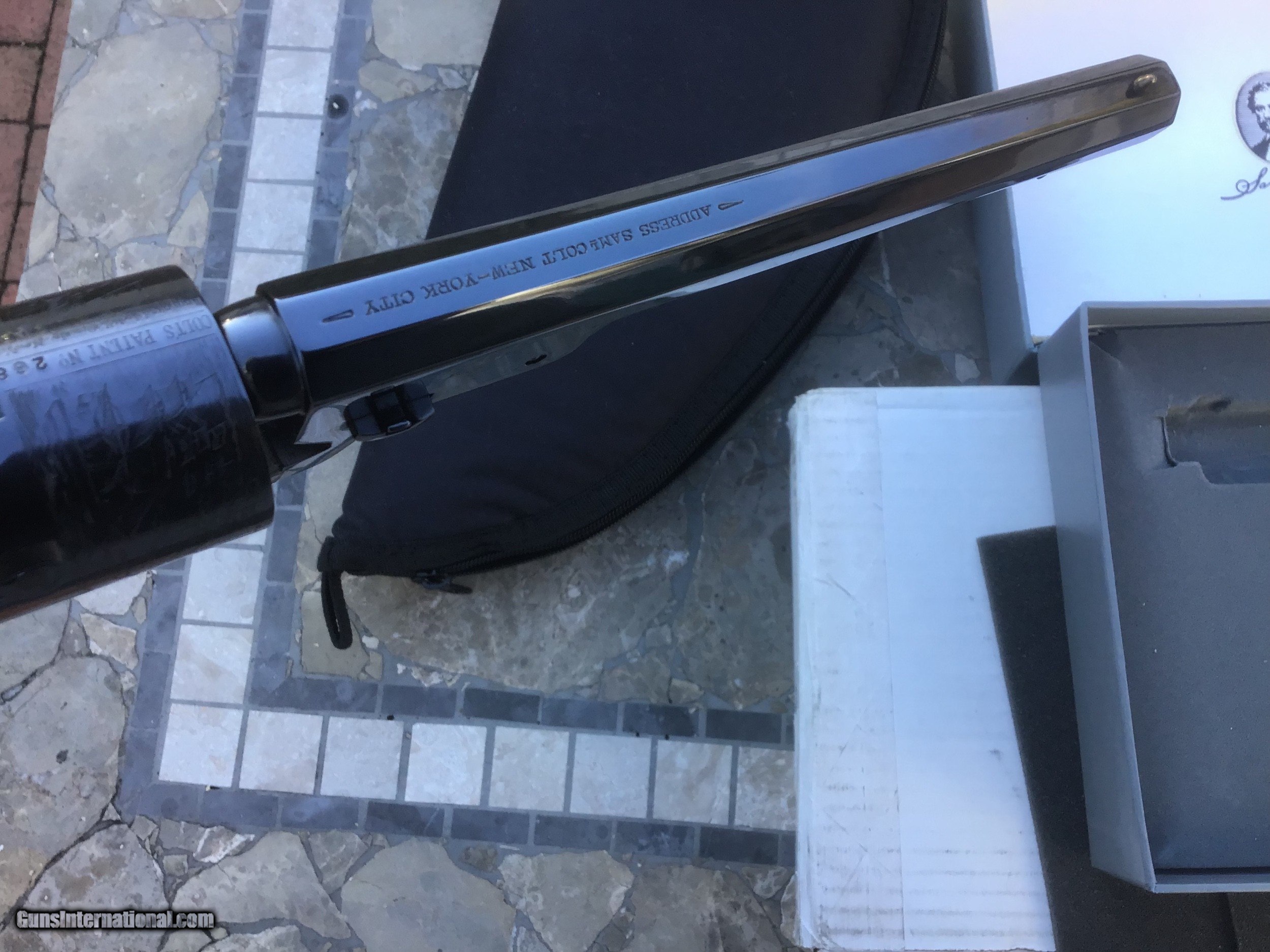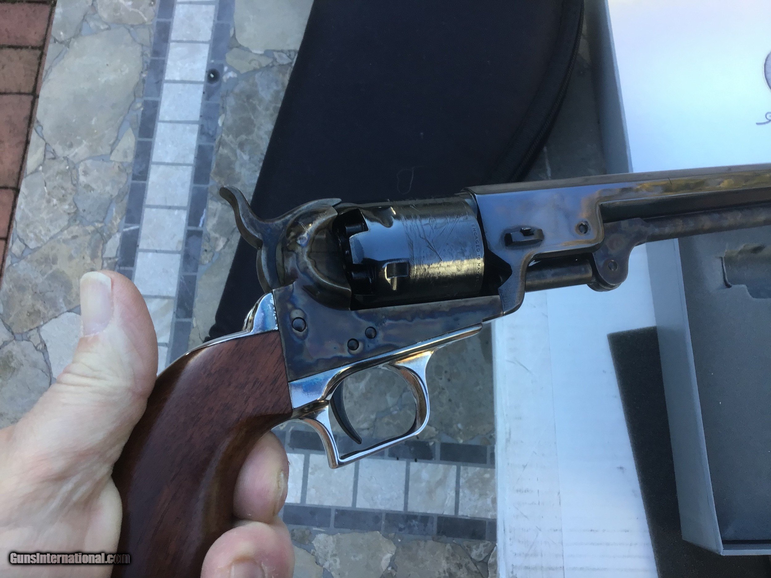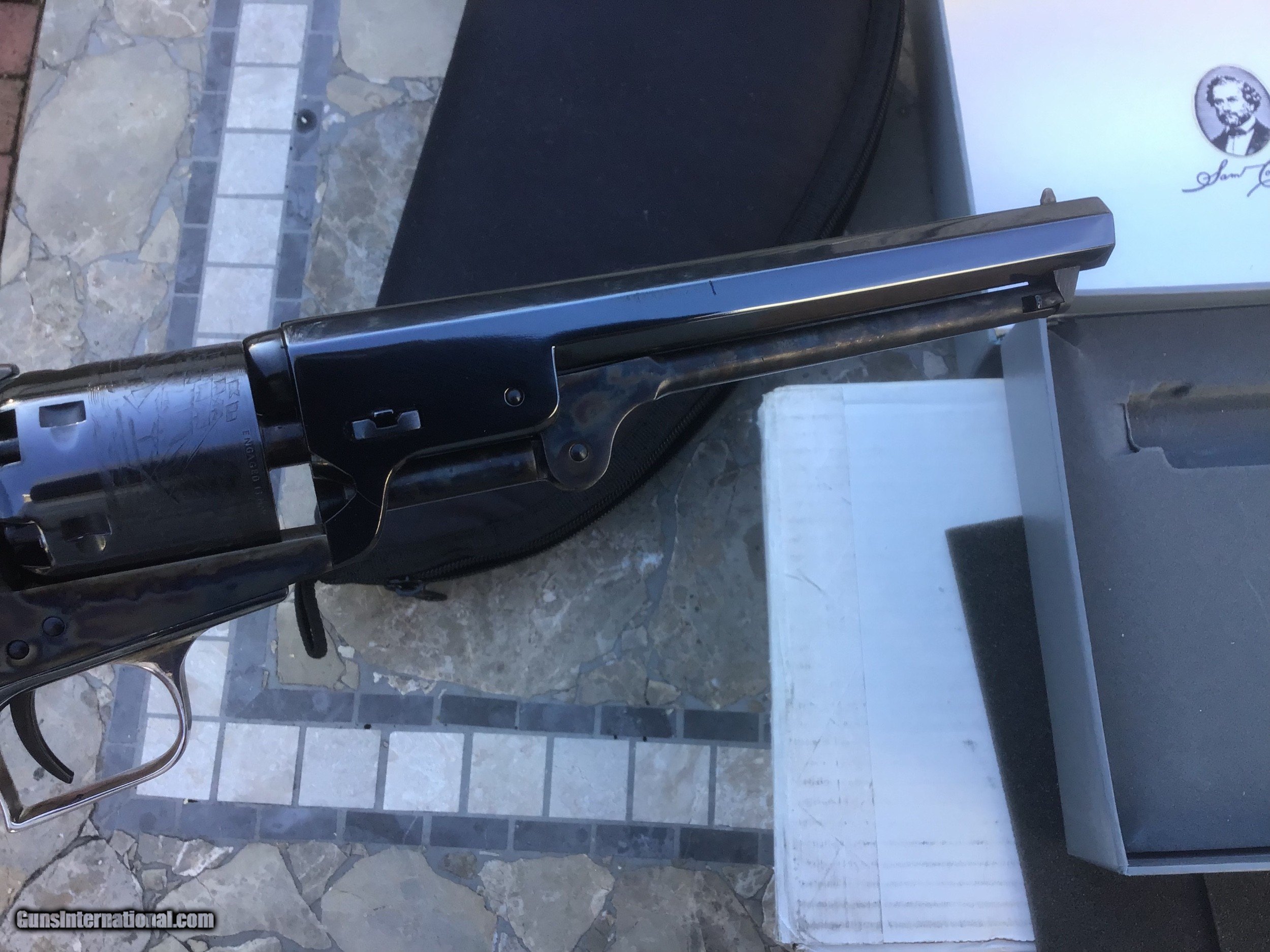 Description: Gun is on hold sale pending!!For Sale,,Colt blackpowder Signature series 3rd Gen,New in correct grey clam shell box,36 caliber,6 shot,7 1/2 barrel,silver plate back strap.beautifully made revolver.this is the pinnacle of modern blackpowder revolvers.sleek lines,great ergonomics,more than adequate stopping power for the time made this gun a no brainer for gunfighters like Wild Bill Hickok who carried a brace of them.the gun is new in box,unfired in 99.9% cond with no handling marks.except in cities and states where prohibited this gun can be shipped directly to your home.I accept U.S postal money orders as payment.serious inquires may call from 10am- 10pm,EST at 631-994-4188,ask for Joe.thank you! Please add $25.00 shipping,insurance. NO SALES TO CALIFORNIA or HI!!gun on hold sale pending!!! SOLD |