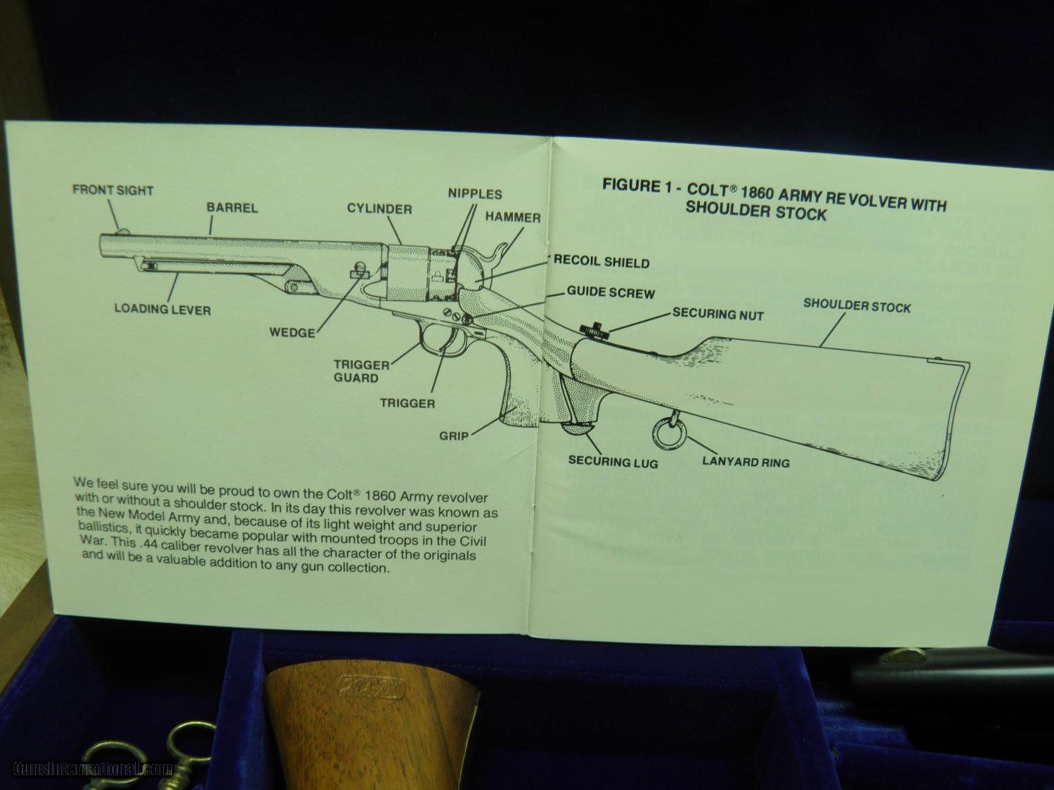 COLT US CAVALRY COMMEMORATIVE SET, TWO COLT MODEL 1860 REVOLVERS, SHOULDER STOCK 100% NEW IN FACTORY WALNUT CASE!