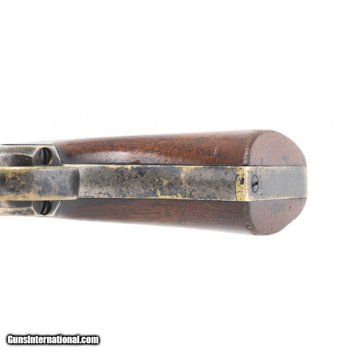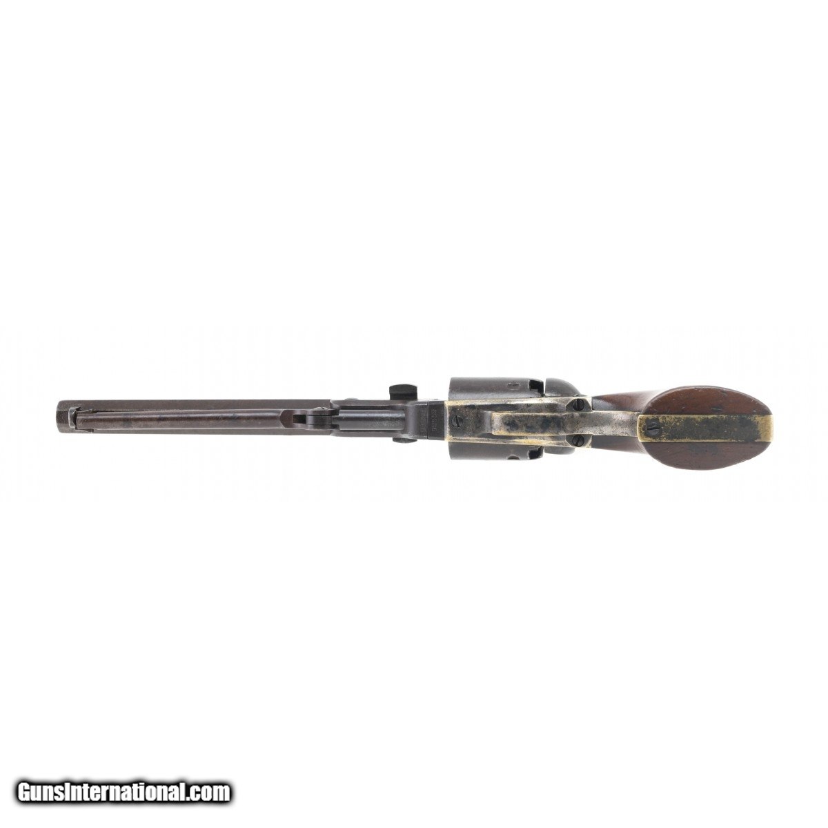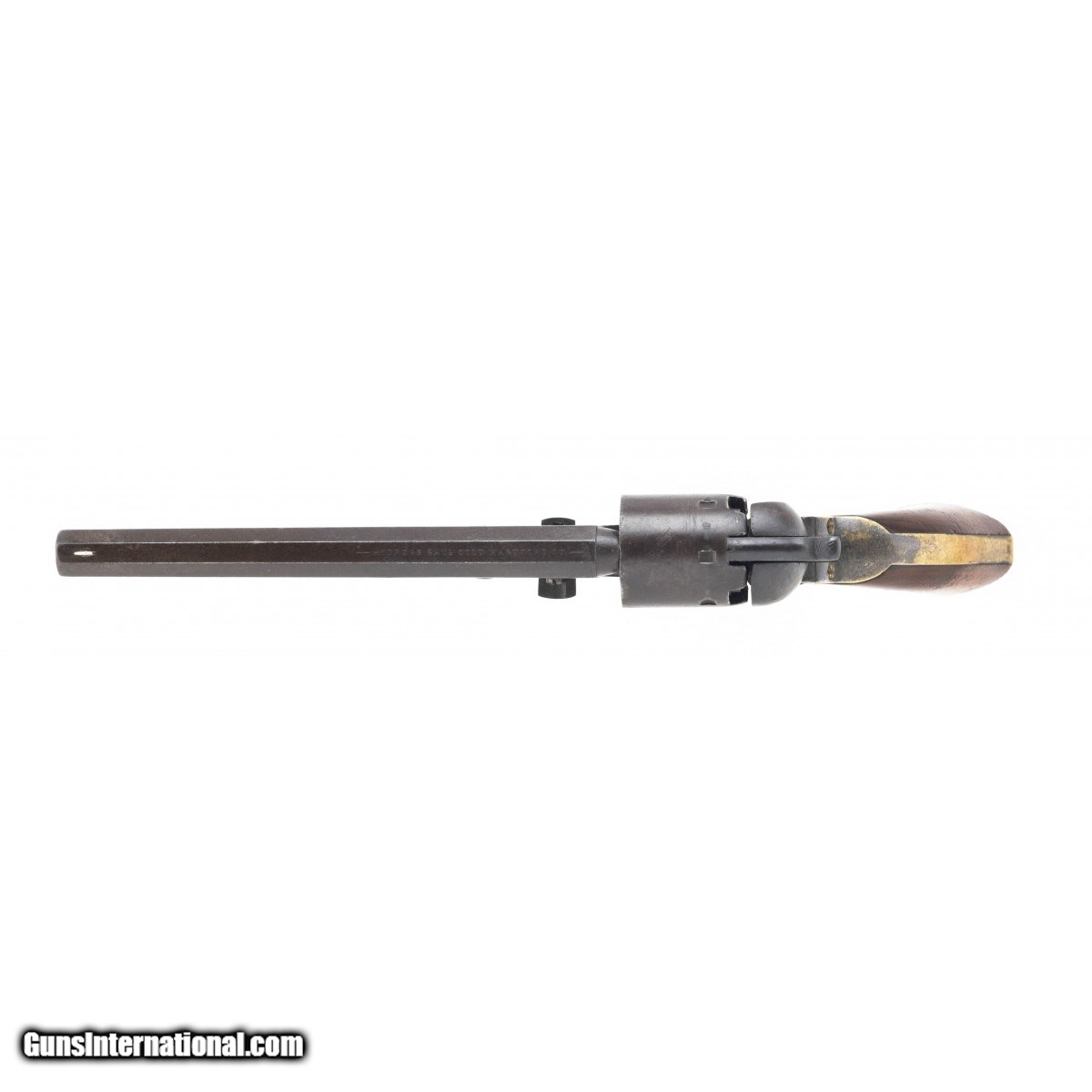 Description: " Hartford address marked barrel. Manufactured in 1859. Bore is fair with worn rifling. Serial numbers are matching. Action works properly. Grips are good with light to medium handling. Grip straps have approximately 25% of the old tarnished silver plating. Cylinder scene is easily visible. Metal has an even brown patina. SOLD Antique: Yes |
