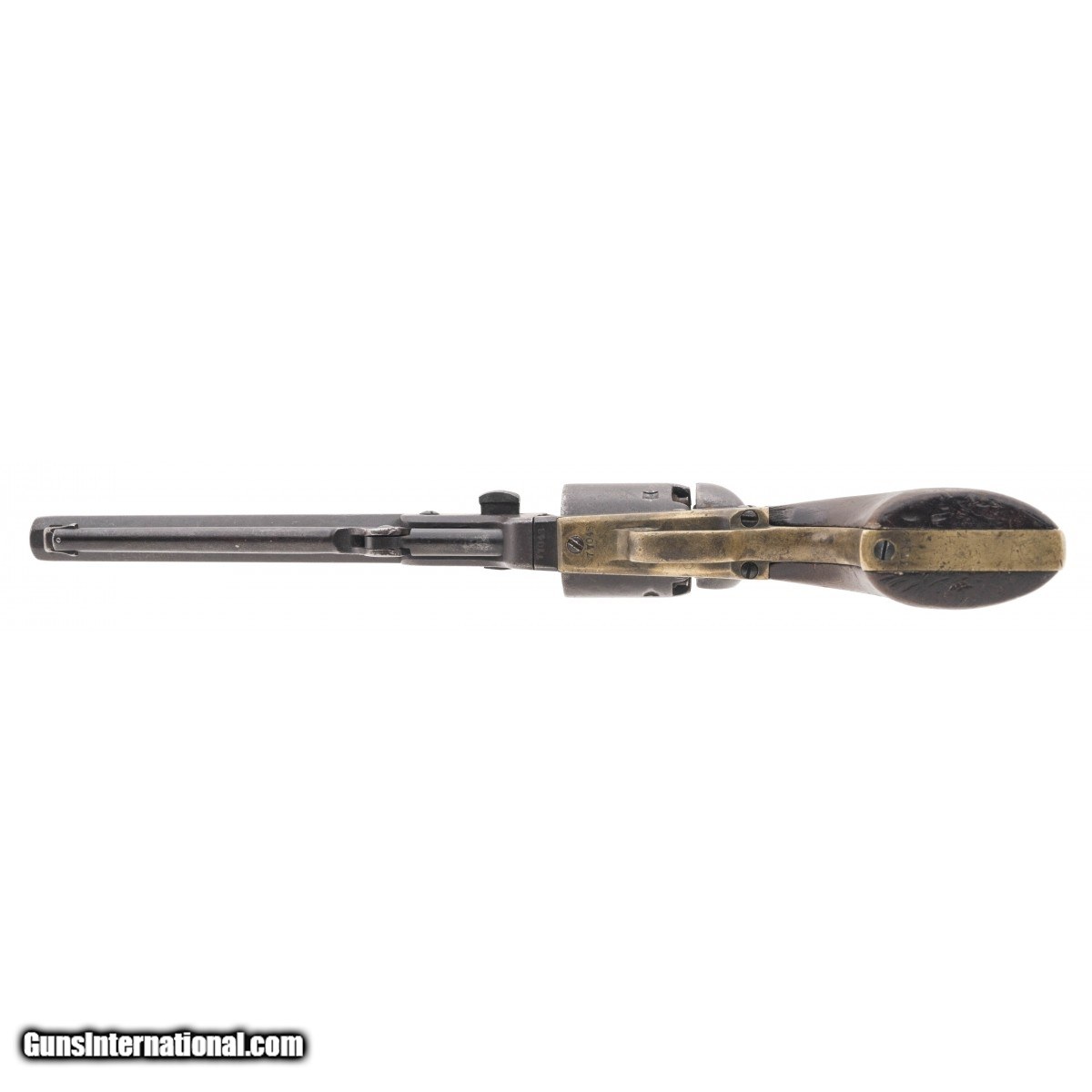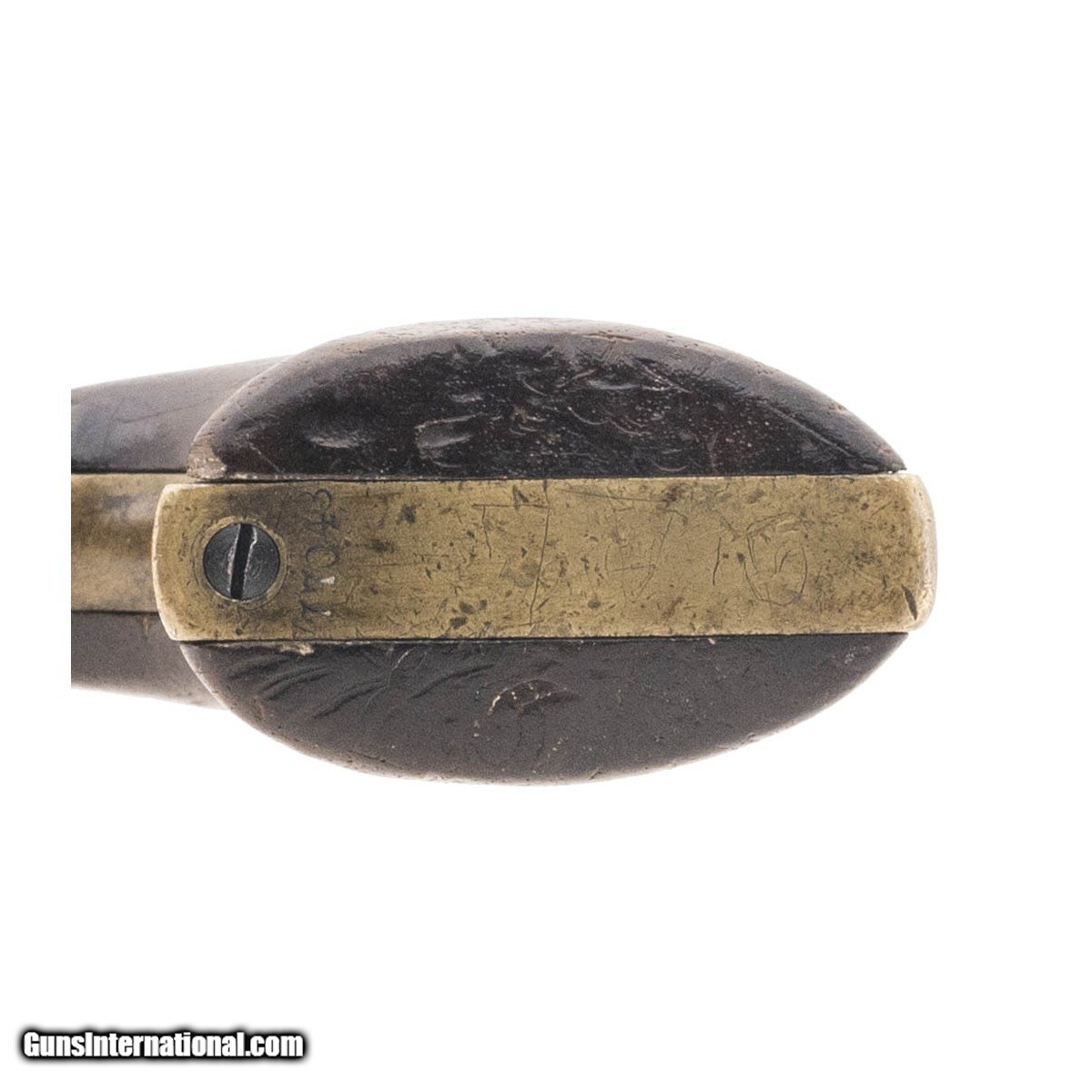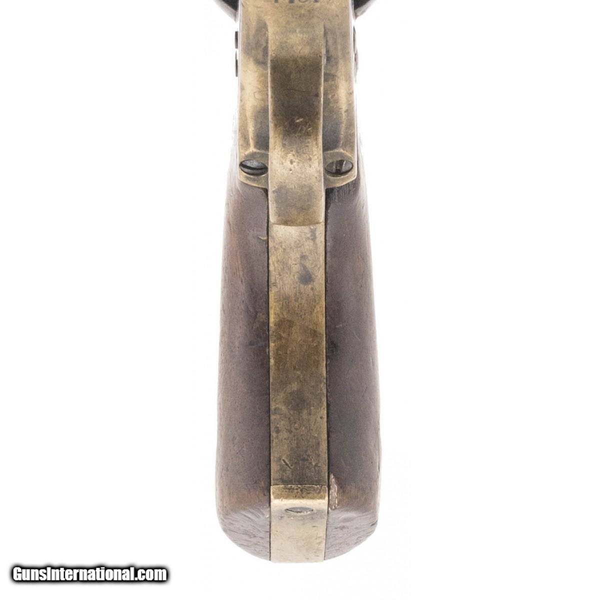 Description: "Serial number 77043, just outside of a martial range. Small guard navy with a dark brown patina. Grips have a hole through them presumably with for a lanyard. Action indexes and locks up tight. SOLD Antique: Yes |