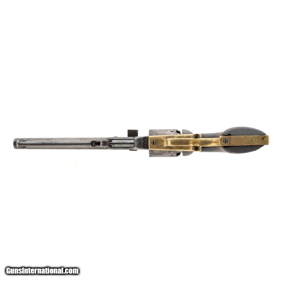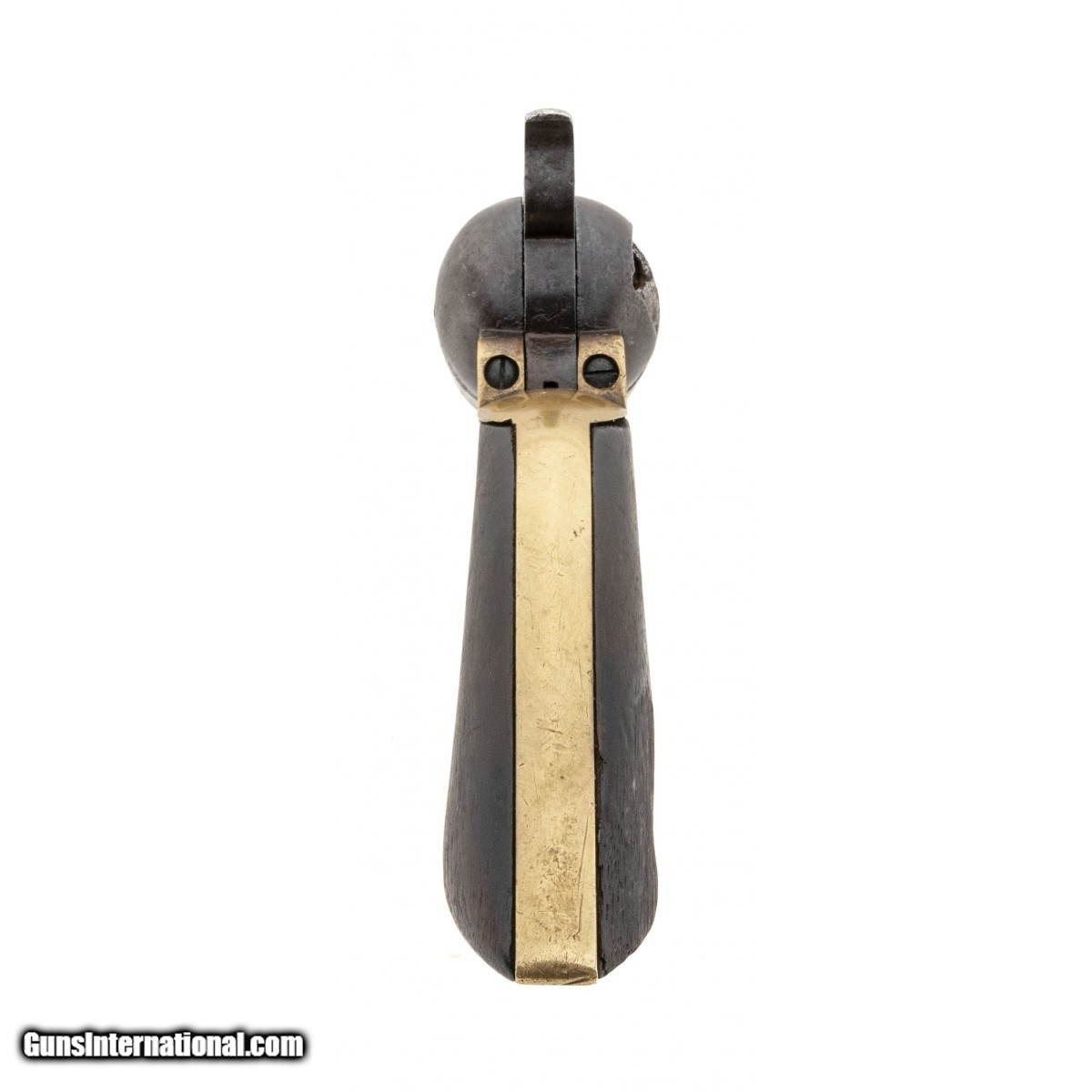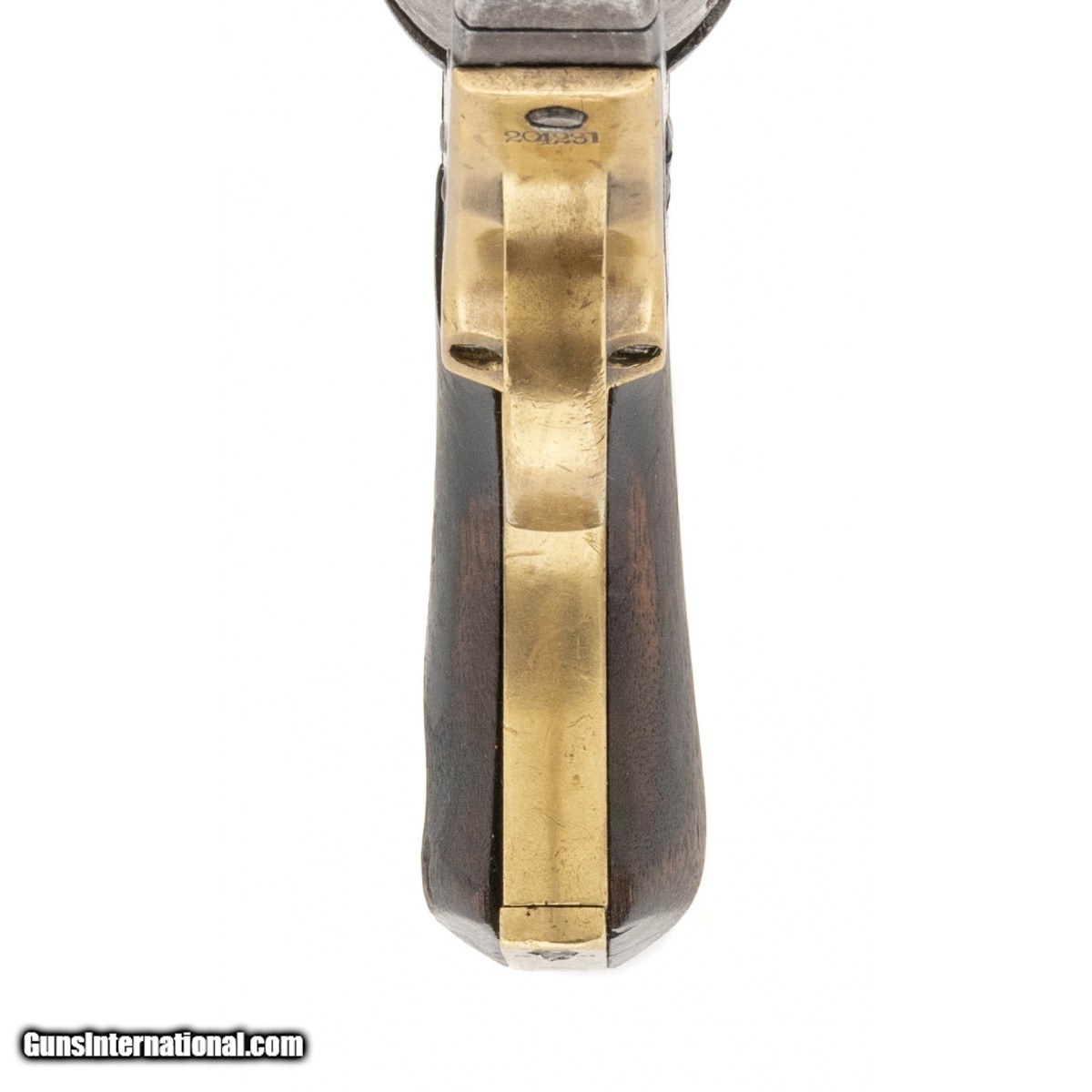 Description: "Serial number 204231. Made in 1868. 36 caliber with a 7 ½" barrel. This gun has a mottled gray patina with scattered pitting. This gun has visible British proofs on the cylinder. SOLD Antique: Yes |