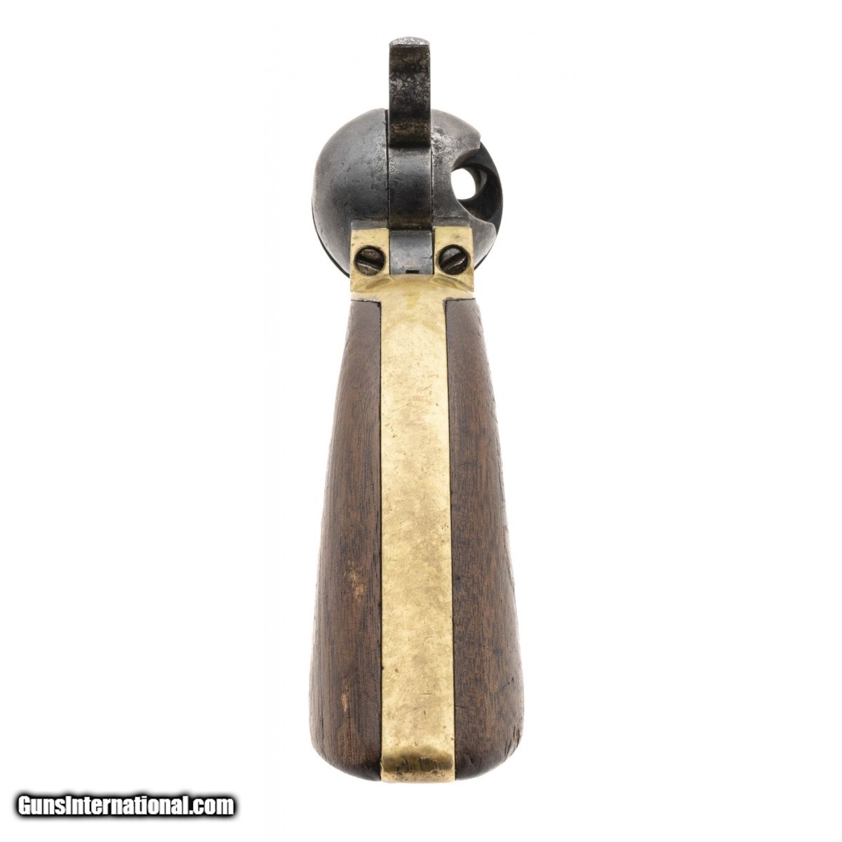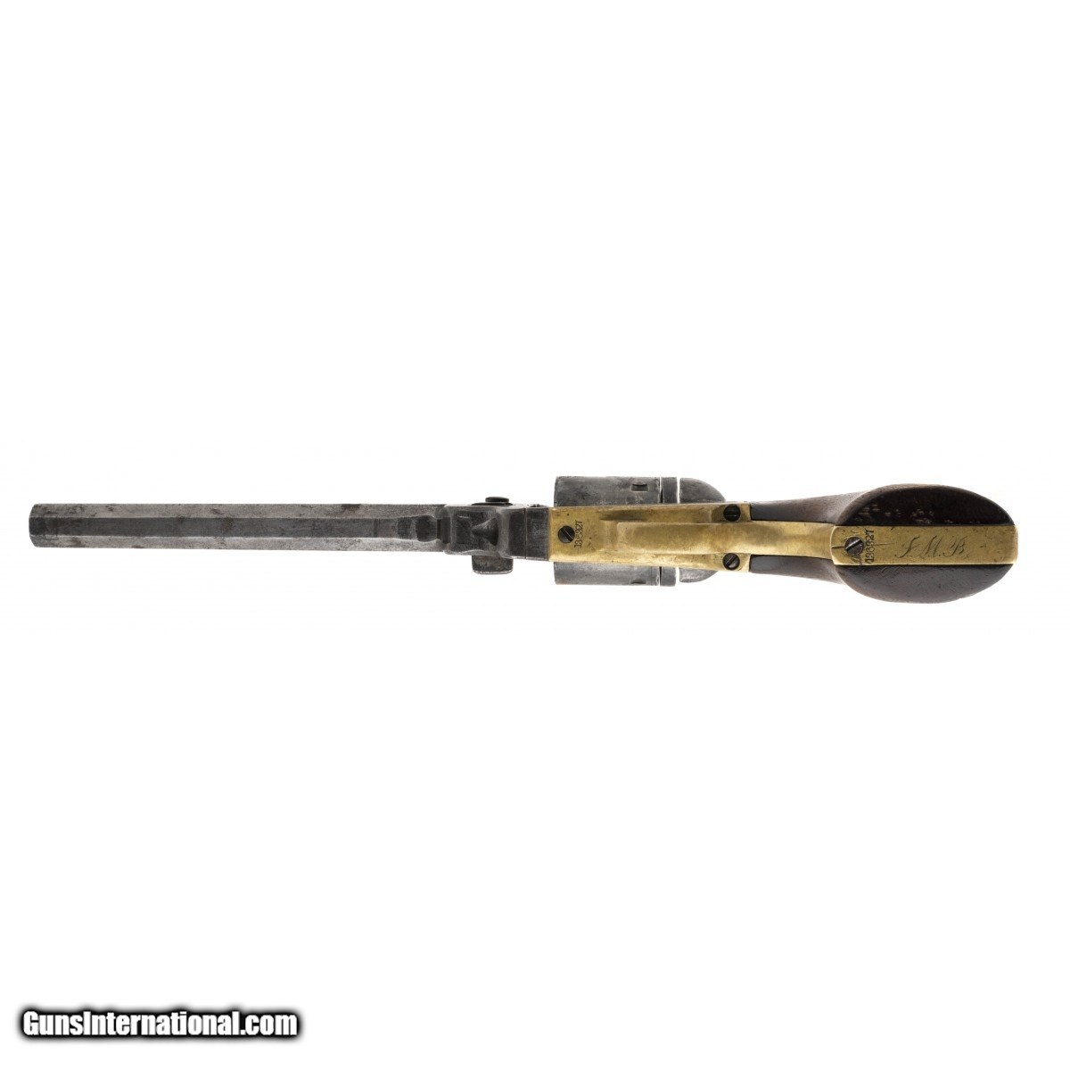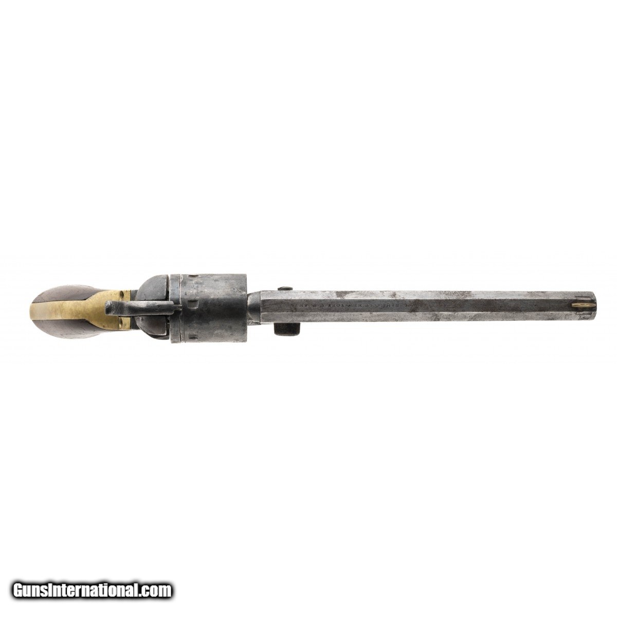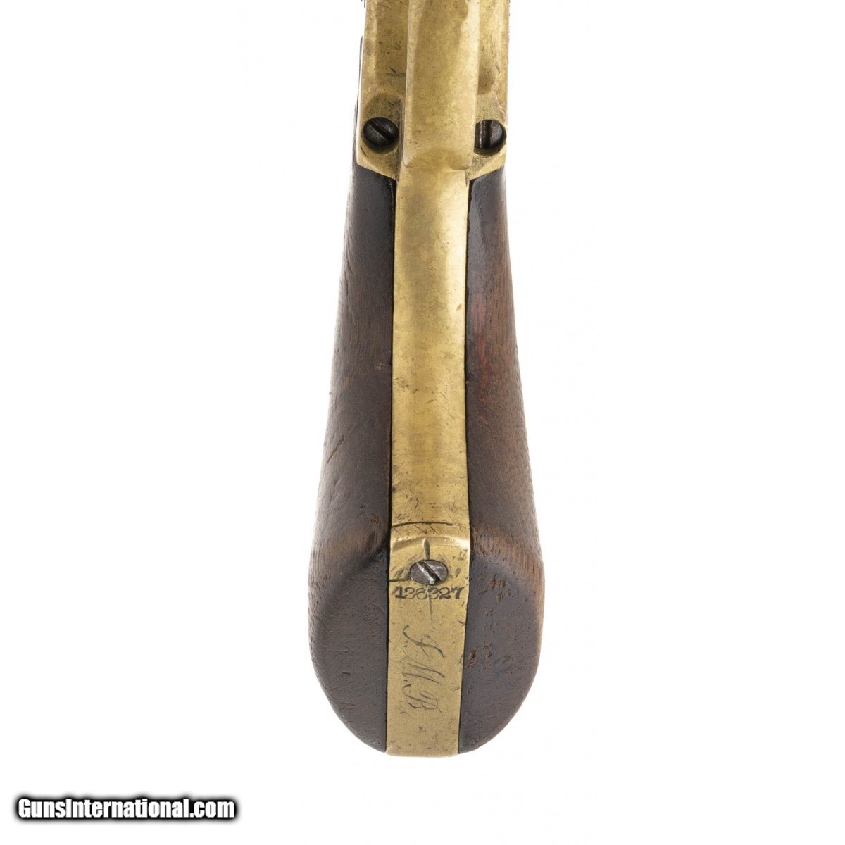 Description: "Serial number 136327. Made in 1863. 36 caliber with a 7 ½" barrel. Nice sharp gun with an even brown patina. The grips are very good. The butt has the initials “F. M. B." This gun comes with a carved slim jim holster. SOLD Antique: Yes |