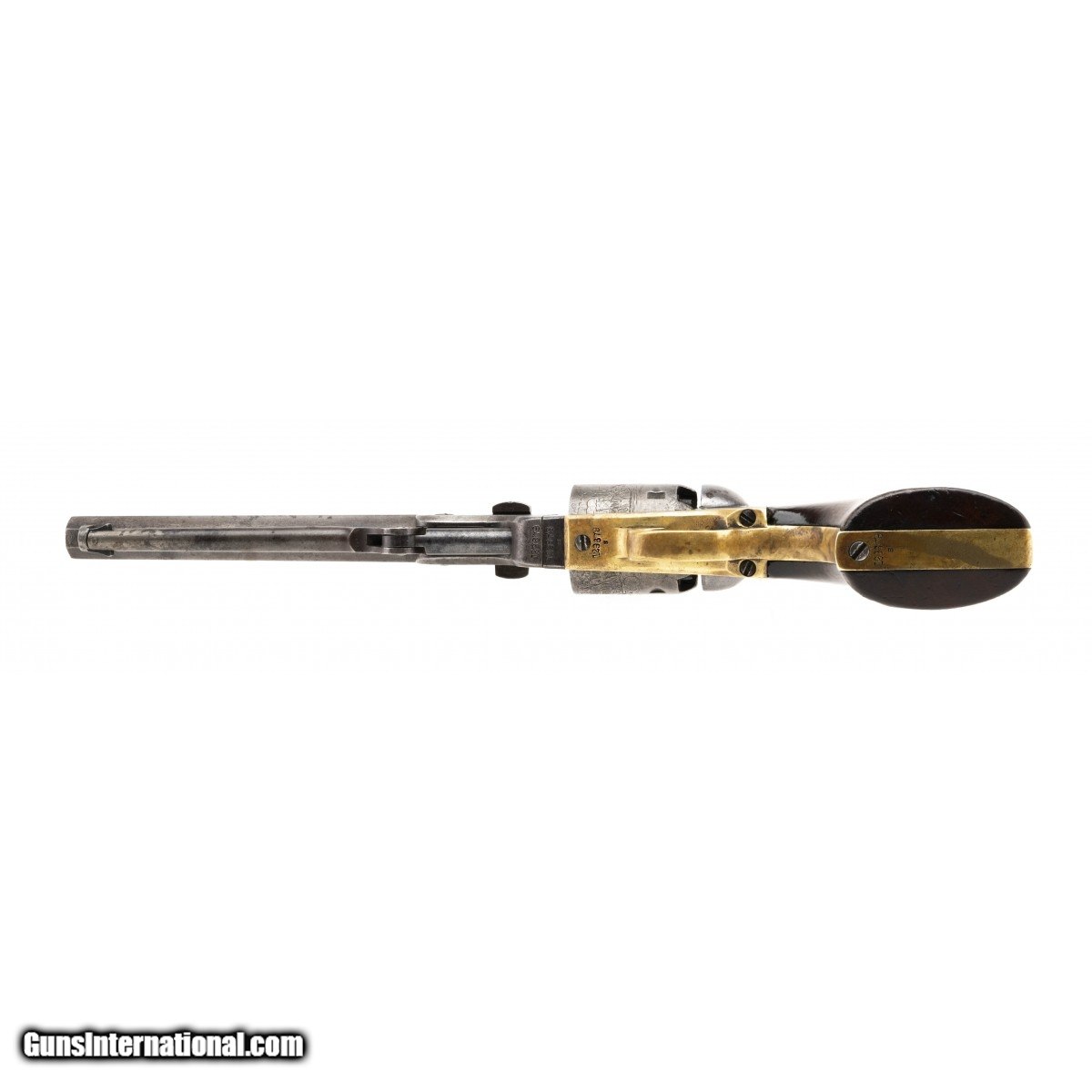Description: " Civil War period Colt Navy with a 7.5"" octagonal barrel. Made in 1862. The bore is very good with very good rifling. All numbers are matching. The actions work perfectly. Barrel address is clear. The revolver has an overall gray patina. The grips are vey good with and old varnish. The front sight is an older replacement. The cylinder is a replacement or a re-rolled cylinder. The serial numbers on the cylinder match the others and has similar patina to the rest of the revolver. The cylinder scene is the correct ""naval engagement"" scene and is clear. SOLD Antique: Yes |