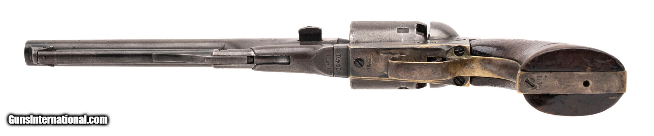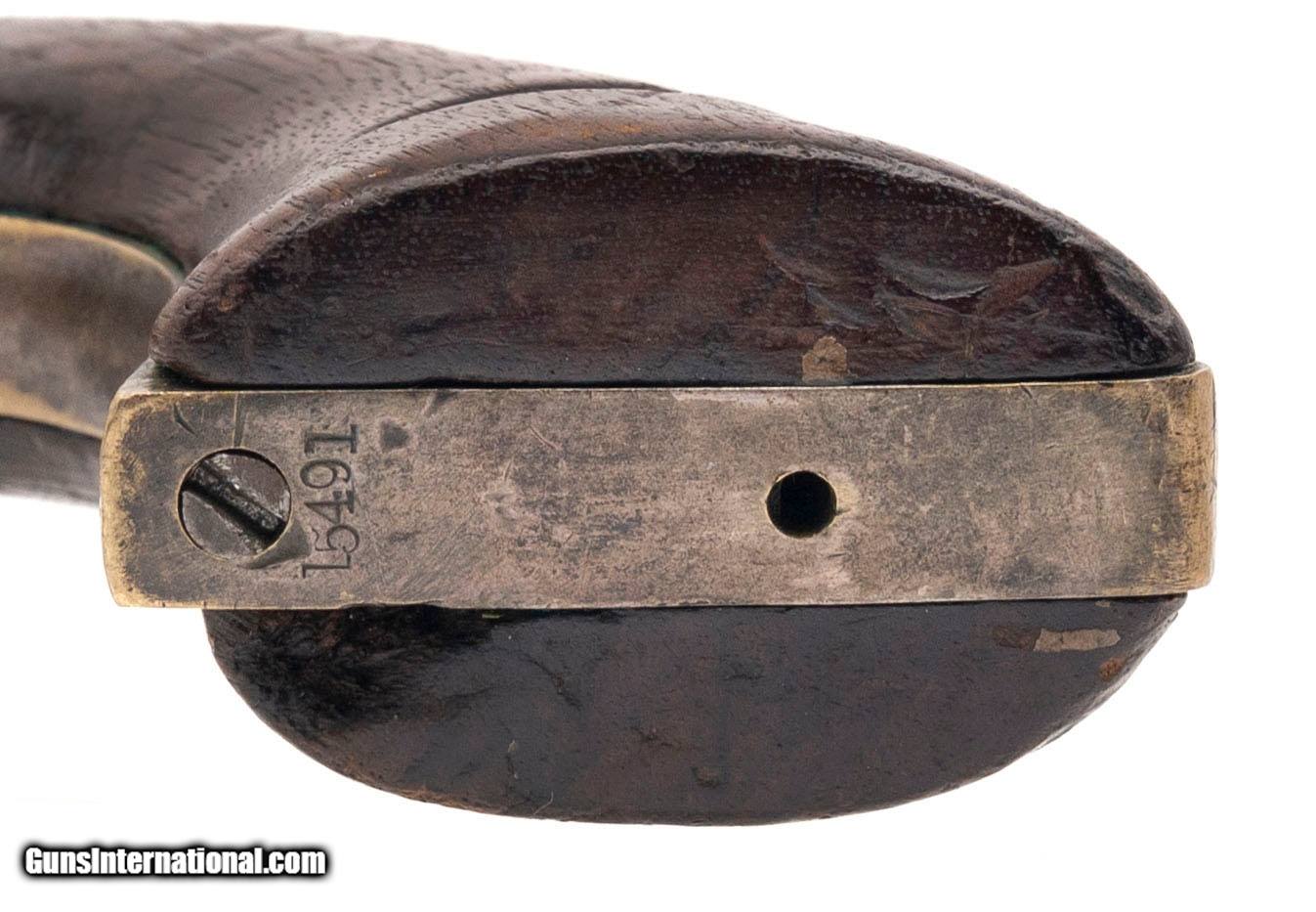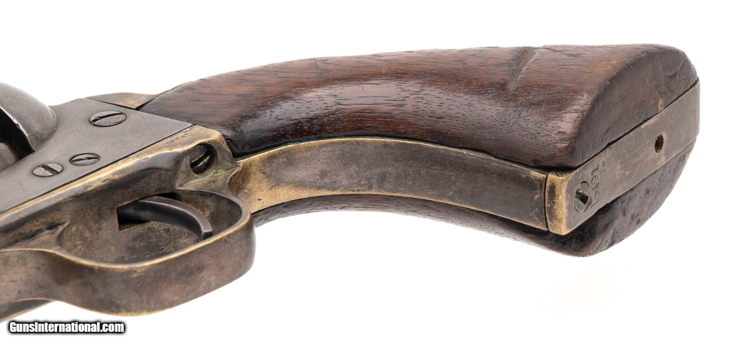 Description: "Serial number 15491. Made in 1863. 36 caliber with a 7.5" barrel. This gun has a dark brown to gray patina. All numbers are matching. The back strap and the butt have holes added probably for a shoulder stock of sorts. The grips have a notch on each side. Antique: Yes Price: $1,895.00 Contact Seller |