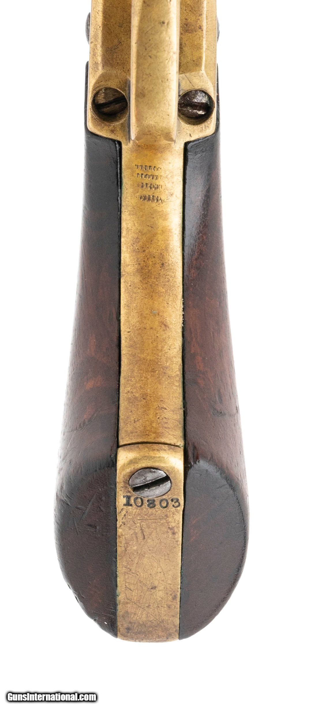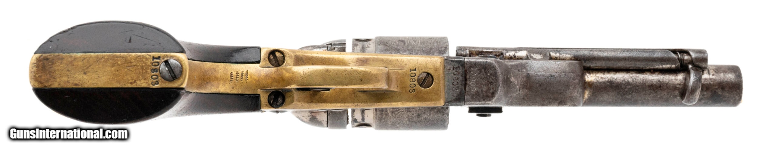 Description: "Serial number 10803. Made circa 1870s. 38 caliber with a 4" barrel. This gun has approximately 20% of the nickel finish. Traces of the cylinder scene are visible. The grips are very good. The firing pin has been modified from a rim fire caliber to a centerfire SOLD Antique: Yes |
