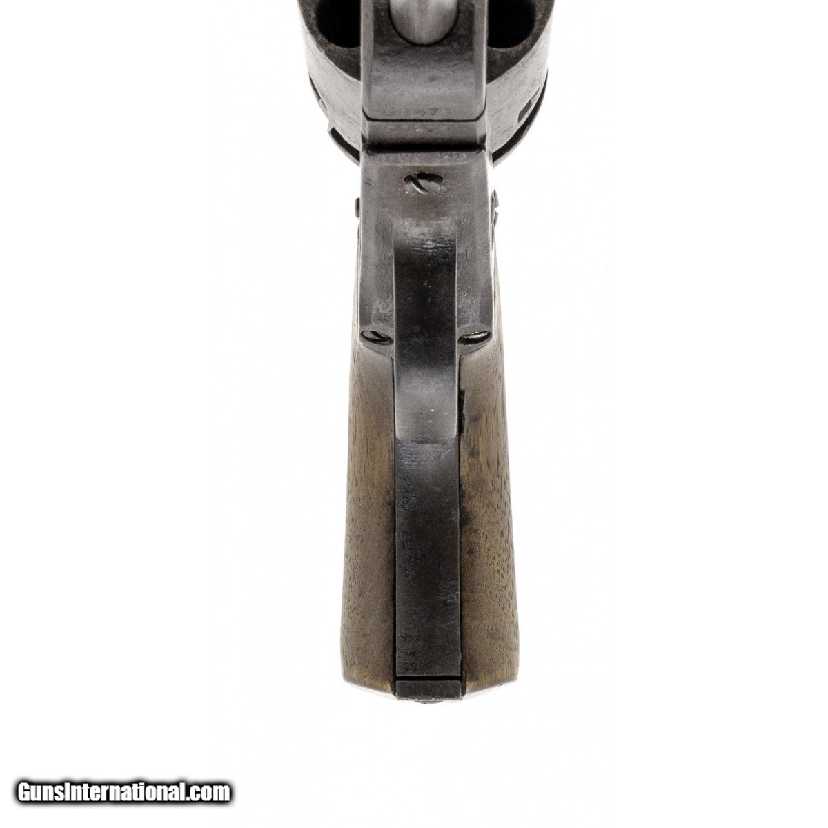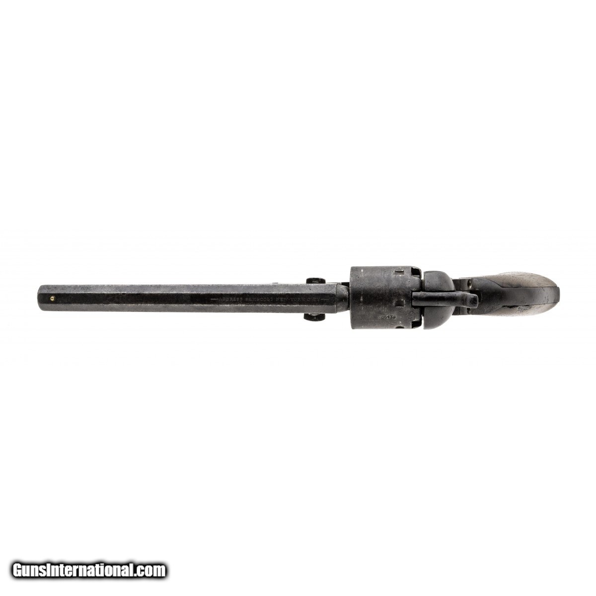 Description: "Serial number 56475. Made in 1856. 36 caliber with a 7 ½" barrel. This is a scarce gun with iron trigger guard and backstrap. This is probably an overrun from a Martial contract since this gun falls right in the martial range. Action works well. Markings are on legible and clear. Gun is all matching. SOLD Antique: Yes |