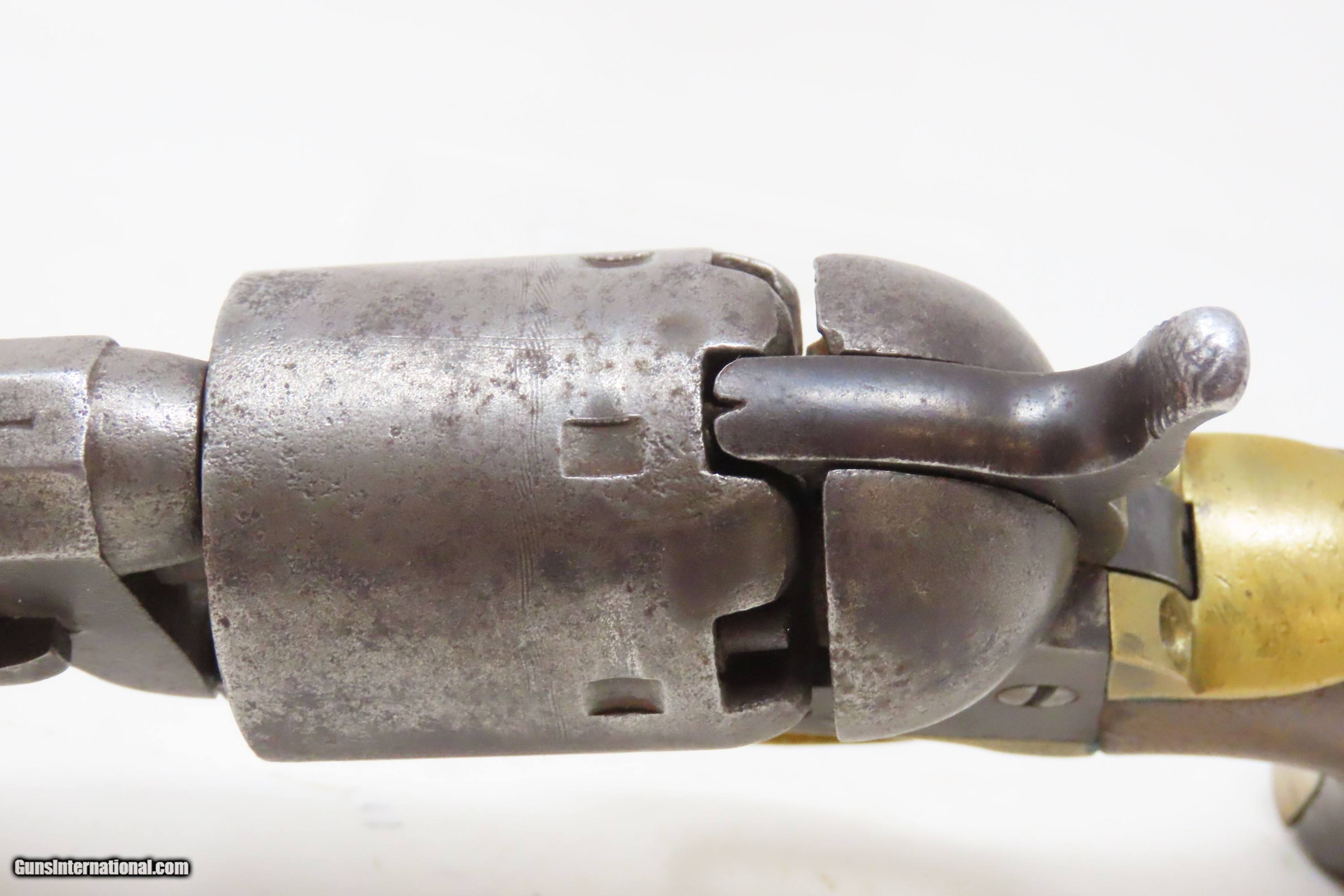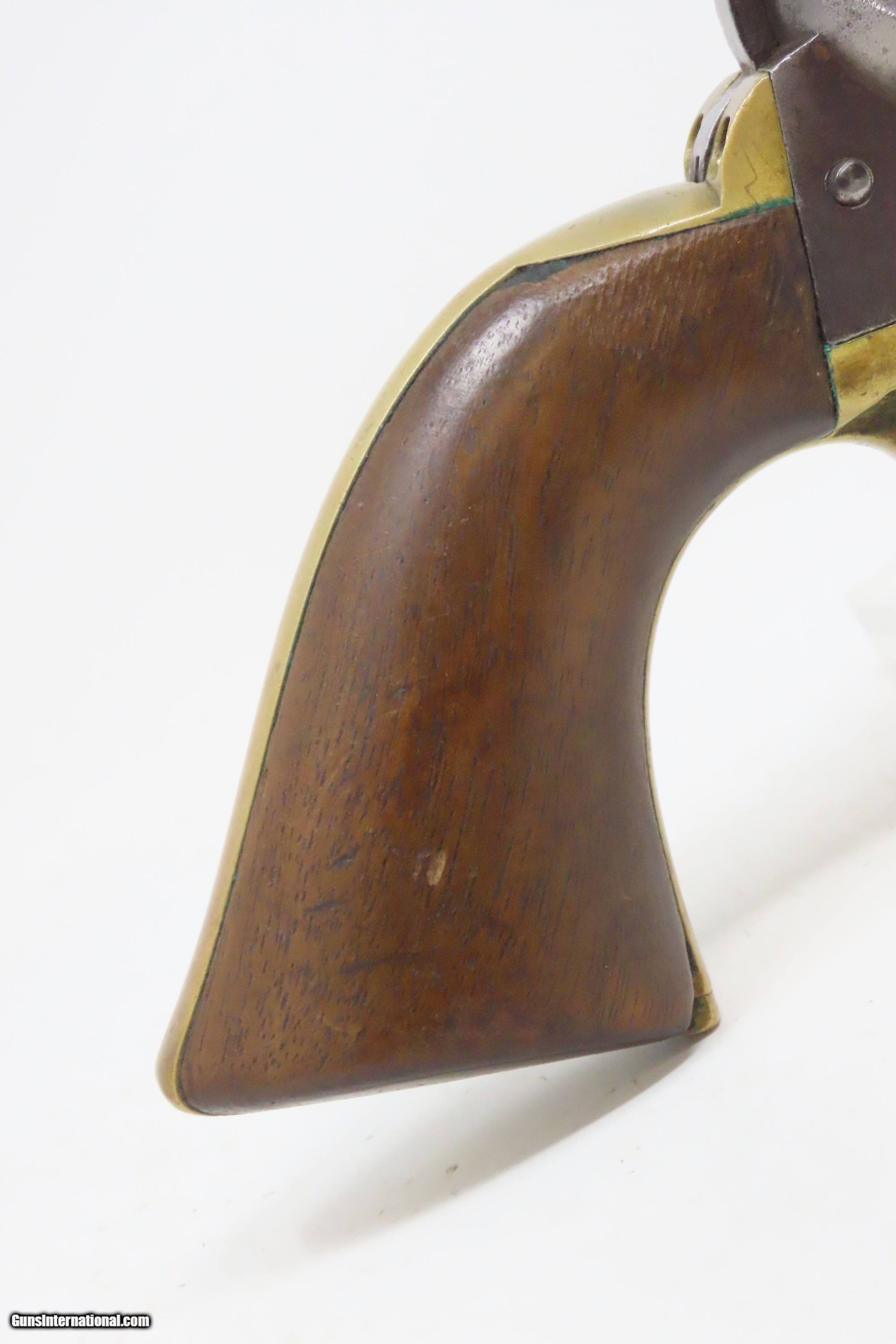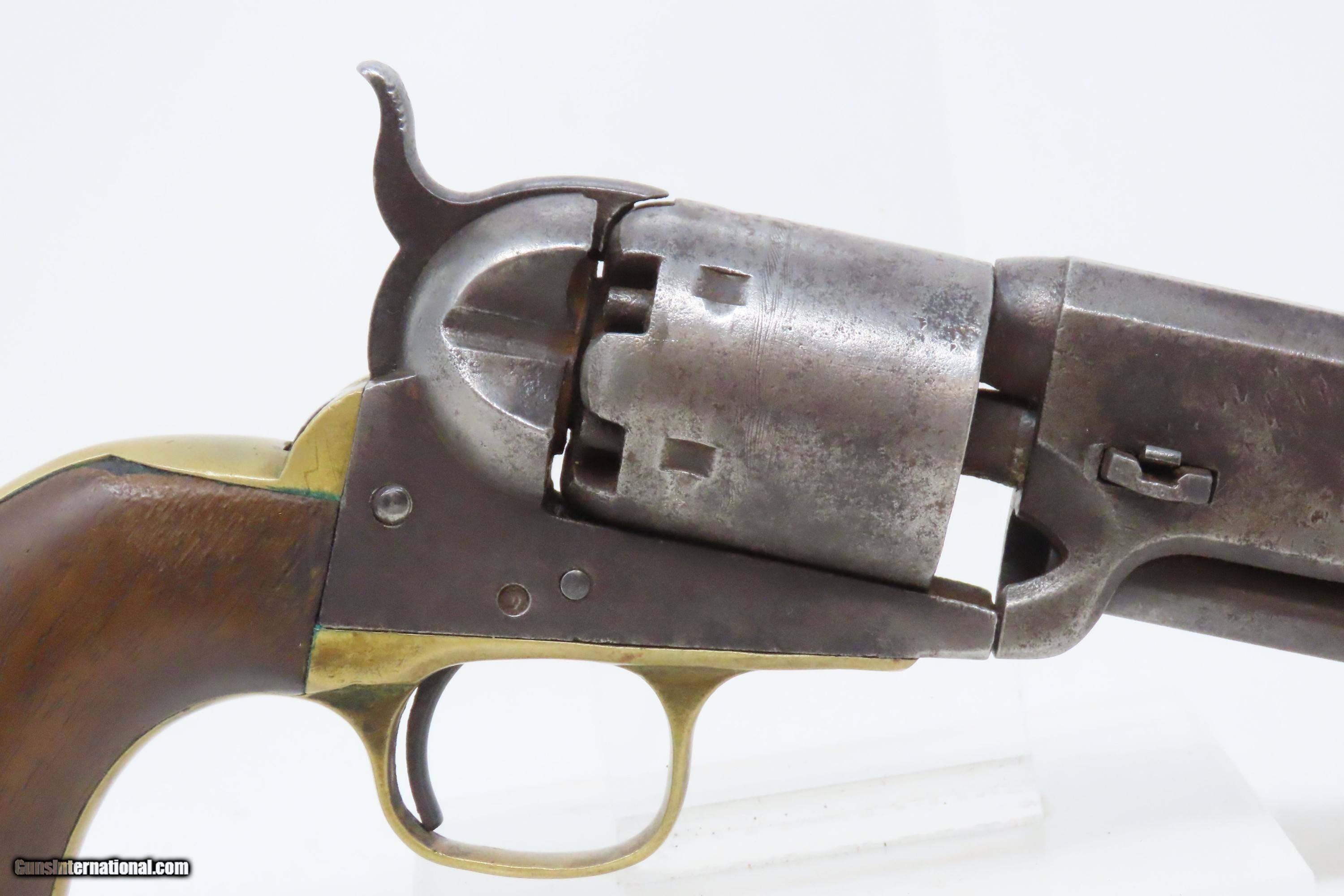 Description: 1862 COLT M1851 NAVY .36 Revolver GUNFIGHTER CIVIL WAR WILD WEST Antique CASE, AMMO, POWDER FLASK, BALL/BULLET MOLD, ELEY CAP TIN Here we present an antique Colt Model 1851 Navy Revolver, made early in the American Civil War in 1862 in Hartford, Connecticut. The 1851 Navy was one of Colt’s most famous and successful lines, reaching a production total of 257,348 from 1850 to 1873 (right up to the time of SAA production) from both Hartford and London factories. From Hartford alone, 185,000 were made by the end of the American Civil War. Many of these saw service during the conflict on both sides. There were some military purchases and lots of private purchases by soldiers going off to war. In addition, the Model 1851 was carried by Confederate General Robert E. Lee and was a favorite of “Doc” Holliday and “Wild Bill” Hickok, who carried two of these most famously in his red sash. The Colt Model 1851 Navy, first known as the “Ranger Model” and also known as the “Revolving Belt Pistol of Naval Caliber,” was designed between 1847 and 1850, manufactured from 1850 until 1873, and was the second most popular Colt percussion revolver after only the Model 1849 Pocket. Though its name implies maritime use, most Navy revolvers primarily saw use on dry land, including in the Old West, which truly, the Colt 1851 Navy revolver ushered in the era of the gunfighter. Among the many guns that were used on the western frontier, none was more popular in its day than the Colt percussion revolver designated the 1851 Navy. This single action revolver weighed in at roughly 42 ounces. Prior to the Navy's introduction, hand gunners had to make do with the Colt Walker and Dragoon revolvers, both of which weighed over four pounds. These big guns were best suited for carry in pommel holsters on the saddle. The Colt Navy was the first popular single-action revolver that could be worn comfortably on the belt. Prior to the beginning of the Civil War, the state of Missouri was a hotbed of trouble that often broke out in shooting fights. Bill Anderson, Jesse and Frank James, and the Youngers all cut their teeth on this border trouble and were ready to go when leaders like William Quantrill enlisted them in his guerilla band during the war. The boys from Missouri became quite proficient with their six-guns and generally carried a brace of Dragoons on their saddle pommels and a brace of Navy revolvers on their hip. The overall condition is good. Gray patina throughout. Numbers match. The action (hammer/trigger) is strong, though the cylinder indexing is slightly slow. The bore is patinated with good rifling. The grip is solid. The fitted and lined case is marked “SANTA FE” on the bottom and is in good condition. The flask is a Dixon & Sons Colt’s Patent, the bullet mold is also Colt’s. The cap tin is from Eley. Also included are lead bullets and case key. Own the original! This is a legitimate antique and not a reproduction. Barrel is 7-1/2 inches. Caliber: .36 Percussion Overall condition as seen in photos. Very Fast. Very Safe. FREE SHIPPING WORLDWIDE. Delivered directly to your door by express mail! Guaranteed AUTHENTIC & Includes CERTIFICATE OF AUTHENTICITY. ancestryguns $3800 #230909 SOLD Antique: Yes |