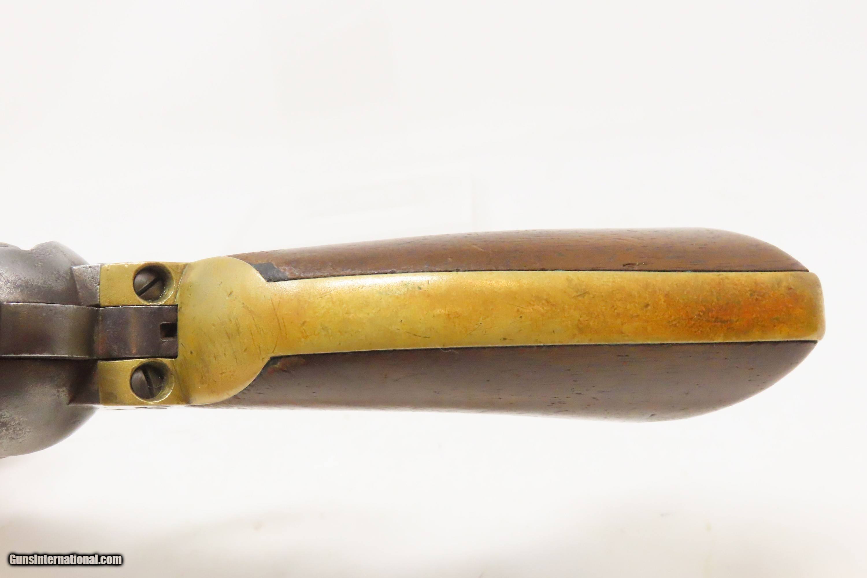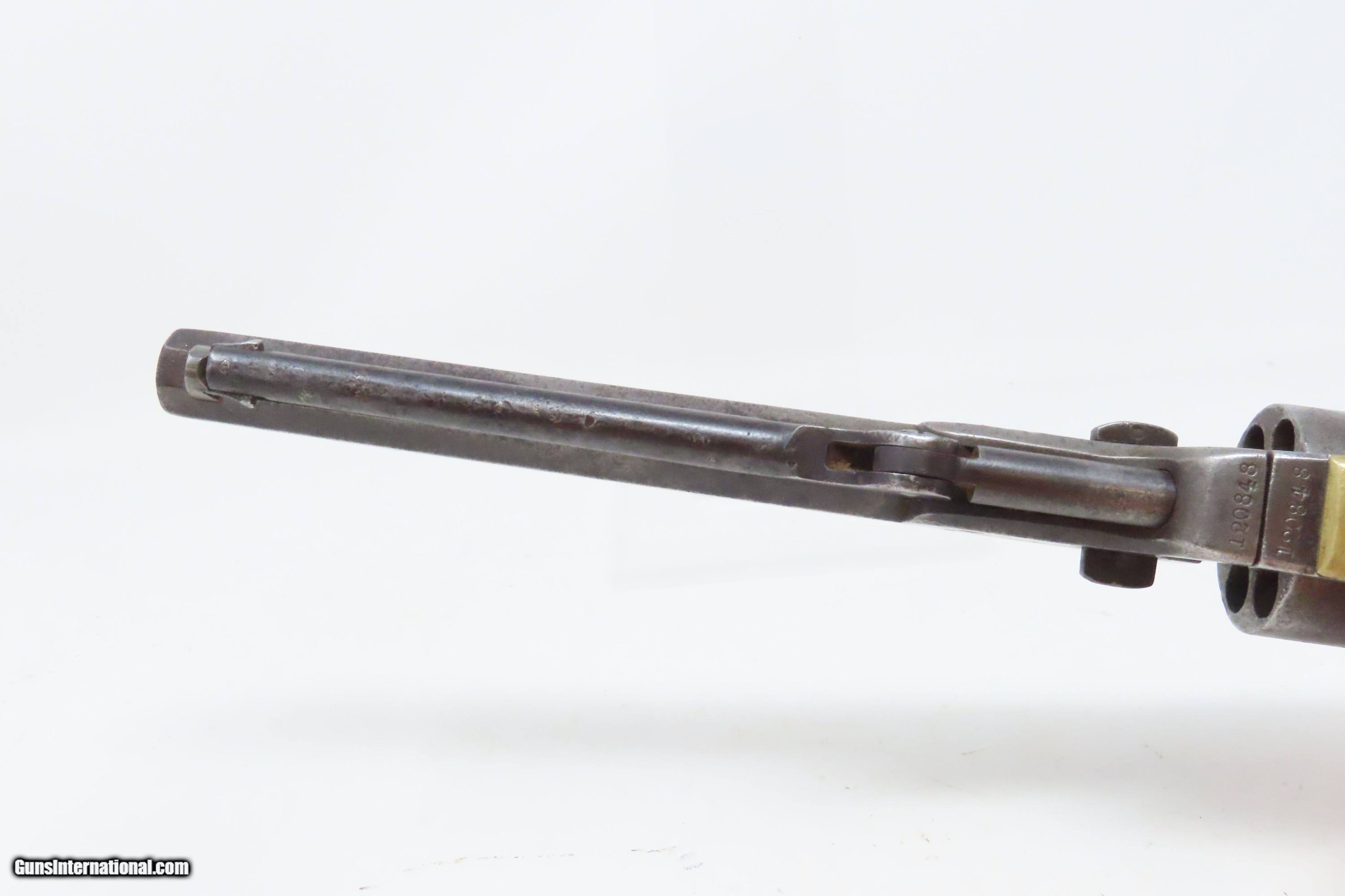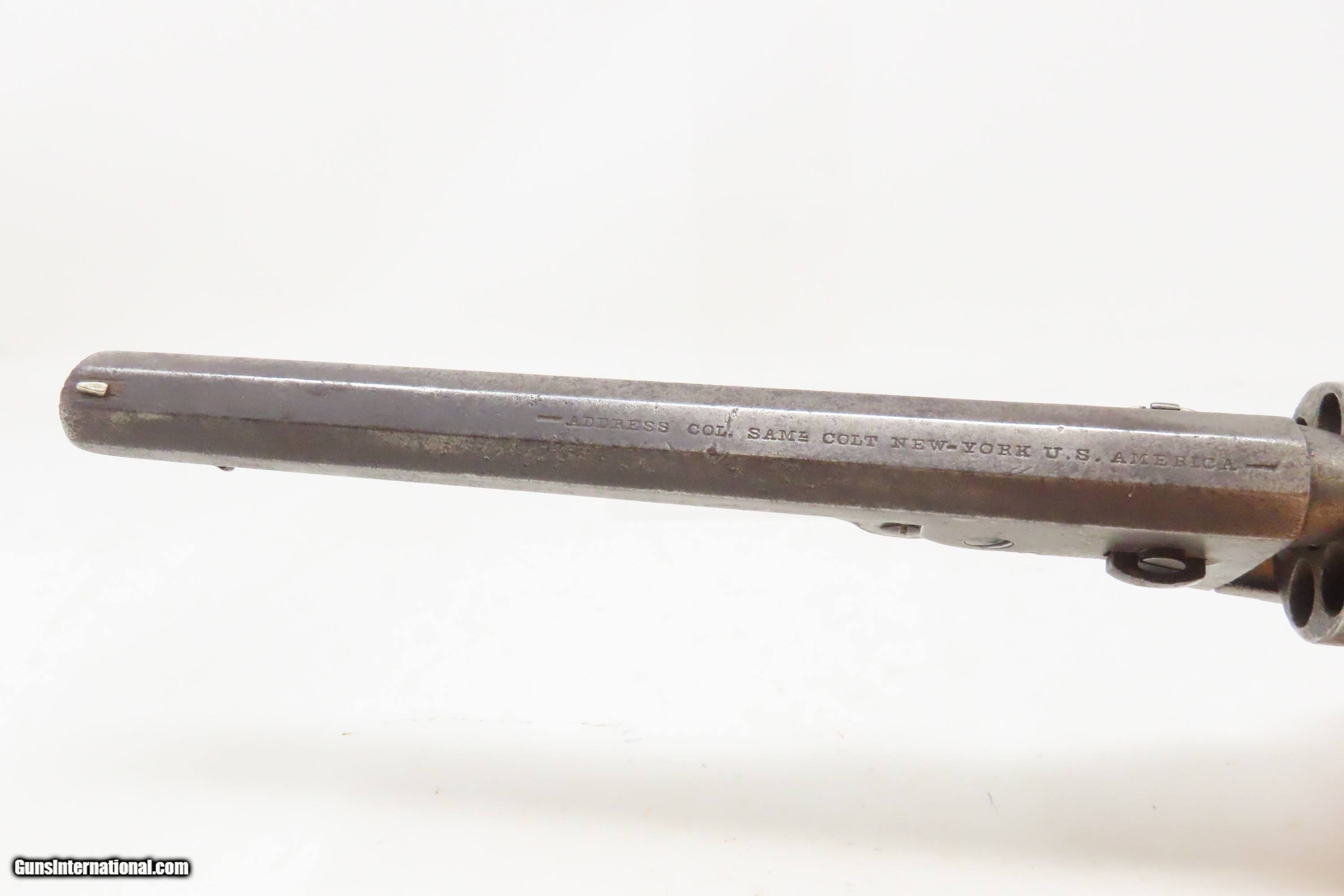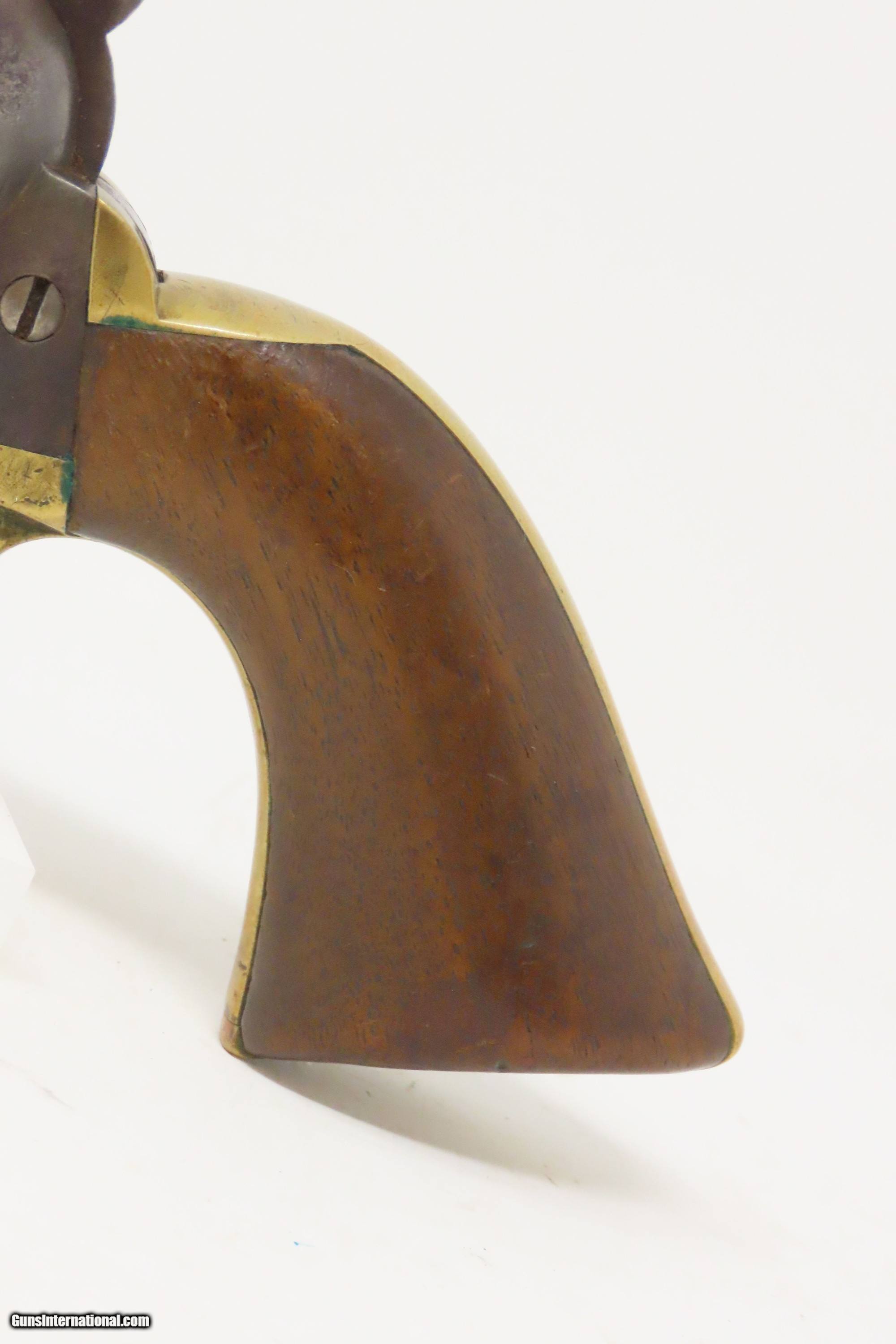 Description: 1862 COLT M1851 NAVY .36 Revolver GUNFIGHTER CIVIL WAR WILD WEST Antique CASE, AMMO, POWDER FLASK, BALL/BULLET MOLD, ELEY CAP TIN Here we present an antique Colt Model 1851 Navy Revolver, made early in the American Civil War in 1862 in Hartford, Connecticut. The 1851 Navy was one of Colt’s most famous and successful lines, reaching a production total of 257,348 from 1850 to 1873 (right up to the time of SAA production) from both Hartford and London factories. From Hartford alone, 185,000 were made by the end of the American Civil War. Many of these saw service during the conflict on both sides. There were some military purchases and lots of private purchases by soldiers going off to war. In addition, the Model 1851 was carried by Confederate General Robert E. Lee and was a favorite of “Doc” Holliday and “Wild Bill” Hickok, who carried two of these most famously in his red sash. The Colt Model 1851 Navy, first known as the “Ranger Model” and also known as the “Revolving Belt Pistol of Naval Caliber,” was designed between 1847 and 1850, manufactured from 1850 until 1873, and was the second most popular Colt percussion revolver after only the Model 1849 Pocket. Though its name implies maritime use, most Navy revolvers primarily saw use on dry land, including in the Old West, which truly, the Colt 1851 Navy revolver ushered in the era of the gunfighter. Among the many guns that were used on the western frontier, none was more popular in its day than the Colt percussion revolver designated the 1851 Navy. This single action revolver weighed in at roughly 42 ounces. Prior to the Navy's introduction, hand gunners had to make do with the Colt Walker and Dragoon revolvers, both of which weighed over four pounds. These big guns were best suited for carry in pommel holsters on the saddle. The Colt Navy was the first popular single-action revolver that could be worn comfortably on the belt. Prior to the beginning of the Civil War, the state of Missouri was a hotbed of trouble that often broke out in shooting fights. Bill Anderson, Jesse and Frank James, and the Youngers all cut their teeth on this border trouble and were ready to go when leaders like William Quantrill enlisted them in his guerilla band during the war. The boys from Missouri became quite proficient with their six-guns and generally carried a brace of Dragoons on their saddle pommels and a brace of Navy revolvers on their hip. The overall condition is good. Gray patina throughout. Numbers match. The action (hammer/trigger) is strong, though the cylinder indexing is slightly slow. The bore is patinated with good rifling. The grip is solid. The fitted and lined case is marked “SANTA FE” on the bottom and is in good condition. The flask is a Dixon & Sons Colt’s Patent, the bullet mold is also Colt’s. The cap tin is from Eley. Also included are lead bullets and case key. Own the original! This is a legitimate antique and not a reproduction. Barrel is 7-1/2 inches. Caliber: .36 Percussion Overall condition as seen in photos. Very Fast. Very Safe. FREE SHIPPING WORLDWIDE. Delivered directly to your door by express mail! Guaranteed AUTHENTIC & Includes CERTIFICATE OF AUTHENTICITY. ancestryguns $3800 #230909 SOLD Antique: Yes |