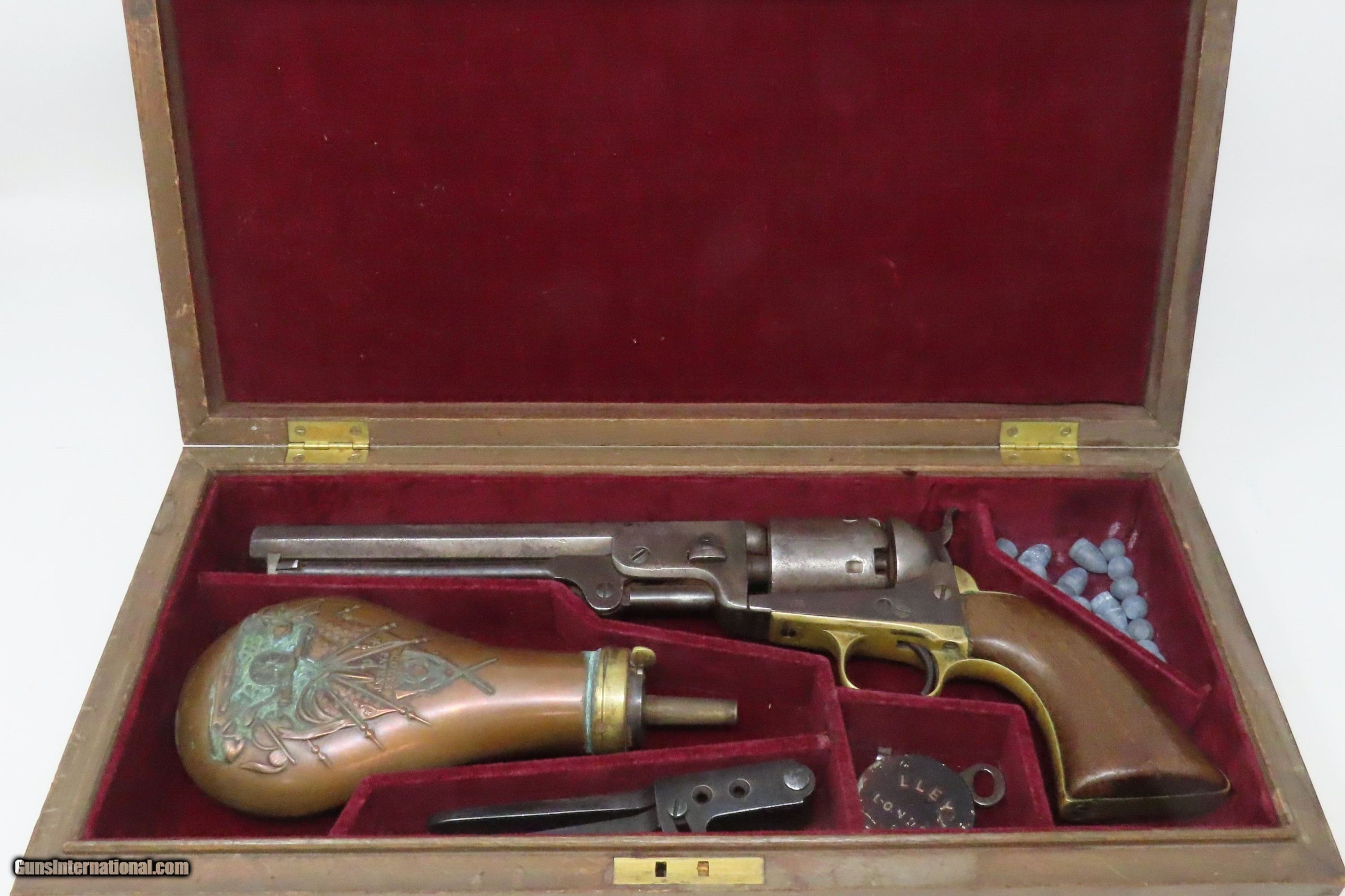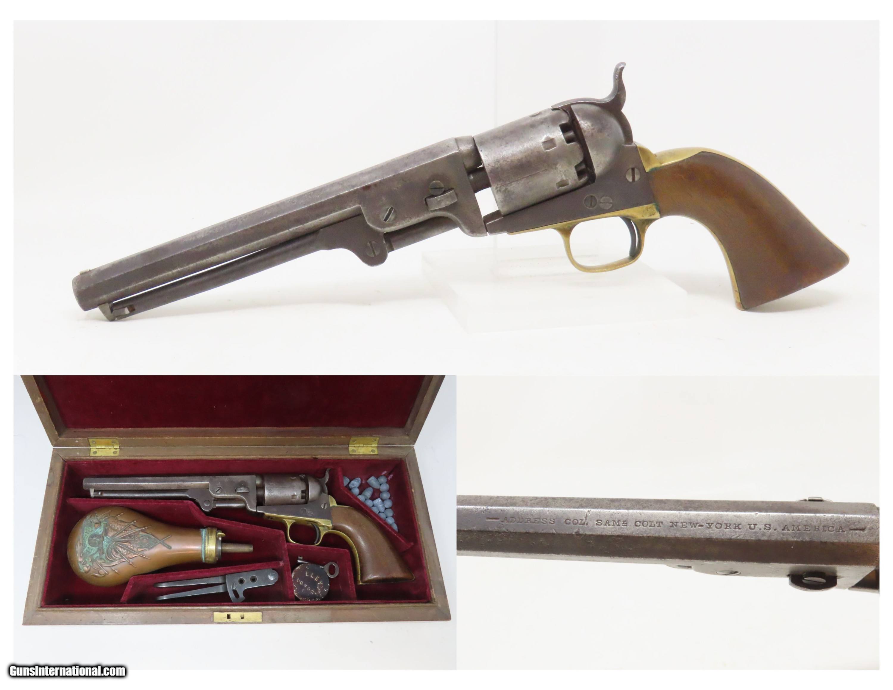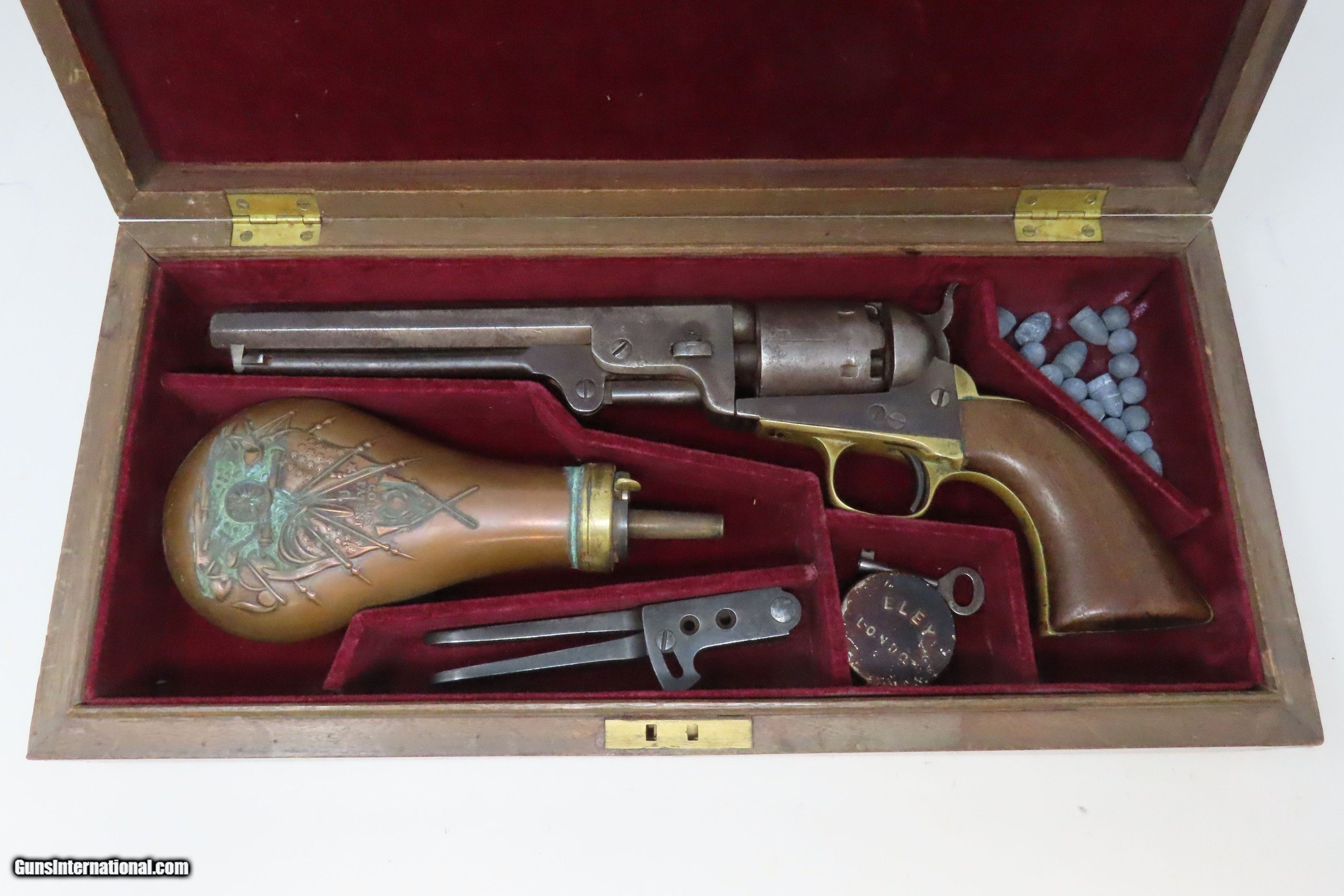1862 COLT M1851 NAVY .36 Revolver GUNFIGHTER CIVIL WAR WILD WEST Antique CASE, AMMO, POWDER FLASK, BALL/BULLET MOLD, ELEY CAP TIN