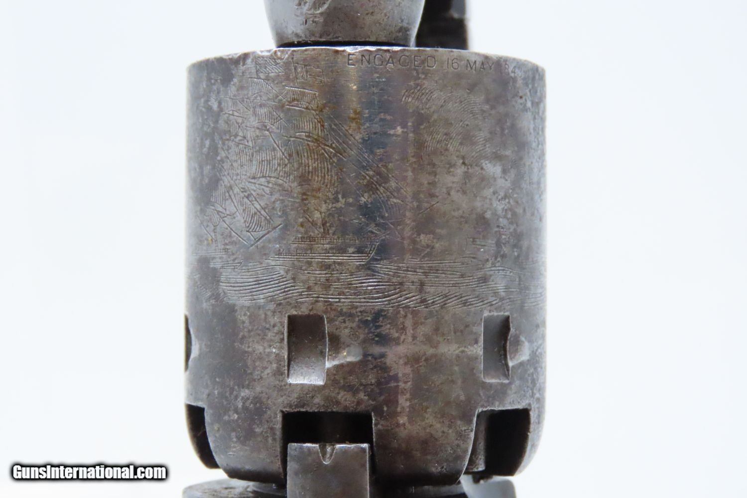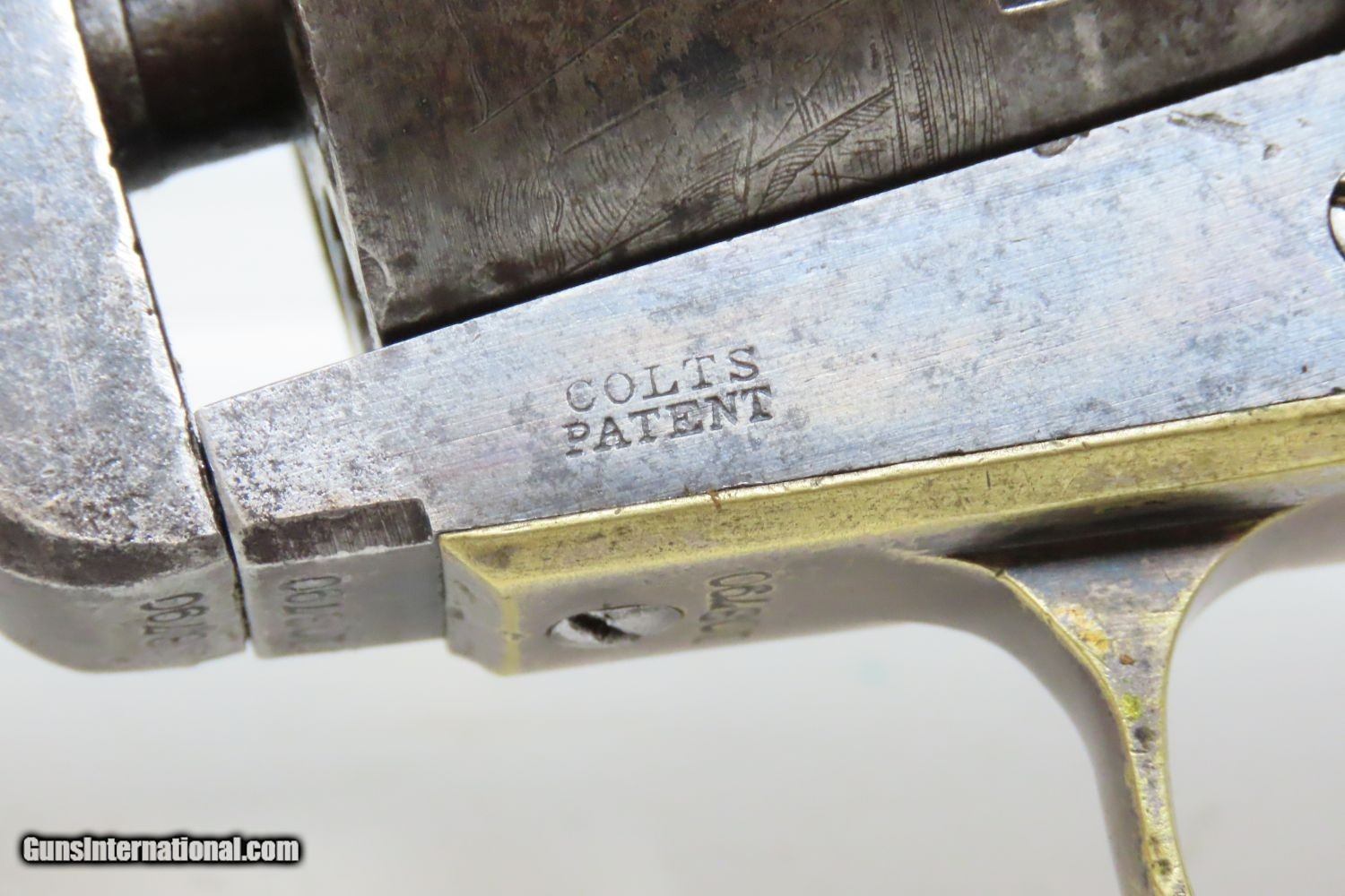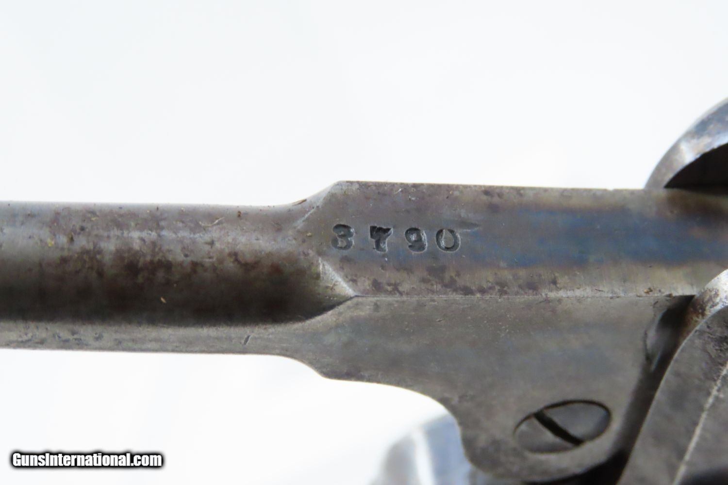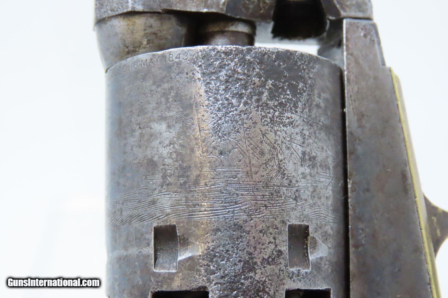 Description: CIVIL WAR Era Antique COLT Model 1851 NAVY .36 Caliber PERCUSSION Revolver Manufactured in 1861 with BELT & TOOLED HOLSTER! Here we present an antique Colt Model 1851 Navy Percussion Revolver, made in 1861 in Hartford, Connecticut. The 1851 Navy was one of Colt’s most famous and successful lines, reaching a production total of 257,348 from 1850 to 1873 (right up to the time of SAA production) from both Hartford and London factories. From Hartford alone, 185,000 were made by the end of the American Civil War. Many of these saw service during the conflict on both sides. There were some military purchases and lots of private purchases by soldiers going off to war. In addition, the Model 1851 was carried by Confederate General Robert E. Lee and was a favorite of “Doc” Holliday and “Wild Bill” Hickok, who carried two of these most famously in his red sash. Truly, the Colt 1851 Navy revolver ushered in the era of the gunfighter. Among the many guns that were used on the western frontier, none was more popular in its day than the Colt percussion revolver designated the 1851 Navy. This single action revolver weighed in at roughly 42 ounces. Prior to the Navy's introduction, hand gunners had to make do with the Colt Walker and Dragoon revolvers, both of which weighed over four pounds. These big guns were best suited for carry in pommel holsters on the saddle. The Colt Navy was the first popular single-action revolver that could be worn comfortably on the belt. Prior to the beginning of the Civil War, the state of Missouri was a hotbed of trouble that often broke out in shooting fights. Bill Anderson, Jesse and Frank James, and the Youngers all cut their teeth on this border trouble and were ready to go when leaders like William Quantrill enlisted them in his guerilla band during the war. The boys from Missouri became quite proficient with their six-guns and generally carried a brace of Dragoons on their saddle pommels and a brace of Navy revolvers on their hip. The overall condition is very good. The action is excellent with a tight lockup. Great bore with sharp rifling. The grip is in great shape with expected handling wear. Numbers match. The Battle of Campeche cylinder scene remains quite clear! A very nice Colt 1851 Navy with a very handsome tooled leather holster and belt! Own the original! This is a legitimate antique and not a reproduction. Barrel is 7-1/2 inches. Caliber: .36 Overall condition as seen in photos. Very Fast. Very Safe. FREE SHIPPING WORLDWIDE. Delivered directly to your door by express mail! Guaranteed AUTHENTIC & Includes CERTIFICATE OF AUTHENTICITY. ancestryguns $3915 #210332 SOLD Antique: Yes |