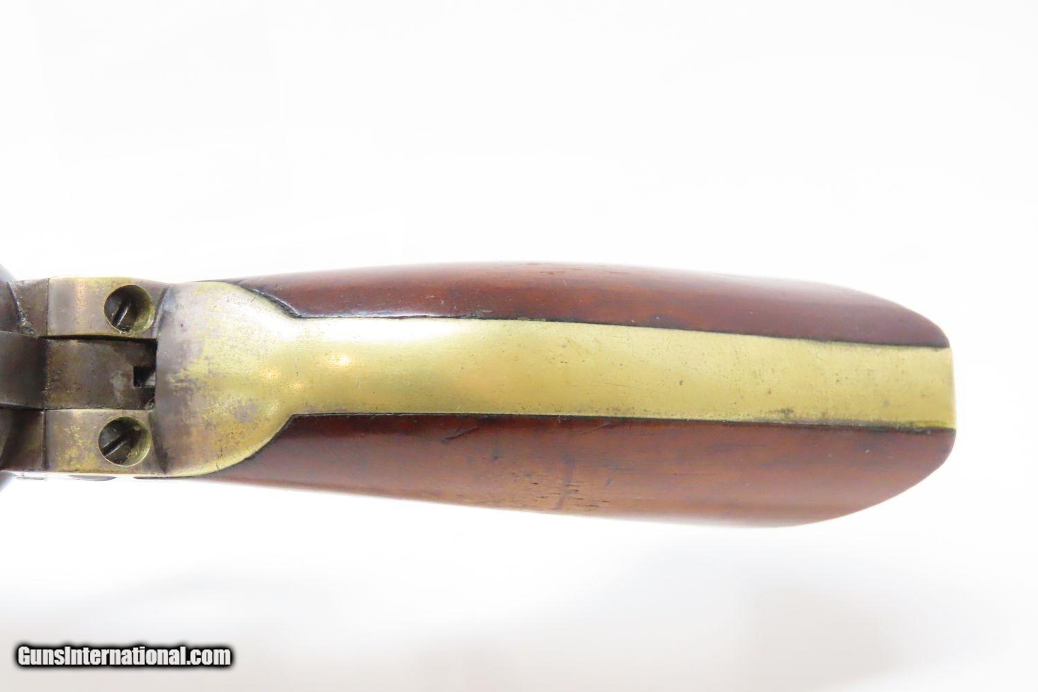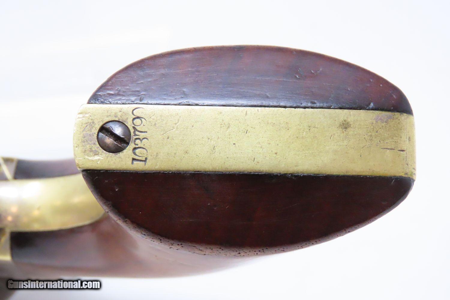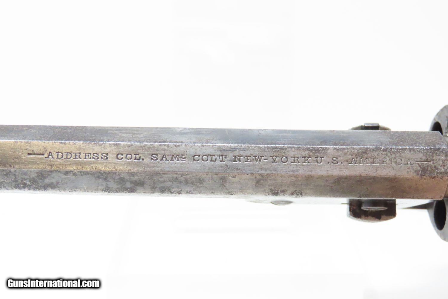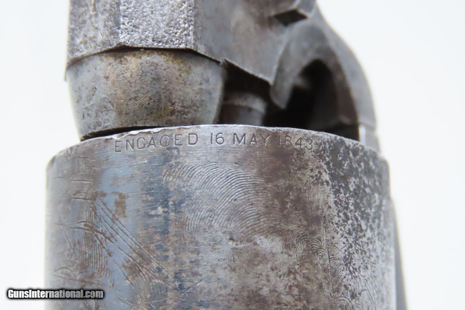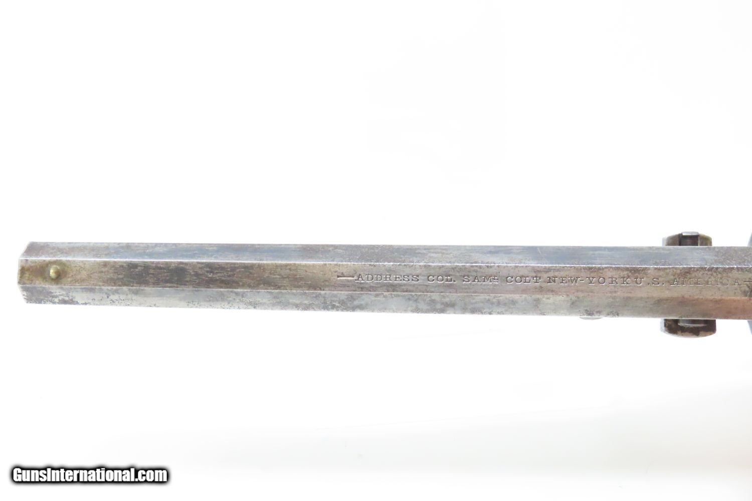Description: CIVIL WAR Era Antique COLT Model 1851 NAVY .36 Caliber PERCUSSION Revolver Manufactured in 1861 with BELT & TOOLED HOLSTER! Here we present an antique Colt Model 1851 Navy Percussion Revolver, made in 1861 in Hartford, Connecticut. The 1851 Navy was one of Colt’s most famous and successful lines, reaching a production total of 257,348 from 1850 to 1873 (right up to the time of SAA production) from both Hartford and London factories. From Hartford alone, 185,000 were made by the end of the American Civil War. Many of these saw service during the conflict on both sides. There were some military purchases and lots of private purchases by soldiers going off to war. In addition, the Model 1851 was carried by Confederate General Robert E. Lee and was a favorite of “Doc” Holliday and “Wild Bill” Hickok, who carried two of these most famously in his red sash. Truly, the Colt 1851 Navy revolver ushered in the era of the gunfighter. Among the many guns that were used on the western frontier, none was more popular in its day than the Colt percussion revolver designated the 1851 Navy. This single action revolver weighed in at roughly 42 ounces. Prior to the Navy's introduction, hand gunners had to make do with the Colt Walker and Dragoon revolvers, both of which weighed over four pounds. These big guns were best suited for carry in pommel holsters on the saddle. The Colt Navy was the first popular single-action revolver that could be worn comfortably on the belt. Prior to the beginning of the Civil War, the state of Missouri was a hotbed of trouble that often broke out in shooting fights. Bill Anderson, Jesse and Frank James, and the Youngers all cut their teeth on this border trouble and were ready to go when leaders like William Quantrill enlisted them in his guerilla band during the war. The boys from Missouri became quite proficient with their six-guns and generally carried a brace of Dragoons on their saddle pommels and a brace of Navy revolvers on their hip. The overall condition is very good. The action is excellent with a tight lockup. Great bore with sharp rifling. The grip is in great shape with expected handling wear. Numbers match. The Battle of Campeche cylinder scene remains quite clear! A very nice Colt 1851 Navy with a very handsome tooled leather holster and belt! Own the original! This is a legitimate antique and not a reproduction. Barrel is 7-1/2 inches. Caliber: .36 Overall condition as seen in photos. Very Fast. Very Safe. FREE SHIPPING WORLDWIDE. Delivered directly to your door by express mail! Guaranteed AUTHENTIC & Includes CERTIFICATE OF AUTHENTICITY. ancestryguns $3915 #210332 SOLD Antique: Yes |