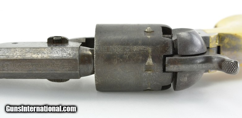 Description: Colt 1851 Navy .36 caliber revolver. With Hartford address and factory letter. Letters with grips (grips on gun are correct for a ’51 Navy but probably did not come on this gun. Looks very nice.) Gun retains 92% blue and has an excellent cylinder scene. Very good case colors on lever. Frame colors are visible, but faint. Eye catching 1851 lettered Navy.