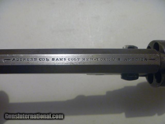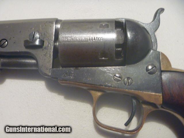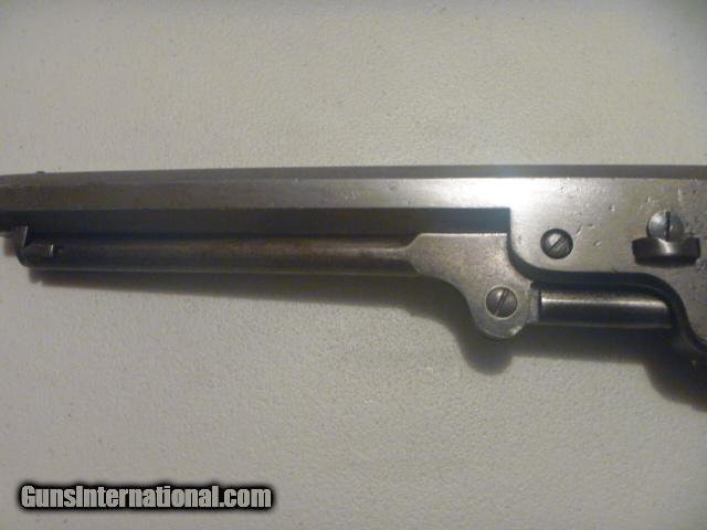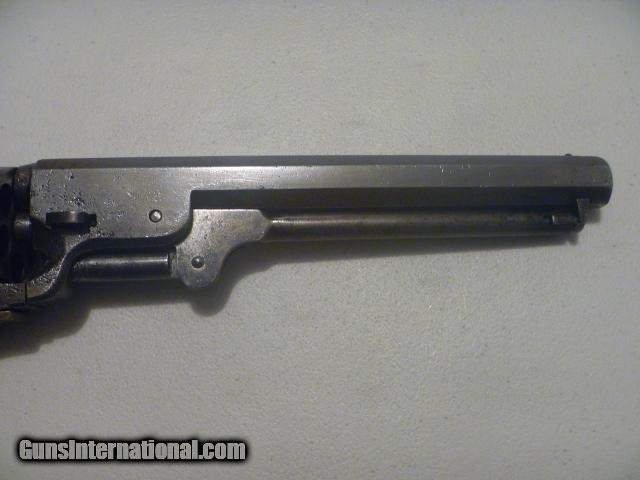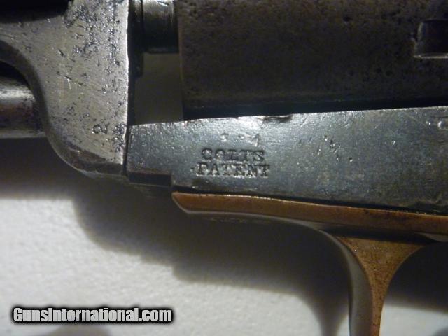 Description: Original, authentic, antique, genuine Colt .36 cal. six shot percussion revolver with serial number 111505 made in 1861 and used in the Civil War. Numbers matching. Visible Colt address on top of barrel. Visible Colt patent on left side of frame. Visible serial number on cylinder. Visible matching serial numbers. Gun is a grey patina. Grips are nice and original. Action and indexing work. This is one of the nicest Colt 1851 Navy’s you can find. For collecting only. Not for firing. $1400. Ridgedale, Missouri. 417-294-1603. SHIPS DIRECTLY TO BUYER PRIORITY MAIL FOR $25. NO FFL. SHIPS TO U.S. ONLY. NO OVERSEAS SHIPMENTS. PRICE = $1400 SOLD Antique: Yes Manufacturer: Colt Model: 1851 Navy Serial Number: 111505 Caliber Info: .36 Chambers: 6 Condition: Used Metal Condition: Gray Patina Wood Condition: Good Bore Condition: Good Barrel Type: Octagon Action: Single Manufacture Date: 1861 Engraving: No Extras: No Case: No Item Location: Missouri |