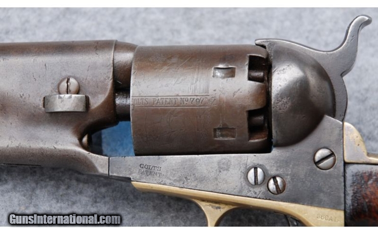 Description: SOLD Manufacturer: 1866 Caliber Info: .36 Black Powder Metal Condition: Good to Very Good patina with minor pitting and dings Wood Condition: Very Good with light handling marks Bore Condition: Dark with Strong rifling Barrels: 7 1/2 Weight: 2 3/4 LBS Sights: Factory Fixed Extras: This is a Colt 1861 Navy revolver manufactured in 1866. The frame shows good patina with minor pitting and dings. The cylinder shows some pitting with the cylinder scene visible. The barrel and loading lever show good patina with minor pitting and dings. Item Location: Reno, NV |