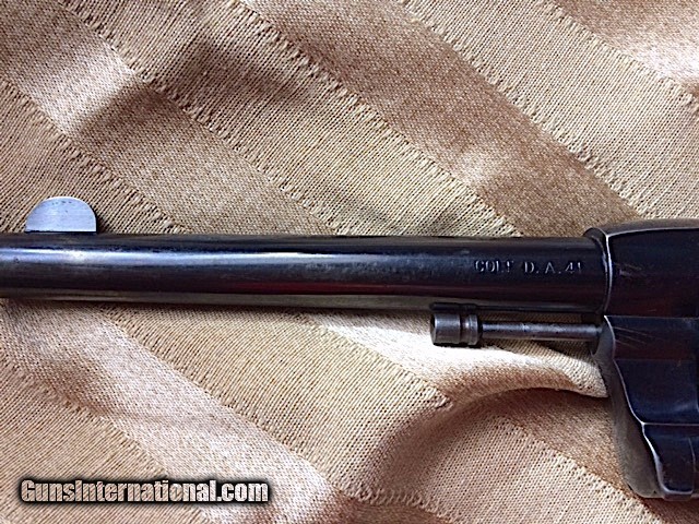 Description: Colt New Navy Revolver Rare: Double Action .41 Long Colt Model 1886, Manufactured in 1902. Manufacture: Colt Barrel: 6 inch round - Rare Finish: blue, some scratches on cylinder. Grips: hard rubber Serial Number: 188194 Cylinder: Properly tight OC - FINE: all original parts; over 90% original blue finish - no rust. Shiny bore with no rust. On the top of barrel Marked 'COLT'S PT F A MFG CO HARTFORD, CT. U.S.A' below that is written 'PATENTED AUG.5.1884 NOV.6.88 MAR.5.95' Comes with Official Colt Archive Authentication Letter stating "Shipped to Pacific Hardware and Steel Co, San Francisco, CA , September 25, 1902". Seller accepts payment by cashiers check, or money order. SOLD Curio/Relic: Yes Handgun Caliber: .41 Long Colt (.41 Colt, .41 LC) Manufacturer: Colt Model: 1886 Serial Number: 188194 Caliber Info: .41 Long Colt Bore: Very good Chambers: Very good Condition: Very good Metal Condition: Very good Bore Condition: Very good Action: DA Manufacture Date: 1902 |