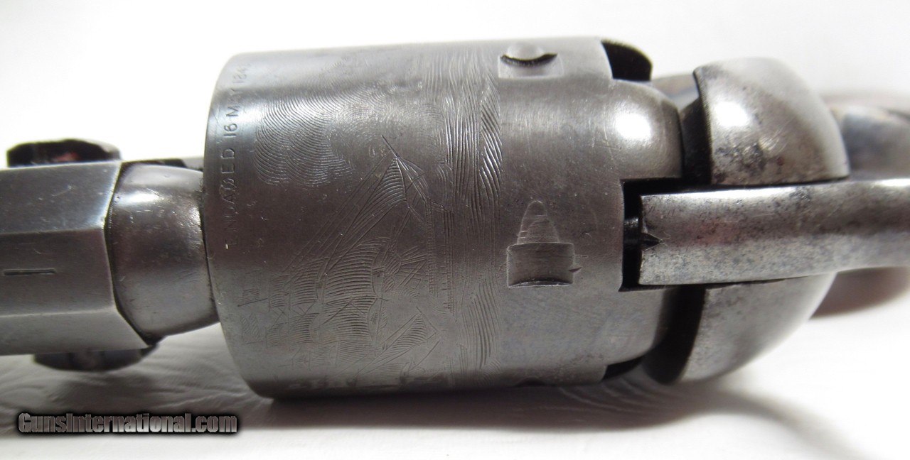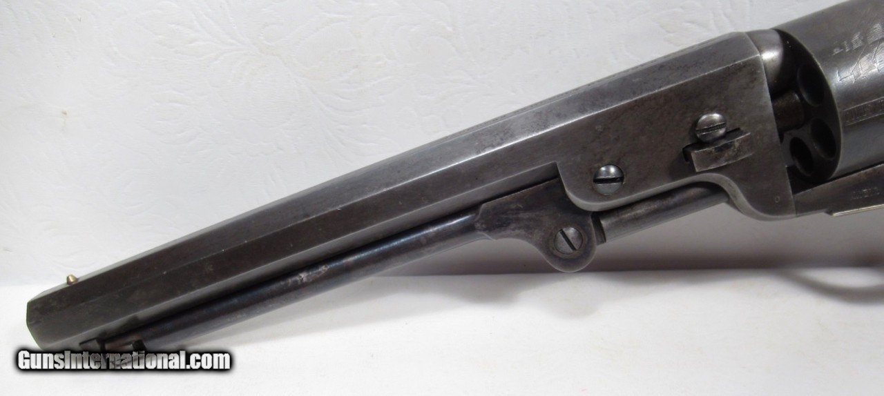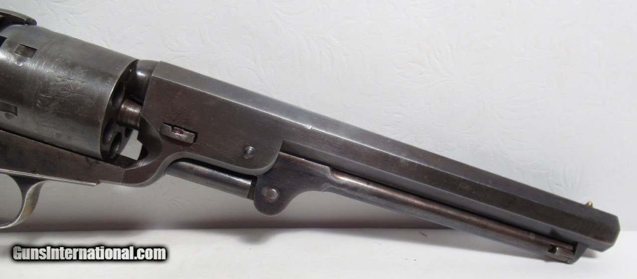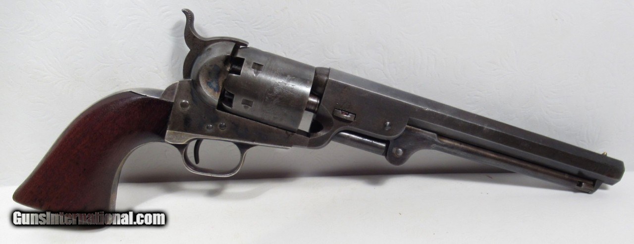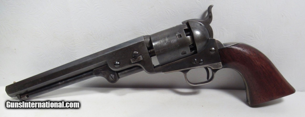 Description: Colt 1851 Navy Revolver; Serial No. 53129; .36 Caliber; 7 ½” Barrel Small Guard; 100% Correct, Original, and Matching – Including Wedge; One of the Best Known; Most of the Original Metal Finish Remains; All Original Varnish Remains on Grips; PERFECT ACTION and STRONG SHINY BORE; Very Nice Original Case with Accessories; Really Nice 161 Year-Old Cased Colt; Made 1856; See All Photos for Condition; No Texts. Call or Email Only; PERSONAL PROPERTY of Harold Wieser; Price: $14,975 + $45 S&H Via FedEx Express; PLEASE DO NOT SEND PAYMENT THROUGH U.S. POSTAL SERVICE; Price includes insured shipping; return policy: three days inspection from the date the item is received; full refund of shipping both ways ONLY IF THE ITEM IS MISREPRESENTED. SOLD Antique: Yes Manufacturer: Colt Model: 1851 Navy Serial Number: 53129 |