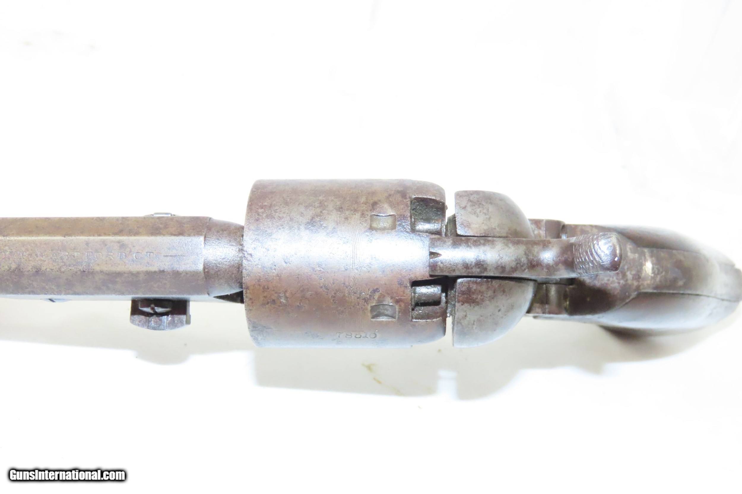 Description: RARE Pre-CIVIL WAR Antique COLT Model 1851 NAVY “FOUR SCREW” Perc. Revolver Manufactured in 1857 with Replica Detachable SHOULDER STOCK Here we present an antique Colt Model 1851 Navy Four Screw Percussion Revolver, made just 4 years prior to the American Civil War in 1857 in Hartford, Connecticut. The 1851 Navy was one of Colt’s most famous and successful lines, reaching a production total of 257,348 from 1850 to 1873 (right up to the time of SAA production) from both Hartford and London factories. This example is an early, scarce “Four Screw” version of the Model 1851. It is a 3rd model and came from the factory cut for a detachable shoulder stock in the steel back strap and this is one of the very few that was equipped with a lanyard ring installed in from of the trigger guard. The Colt Model 1851 Navy, first known as the "Ranger Model" and also known as the "Revolving Belt Pistol of Naval Caliber," was designed between 1847 and 1850, manufactured from 1850 until 1873, and was the second most popular Colt percussion revolver after only the Model 1849 Pocket. Though its name implies maritime use, most Navy revolvers primarily saw use on dry land, including in the Old West, which truly, the Colt 1851 Navy revolver ushered in the era of the gunfighter. Among the many guns that were used on the western frontier, none was more popular in its day than the Colt percussion revolver designated the 1851 Navy. This single action revolver weighed in at roughly 42 ounces. Prior to the Navy's introduction, hand gunners had to make do with the Colt Walker and Dragoon revolvers, both of which weighed over four pounds. These big guns were best suited for carry in pommel holsters on the saddle. The Colt Navy was the first popular single-action revolver that could be worn comfortably on the belt. Prior to the beginning of the Civil War, the state of Missouri was a hotbed of trouble that often broke out in shooting fights. Bill Anderson, Jesse and Frank James, and the Youngers all cut their teeth on this border trouble and were ready to go when leaders like William Quantrill enlisted them in his guerilla band during the war. The boys from Missouri became quite proficient with their six-guns and generally carried a brace of Dragoons on their saddle pommels and a brace of Navy revolvers on their hip. The overall condition is very good. Original patina/finish. Strong action. The bore is in good shape for it has aged. The grip is in good shape with an average amount of handling and a smooth finish. Numbers match. Cylinder scene remnants remain intact. Includes a high-quality replica detachable shoulder stock. A true rarity! Own the original! This is a legitimate antique and not a reproduction. Barrel is 7-1/2 inches. Caliber: .36 Percussion Overall condition as seen in photos. Very Fast. Very Safe. FREE SHIPPING WORLDWIDE. Delivered directly to your door by express mail! Guaranteed AUTHENTIC & Includes CERTIFICATE OF AUTHENTICITY. ancestryguns $6445 #217405 SOLD Antique: Yes |
