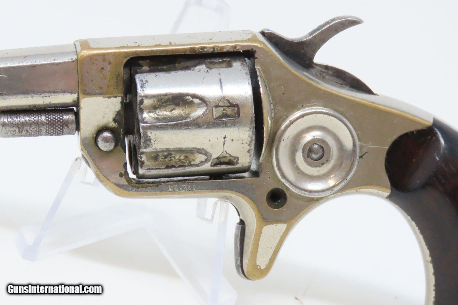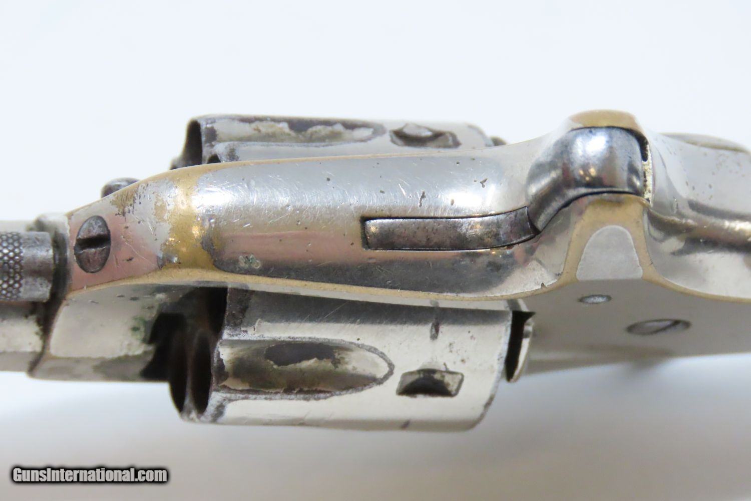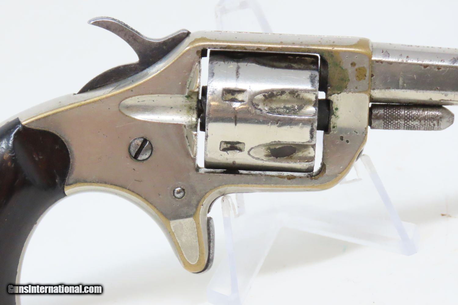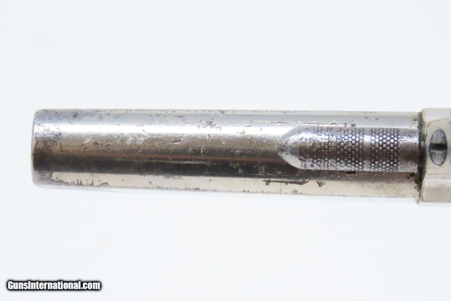 Description: Antique 7-Shot COLT “NEW LINE” .22 Rimfire Spur Trigger POCKET Revolver Late Manufactured with Nickel Plating! Here we present an antique Colt New Line .22 Revolver First Model, made in 1877 in Hartford, Connecticut. The New Line was a single action pocket revolver introduced by the Colt’s Patent Fire Arms Manufacturing Company in 1873 and continued through 1877. Two years after the Colt House Revolver, a year after the Colt Open Top, and almost simultaneously alongside the Colt Peacemaker, the Colt New Line was one of the first metallic cartridge, rear-loading revolvers manufactured by Colt. It was designed to be a handy pocket-carry revolver, chambered in .22 rimfire, which was very popular for self-defense in these days. The revolver features 7 shots of .22 rimfire. Of all the Colt “New Line” revolvers made, the .22 caliber was the only one featuring a 7 shot cylinder. All other calibers utilized a 5-shot cylinder. Patent dates are on the bottom of the barrel. The overall condition is very good. The action is strong. The original nickel finish remains bright with some brass showing through on the corners. The head of the trigger screw is broken, though this is only aesthetic and does not affect the mechanics of the revolver. Both rosewood grips are firm with expected handling wear. All markings are clear and the number match! The bore is bright with nice rifling. A very nice little 7-shot .22 from Colt! Own the original! This is a legitimate antique and not a reproduction. Barrel is 2-1/4 inches. Caliber: .22 Rimfire Short Overall condition as seen in photos. Very Fast. Very Safe. FREE SHIPPING WORLDWIDE. Delivered directly to your door by express mail! Guaranteed AUTHENTIC & Includes CERTIFICATE OF AUTHENTICITY. ancestryguns $1045 #201504 SOLD Antique: Yes |