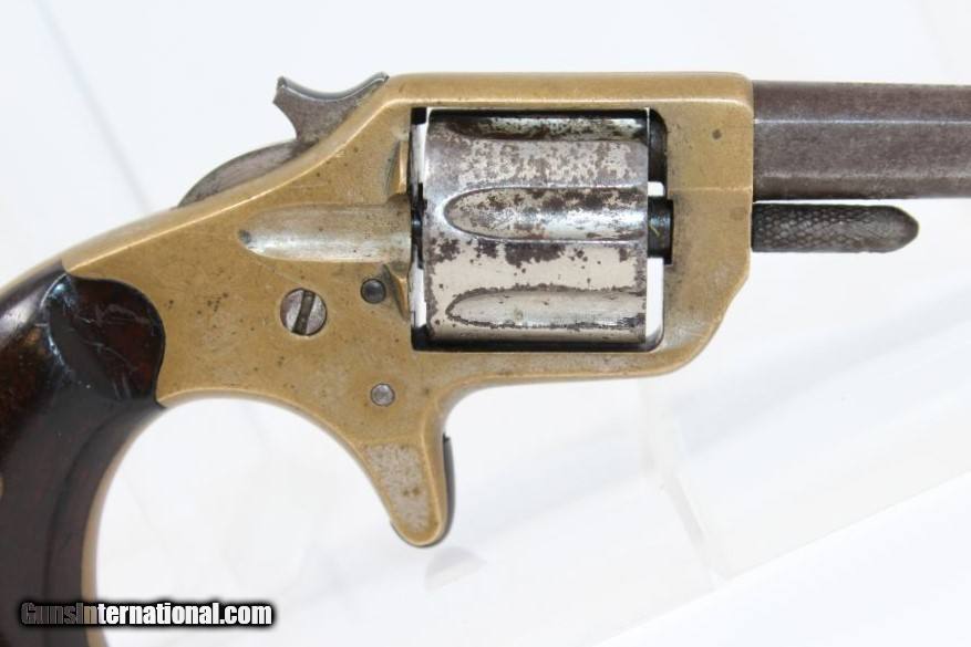 Description: Antique COLT “NEW LINE” .22 Rimfire Revolver Nickel with Etched Panel Barrel! Here we present an antique Colt New Line .22 Revolver First Model, made in 1876 in Hartford, Connecticut. The New Line was a single action pocket revolver introduced by the Colt’s Patent Fire Arms Manufacturing Company in 1873. Two years after the Colt House Revolver, a year after the Colt Open Top, and almost simultaneously alongside the Colt Peacemaker, the Colt New Line was one of the first metallic cartridge, rear-loading revolvers manufactured by Colt. It was designed to be a handy pocket-carry revolver, chambered in .22 rimfire, which was very popular for self-defense in these days. The revolver features 7 shots of .22 rimfire. Etched on the left side of the barrel is “COLT NEW 22”. Patent dates are on the bottom of the barrel. The overall condition is fair. Metal surfaces are dark with age with strong traces of blue and nickel cylinder. Markings are strong. Grips are in very good condition. Bore is in good condition. Hammer spur is chipped. Action is functional but cylinder does not revolve. Own the original! This is a legitimate antique and not a reproduction. Barrel is 2-1/4 inches. Caliber: .22 Rimfire Overall condition as seen in photos. Very Fast. Very Safe. FREE SHIPPING WORLDWIDE. Delivered directly to your door by express mail! Guaranteed AUTHENTIC & Includes CERTIFICATE OF AUTHENTICITY. ancestryguns $425 #8536 SOLD Antique: Yes |