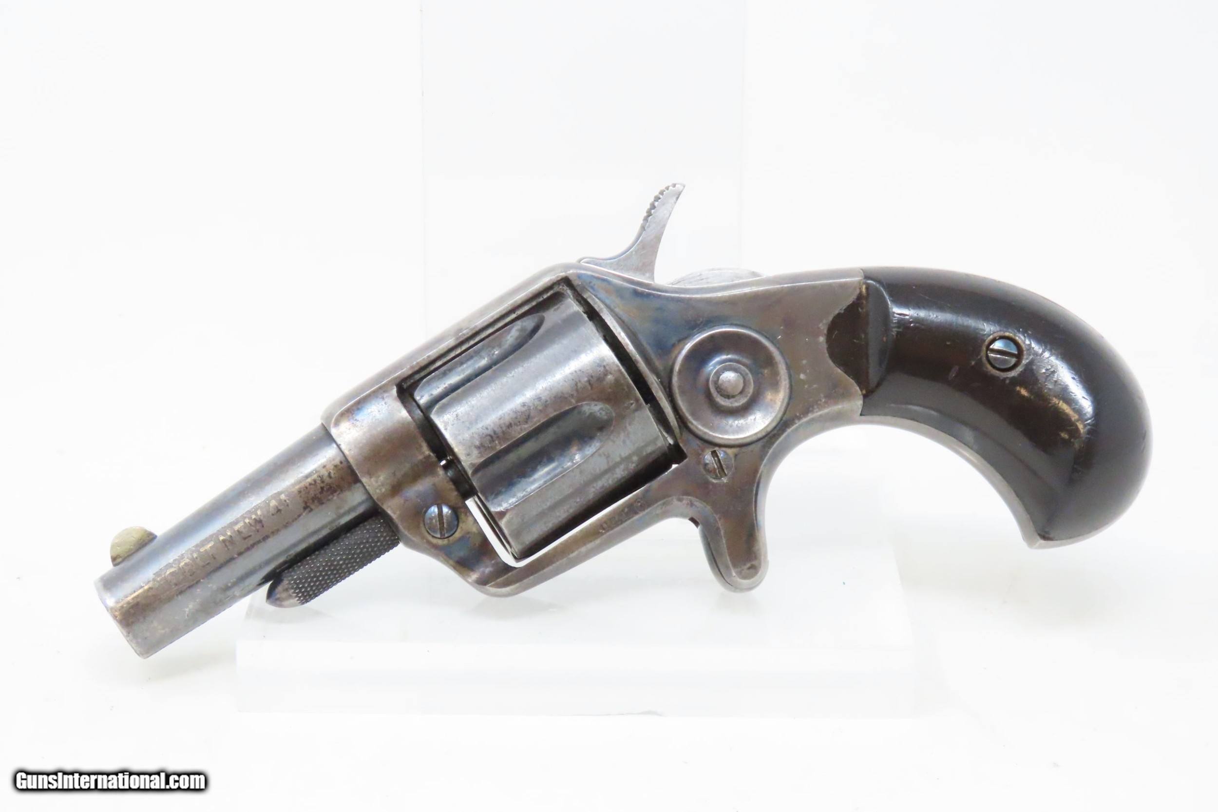Description: BRITISH PROOFED Antique COLT NEW LINE .41 Caliber CF ETCHED PANEL Revolver Originally Advertised as the “BIG COLT”! Here we present an antique British Proofed Etched Panel Colt “New Line” .41 Caliber Centerfire Revolver made in 1877 in Hartford, Connecticut. This handy little 5-shot Colt, referred to as the “Big Colt” when it came out, carried quite the punch for a pocket self-defense revolver. The large caliber of this variation makes it the most desirable of the “New Lines” with approximately 10,702 manufactured from 1874-1879 due to the short production run. This revolver was designed to be a small but potent self-defense revolver for stowing in one’s pocket in the 19th Century. Spur Trigger “Suicide Special” manufacture was fierce during this time, and Colt struggled to compete against the countless small shops making very similar, less expensive revolvers, though not necessarily of the same quality. The Colt remained a steady, reliable force in firearms for much longer than the rest. The New Line series of revolvers, including all calibers, was a single action pocket revolver introduced by the Colt’s Patent Fire Arms Manufacturing Company in 1873 and continued through 1884. Two years after the Colt House Revolver, a year after the Colt Open Top, and almost simultaneously alongside the Colt Peacemaker, the Colt New Line was one of the first metallic cartridge, rear-loading revolvers manufactured by Colt. With such a limited number of examples and the larger caliber, this is a very desirable firearm for a Colt collector. The overall condition is fine. Original blue finish and case colors. The action is excellent. The bore is bright with sharp rifling. The grips are fine. Own the original! This is a legitimate antique and not a reproduction. Barrel is 2-1/4 inches. Caliber: .41 Centerfire Overall condition as seen in photos. Very Fast. Very Safe. FREE SHIPPING WORLDWIDE. Delivered directly to your door by express mail! Guaranteed AUTHENTIC & Includes CERTIFICATE OF AUTHENTICITY. ancestryguns $1685 #220248 SOLD Antique: Yes |