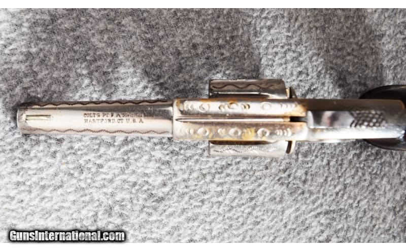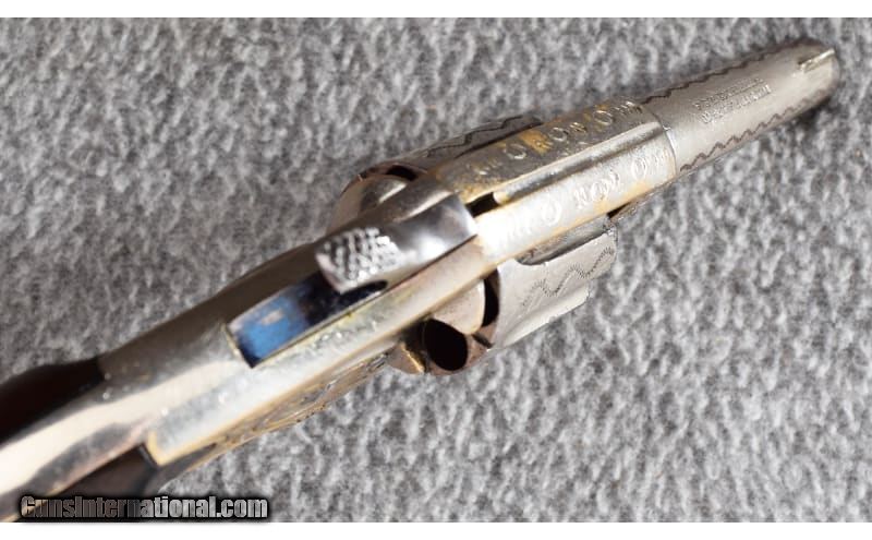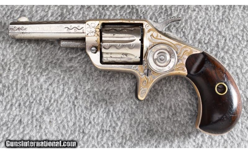 Description: This Colt New Line Revolver was manufactured in 1876 and remains in very good overall condition. Wood is solid with a few light use marks. Factory engraved nickle finish is still very good with some flaking around cylinder and light wear at muzzle. Bore needs a good cleaning. Hard to believe this pistol saw the first Centennial of the United States and the Battle of the Little Big Horn! If only they could talk! .22 Long Rifle SOLD Antique: Yes Metal Condition: Very Good Wood Condition: Very Good Bore Condition: Very Good Barrels: 2 1/8 Triggers: Factory Spur Trigger Butt Pad: Uncheckered Rosewood Grips Weight: 8 oz Sights: Blade Front - Integral Notch Rear Item Location: Wheeling |