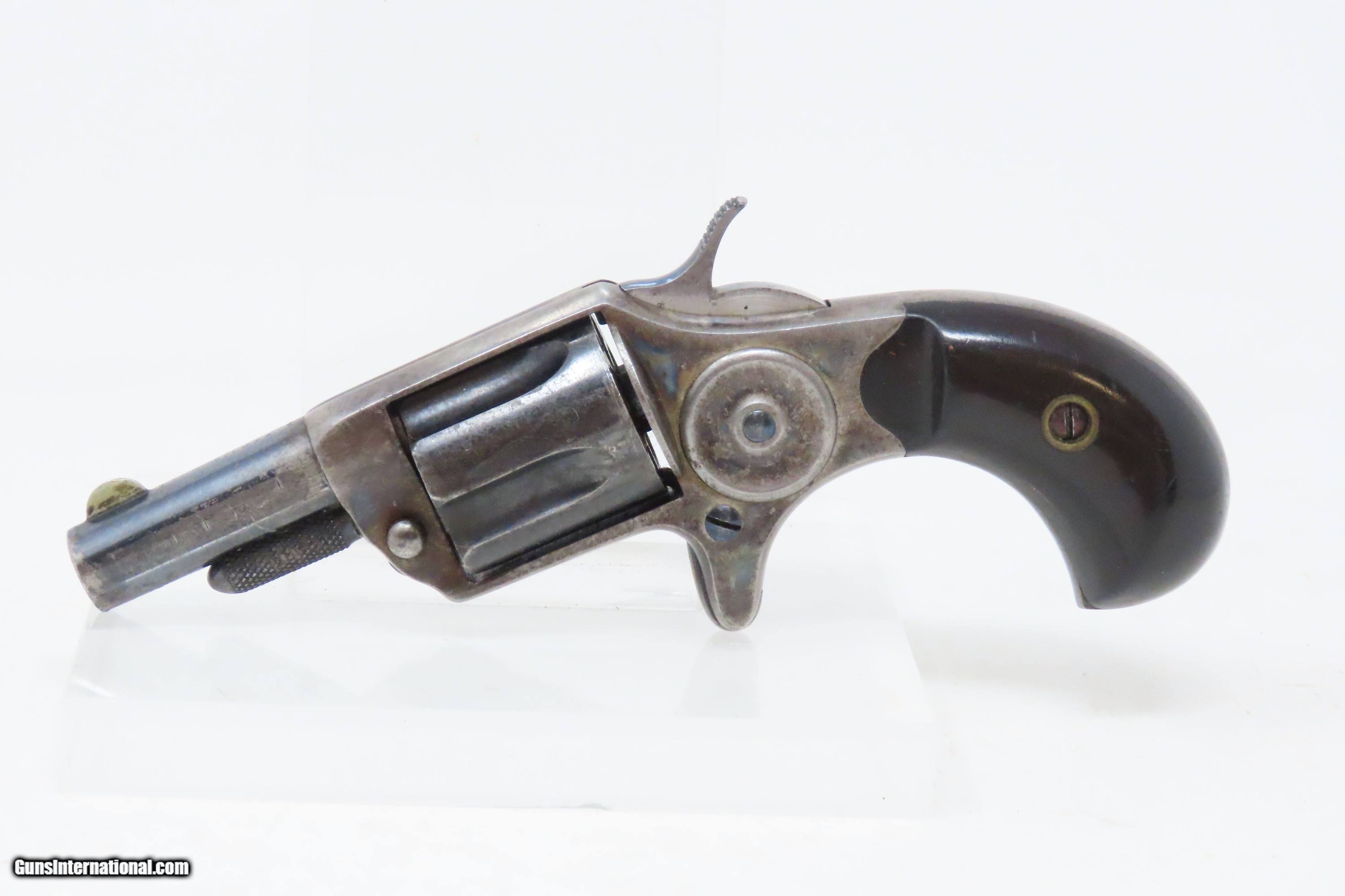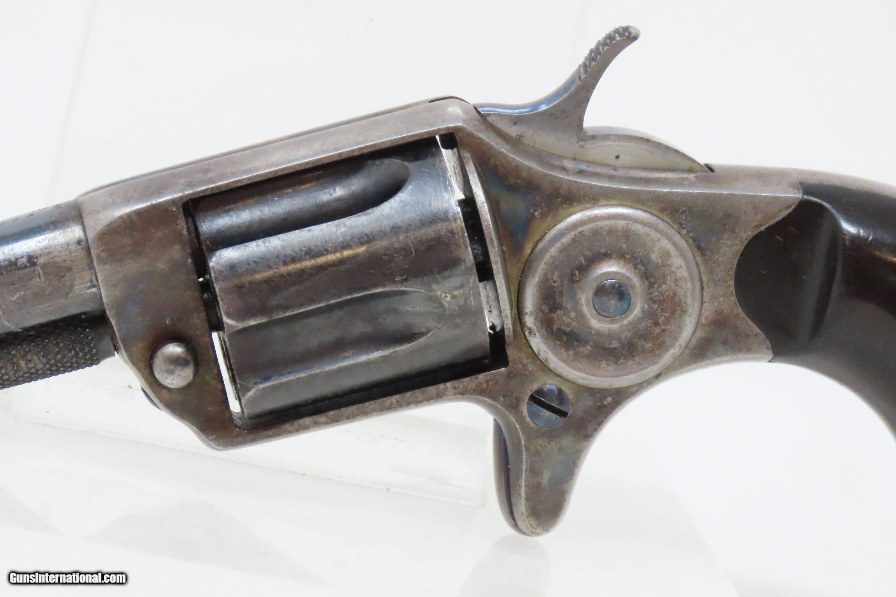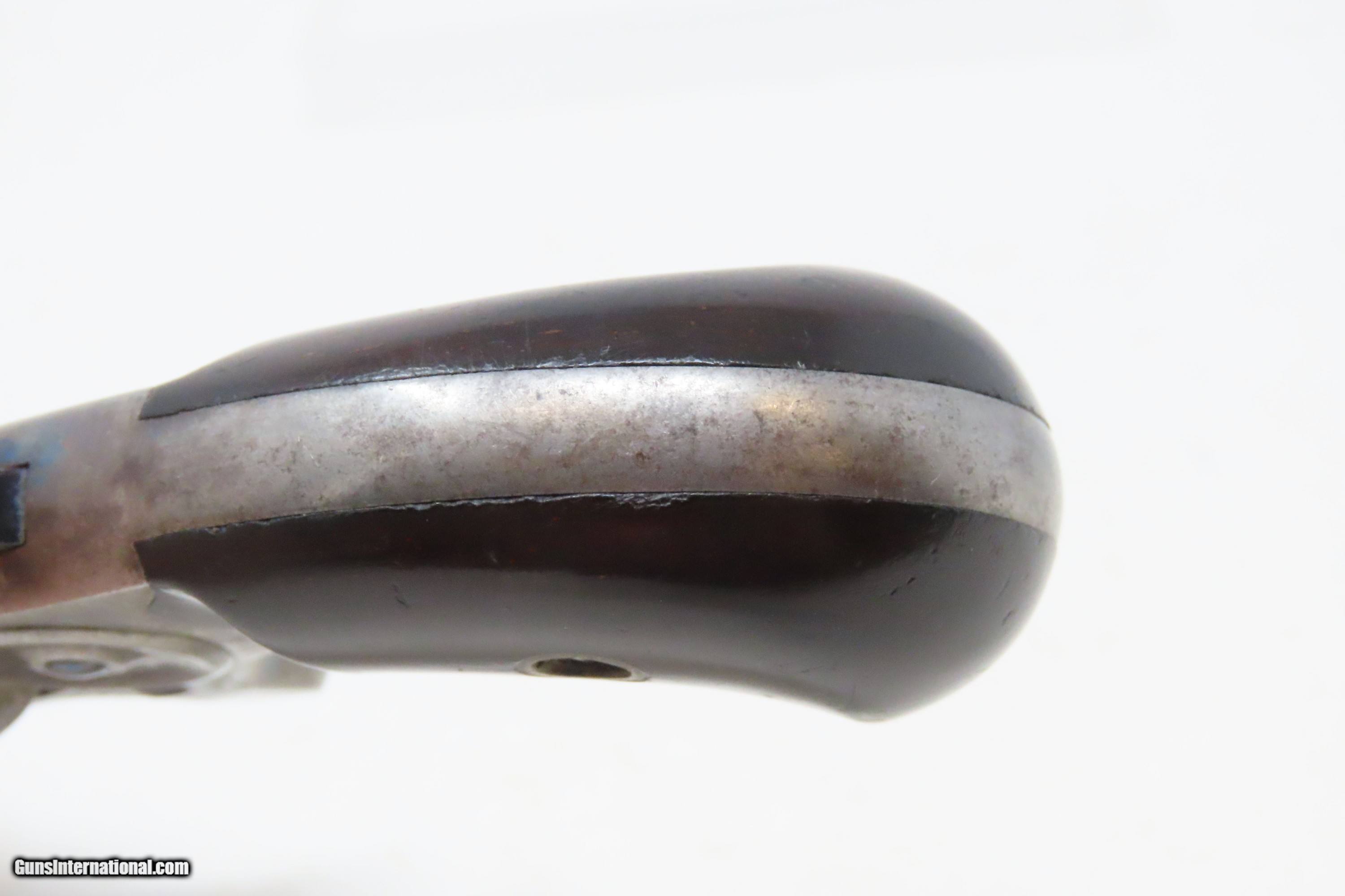 Description: DESIREABLE 1-3/4” BARREL Antique COLT “NEW LINE” .30 ETCHED PANEL Revolver FINE Post-CIVIL WAR SELF DEFENSE Hideout Revolver Here we present an antique Etched Panel Colt New Line .30 Caliber Revolver with the Desirable 1-3/4 inch Barrel, made in 1874 in Hartford, Connecticut. A single action revolver, this small pocket revolver was one of a number of inexpensive handguns produced by Colt from 1873 to 1884. The “New Line” was Colt’s first production model handgun chambered for .32 caliber and outnumbered all other pistols in Colt’s “New Line” group. This revolver utilized a .30 caliber cartridge matched to a 5-shot fluted cylinder fitted to a 2-1/4” long round barrel. The .30 caliber models were manufactured between 1874 and 1876 with 10,946 revolvers being produced. This revolver was designed to be a small but potent self-defense revolver for stowing in one’s pocket in the 19th Century. Spur Trigger “Suicide Special” manufacture was fierce during this time, and Colt struggled to compete against the countless small shops making very similar, less expensive revolvers, though not necessarily of the same quality. The Colt remained a steady, reliable force in firearms for much longer than the rest. This revolver features 5 shots of .30 caliber, a handsome wizened nickel finish and antique ivory grips. The New Line series of revolvers, including all calibers, was a single action pocket revolver introduced by the Colt’s Patent Fire Arms Manufacturing Company in 1873 and continued through 1884. Two years after the Colt House Revolver, a year after the Colt Open Top, and almost simultaneously alongside the Colt Peacemaker, the Colt New Line was one of the first metallic cartridge, rear-loading revolvers manufactured by Colt. The overall condition is fine. Original finish. The action is excellent. Good bore for its age. Sharp markings. Numbers match. Both grips are in very good shape with light handling. Own the original! This is a legitimate antique and not a reproduction. Barrel is 1-3/4 inches. Caliber: .30 Rimfire Overall condition as seen in photos. Very Fast. Very Safe. FREE SHIPPING WORLDWIDE. Delivered directly to your door by express mail! Guaranteed AUTHENTIC & Includes CERTIFICATE OF AUTHENTICITY. ancestryguns $1500 #240317 SOLD Antique: Yes |